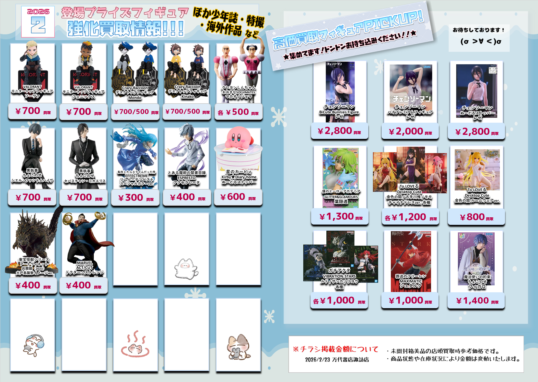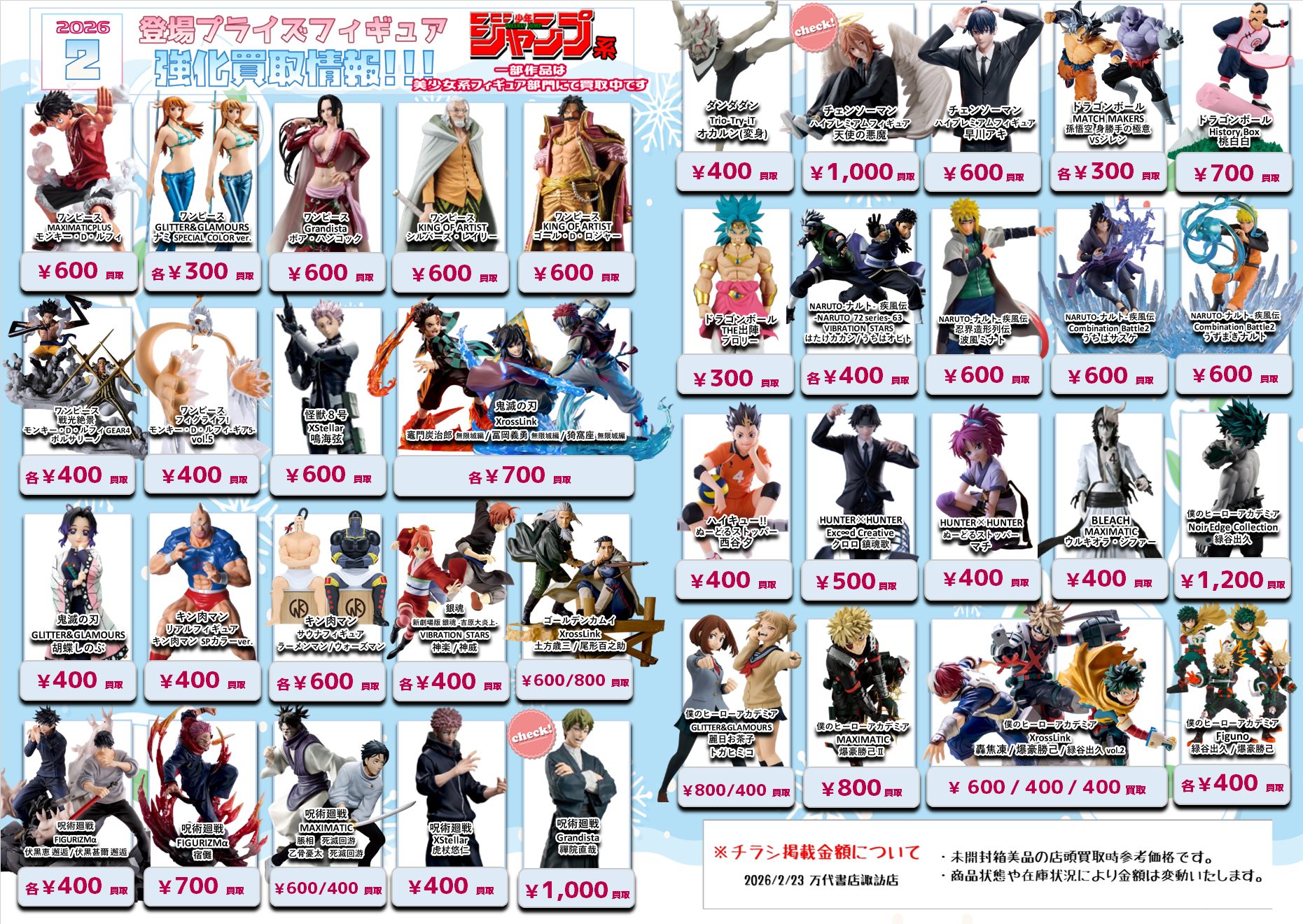 今月登場予定のプライズフィギュアの買取情報を更新いたしました(*>v<)ノ