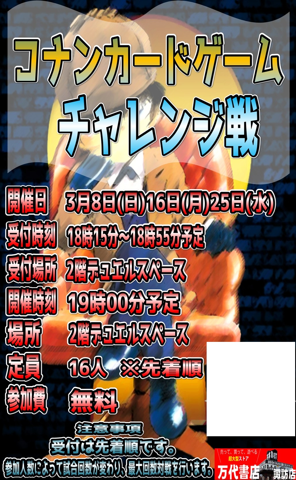 https://www.takaratomy.co.jp/products/conan-cardgame/eventsearch?shop=万代書店諏訪店