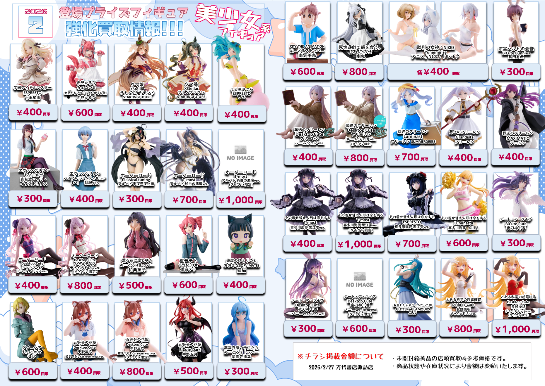 今月登場予定のプライズフィギュアの買取情報を更新いたしました(*>v<)ノ