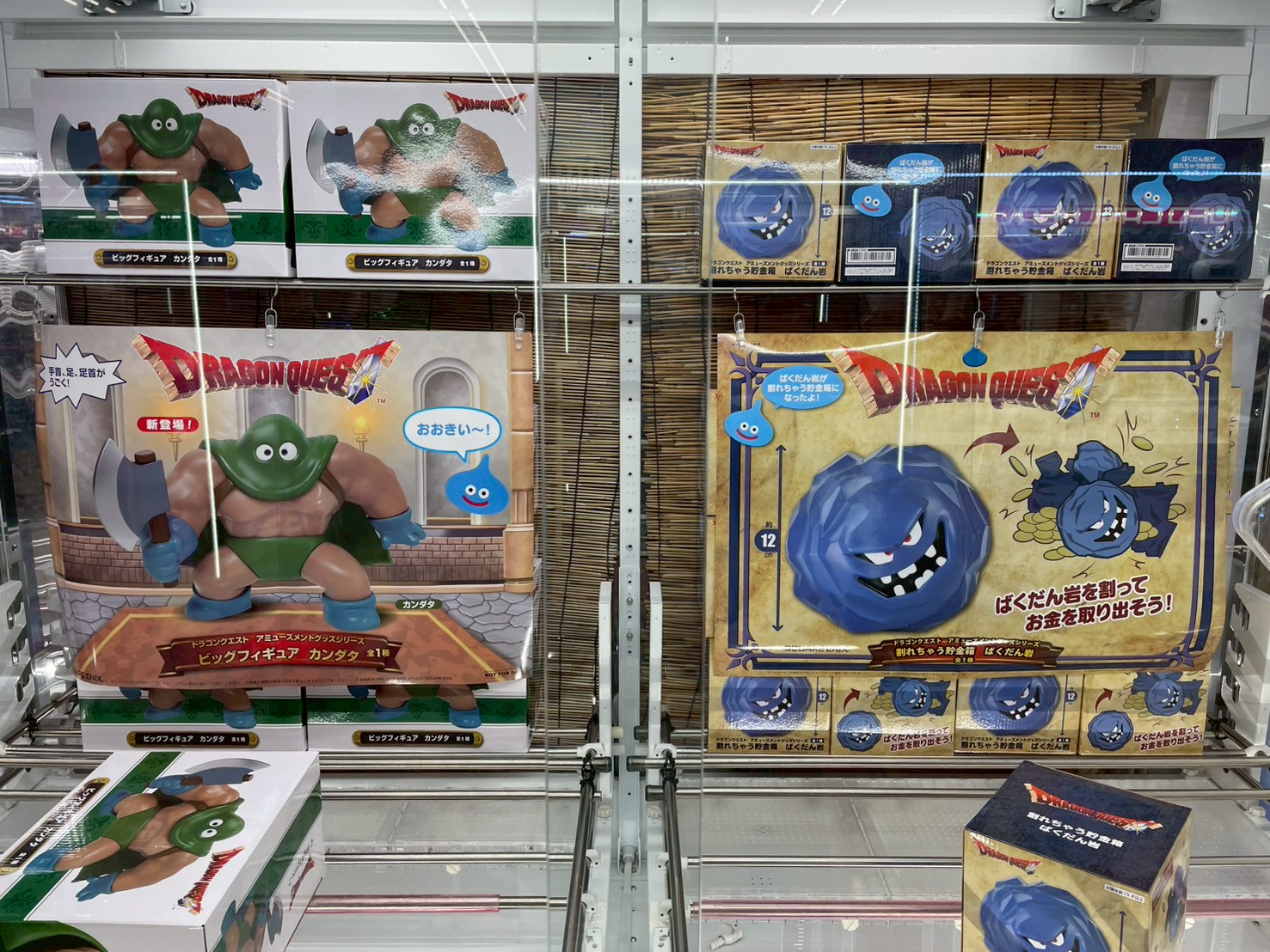 『ドラクエ』シリーズより、斧を構えた立ち姿が迫力満点なカンダタと、貯まったら割って取り出すギミックが楽しいばくだん岩の貯金箱が登場です‼️