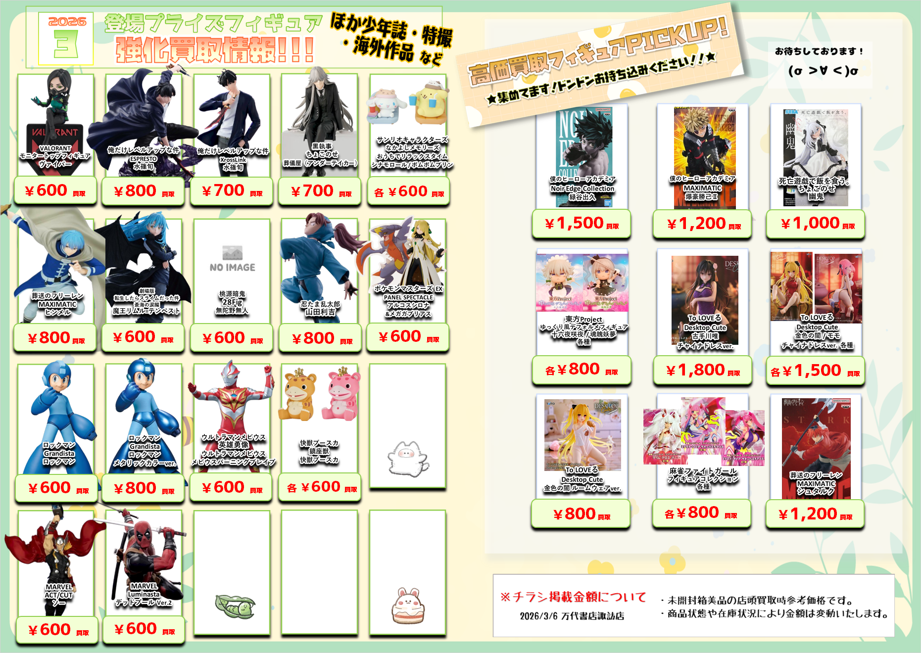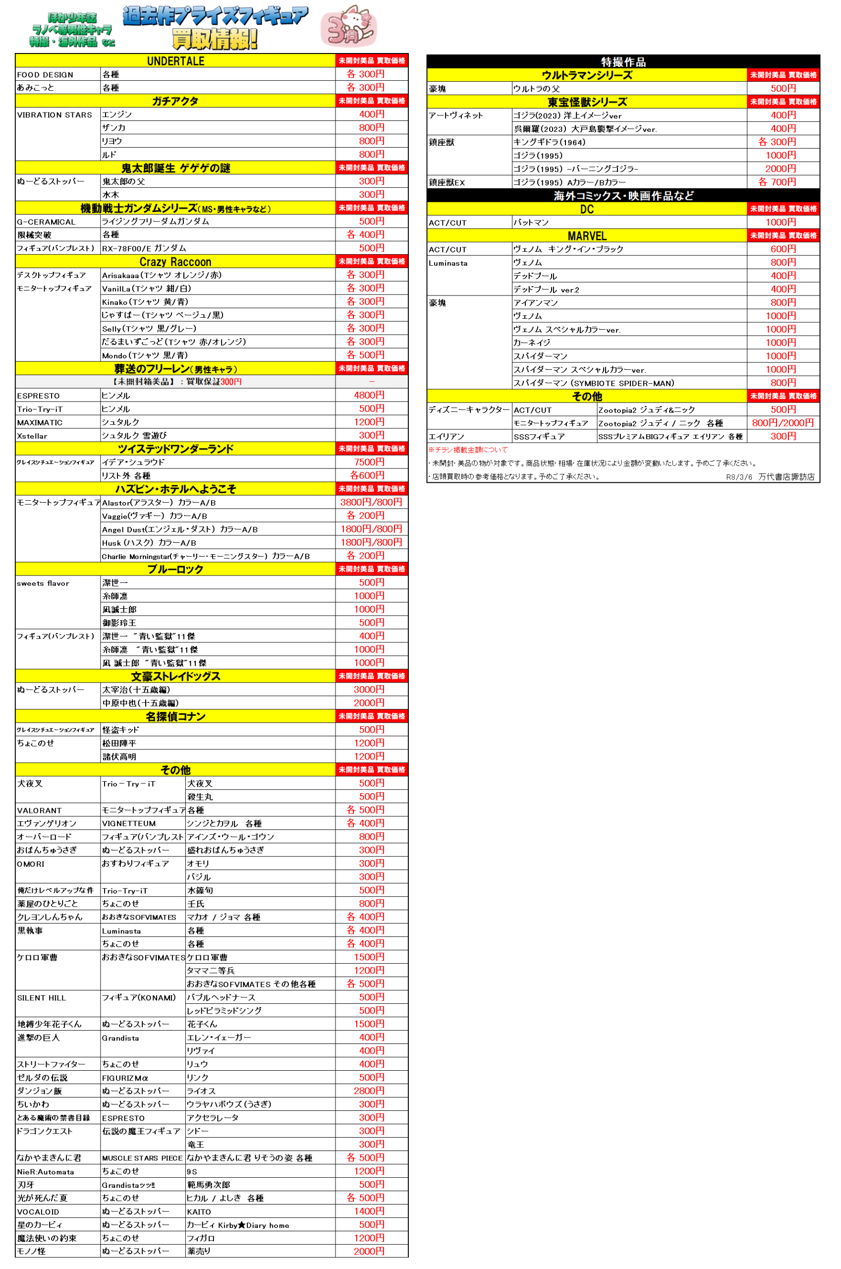 また、先月以前に登場したフィギュアの買取参考価格リストも掲載いたします(‘ω’)ゞ