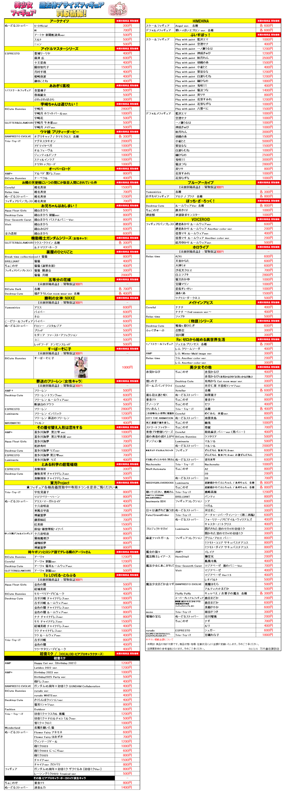 今月登場予定のプライズフィギュアの買取情報を更新いたしました(*>v<)ノ