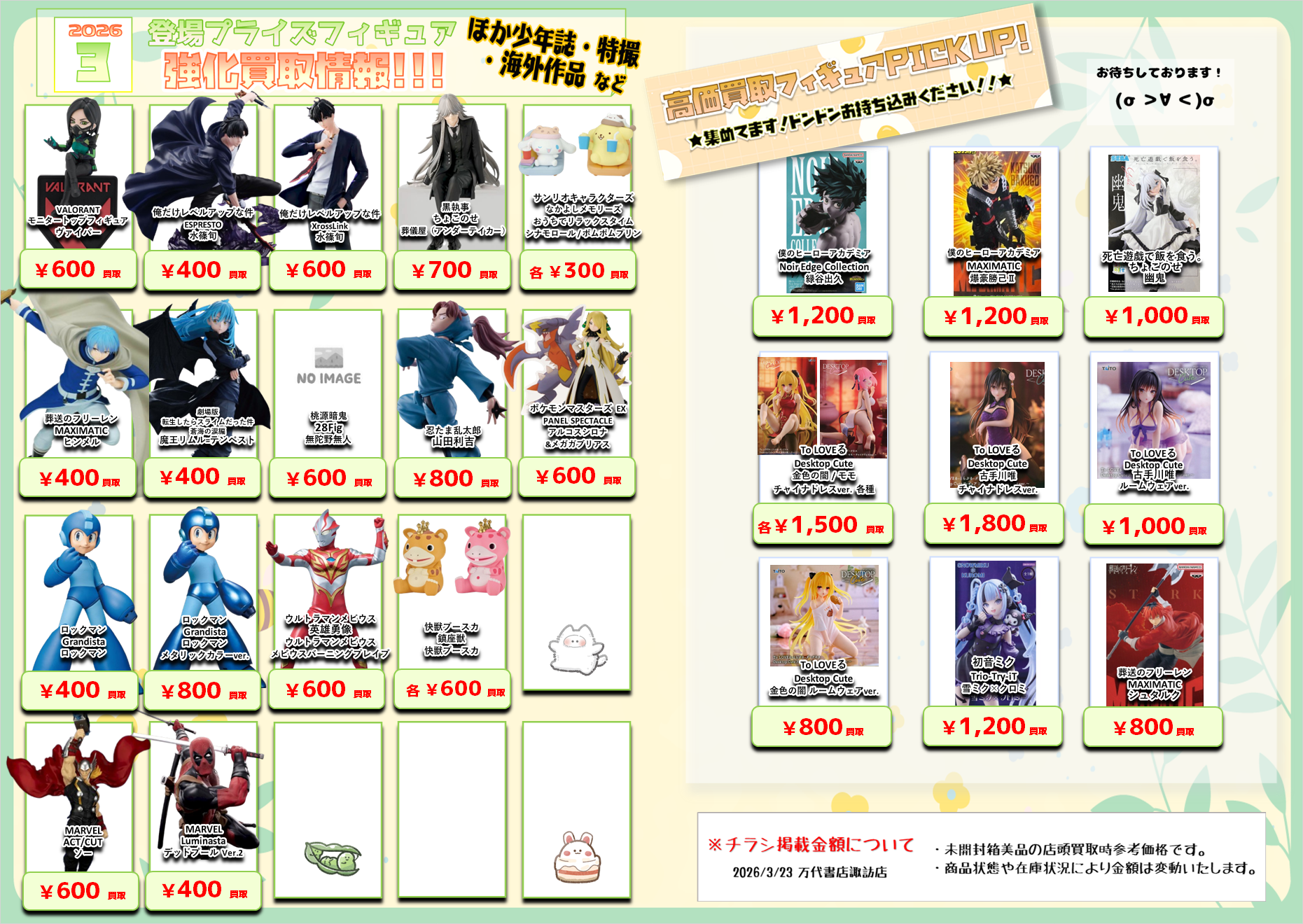 また、先月以前に登場したフィギュアの買取参考価格リストも更新しております(‘ω’)ゞ