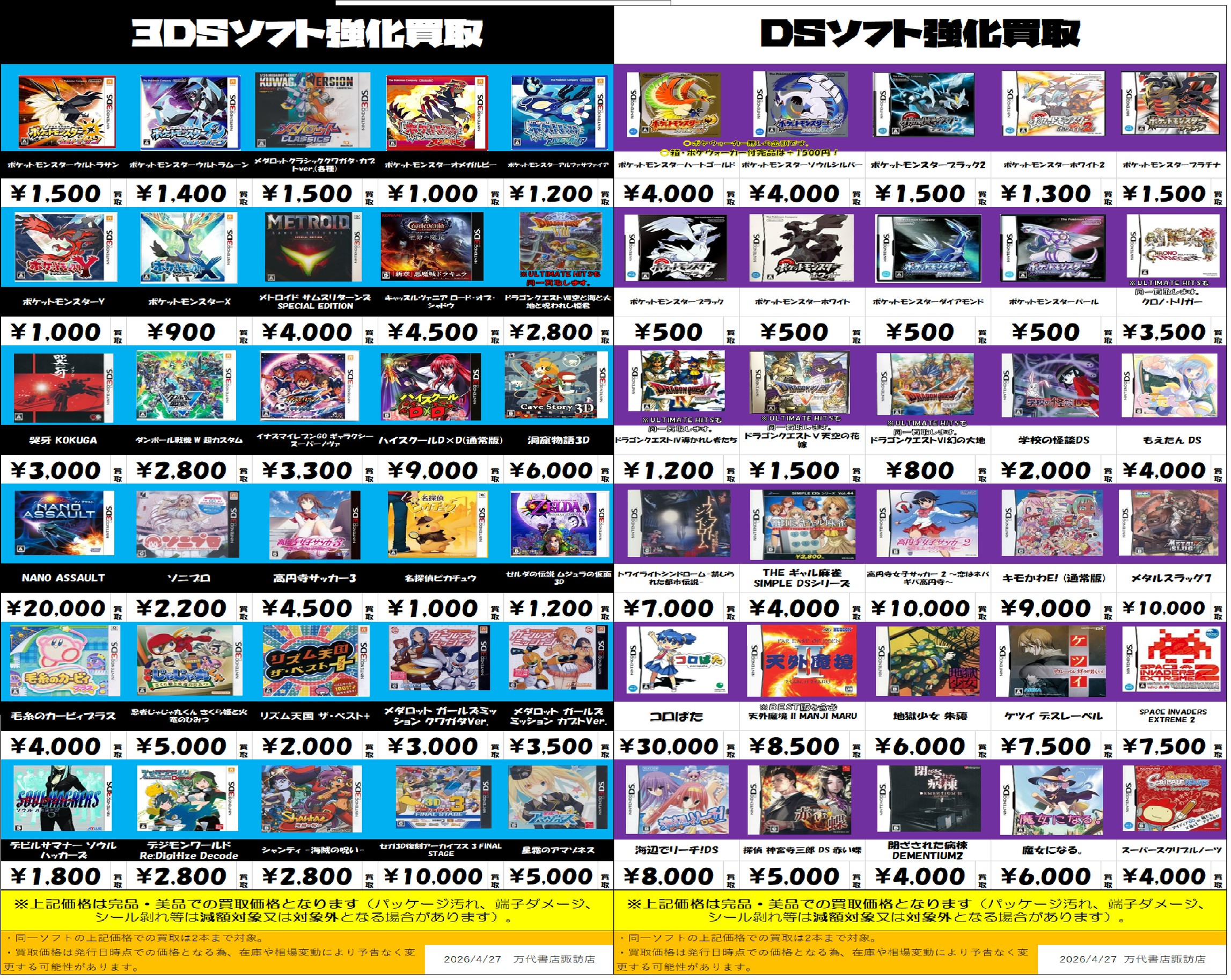 只今3DS・DSソフトの高額買取中!!WEBチラシに