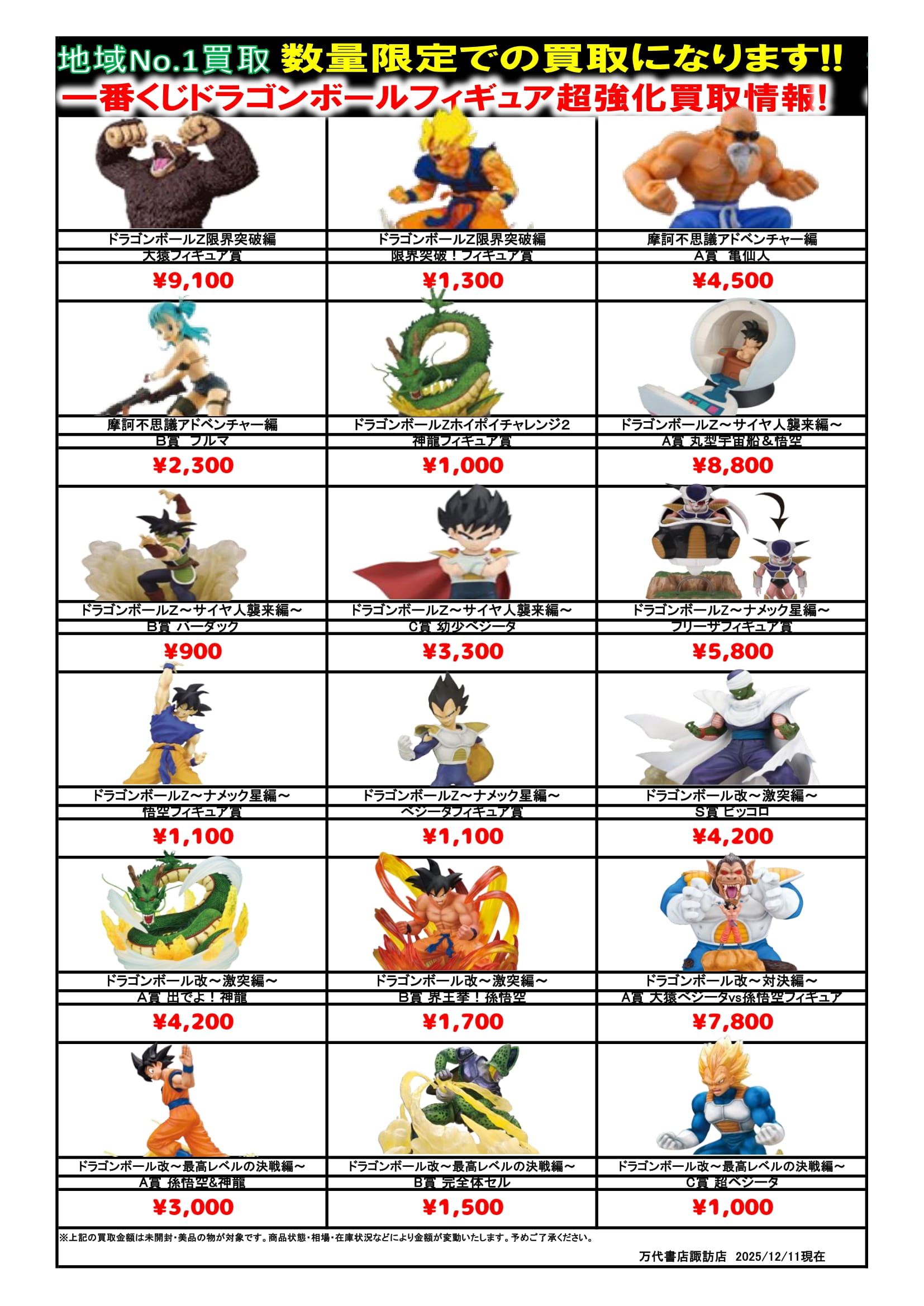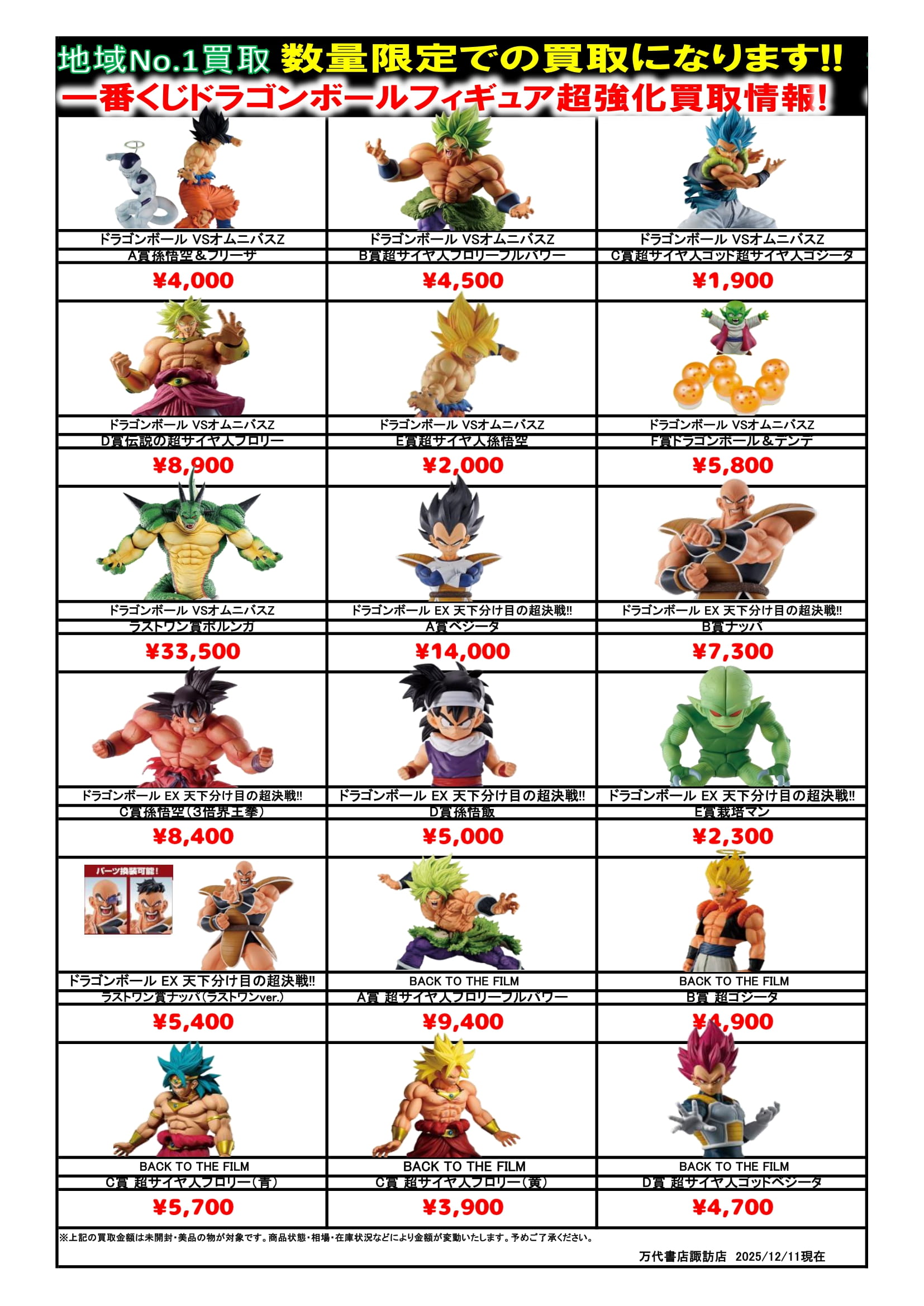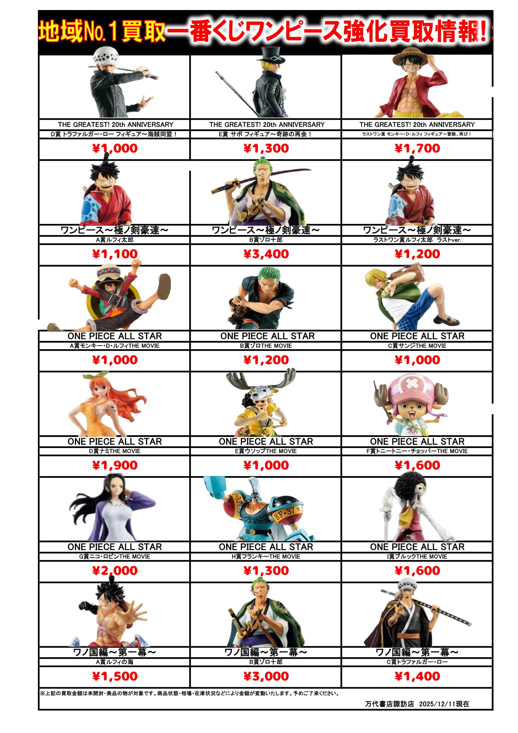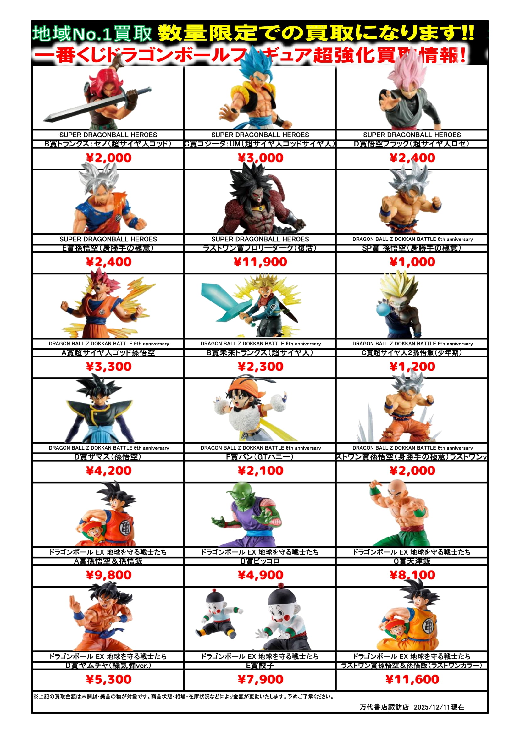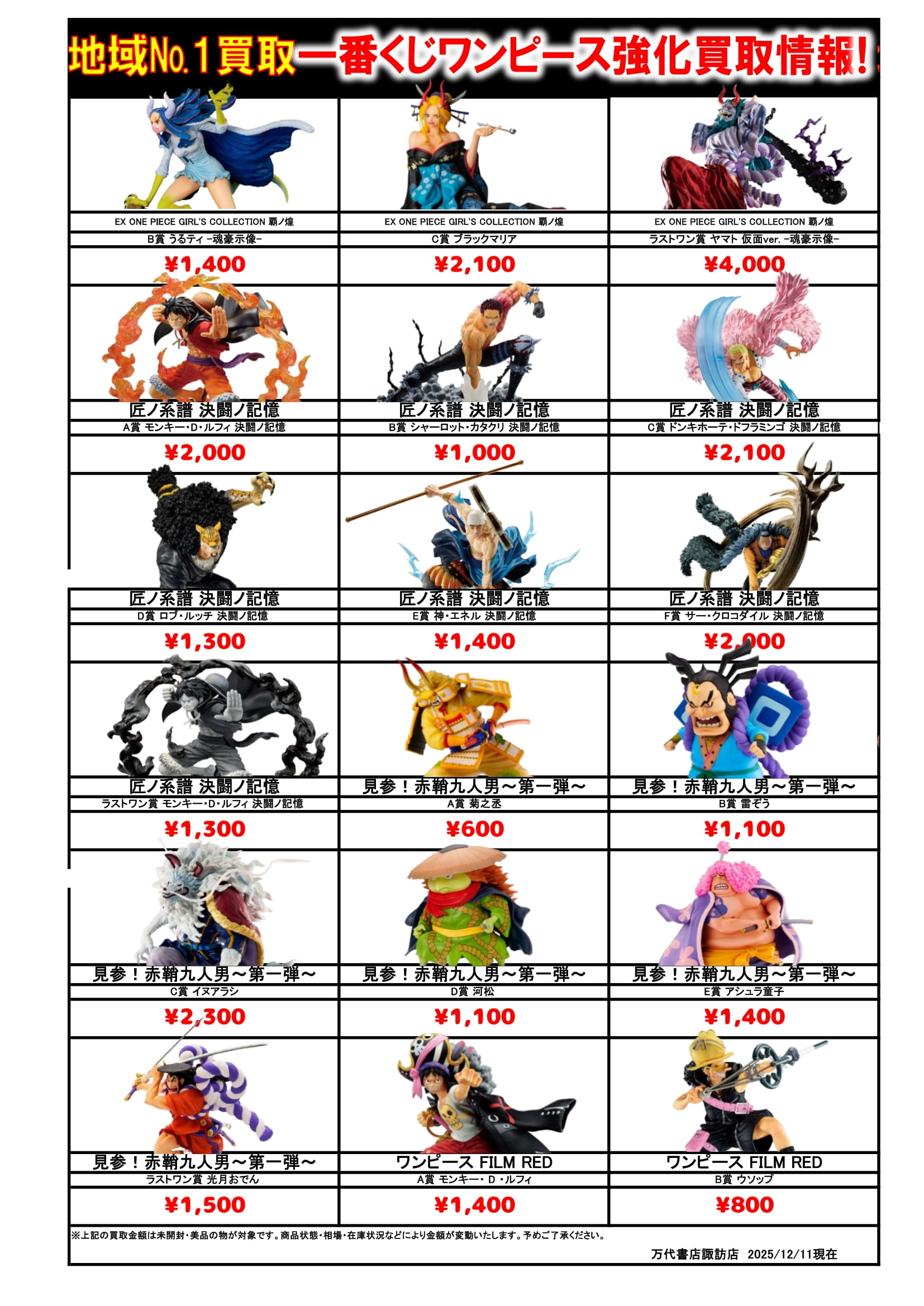 ドラゴンボール・ワンピース フィギュア WEBチラシ 2025/12/23 更新 フィギュアはこちら プライズフィギュアはこちら 美少女フィギュアはこちら チラシの掲載金額は店頭買取時での参考価格となります。 【ワンピース】 【ドラゴンボール】