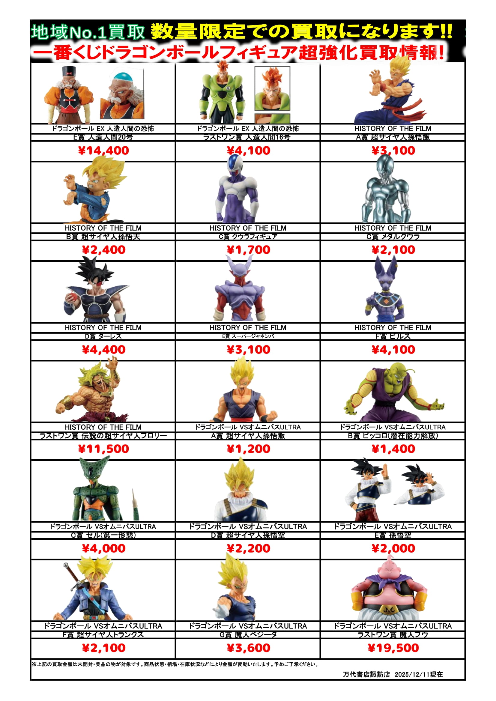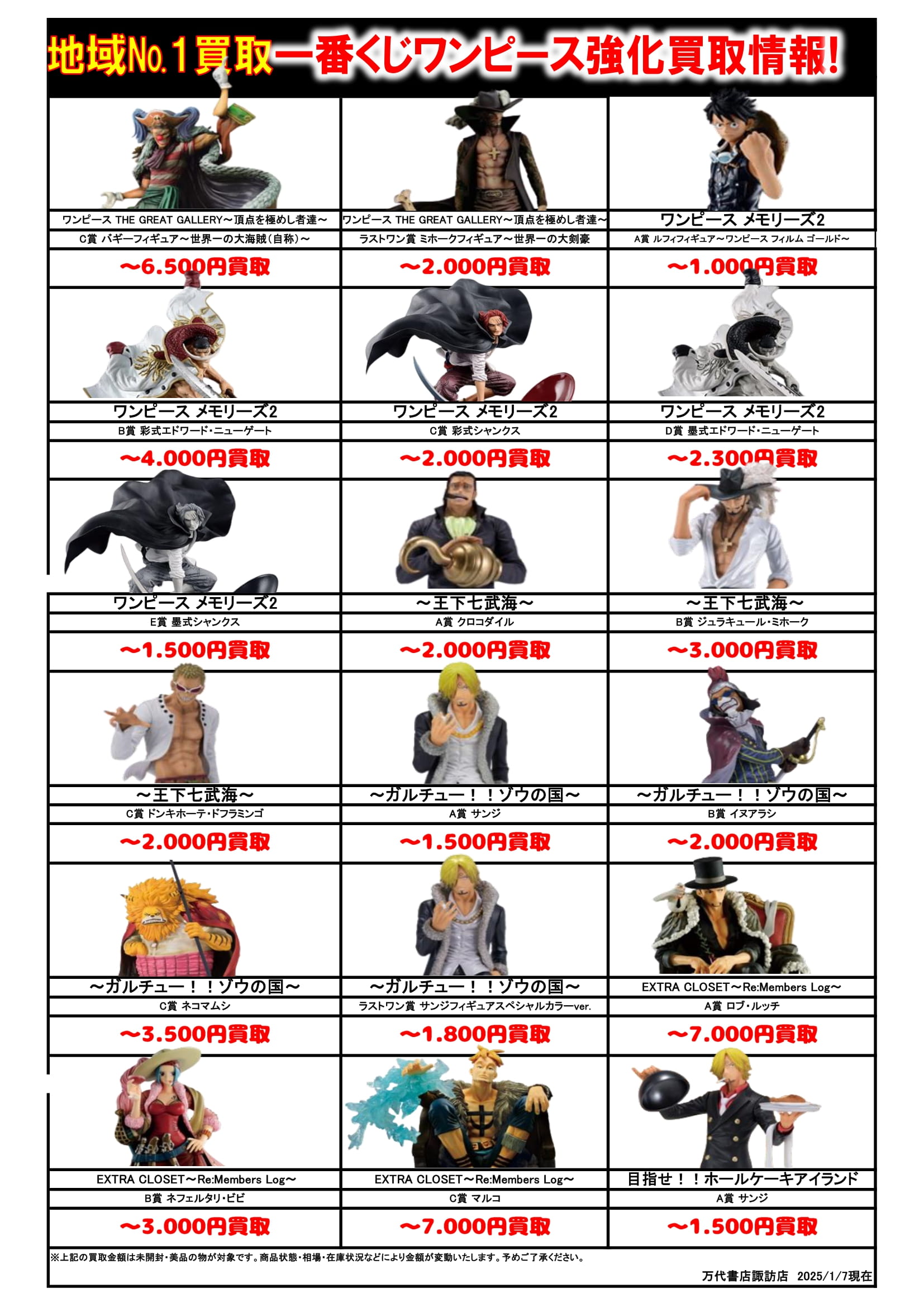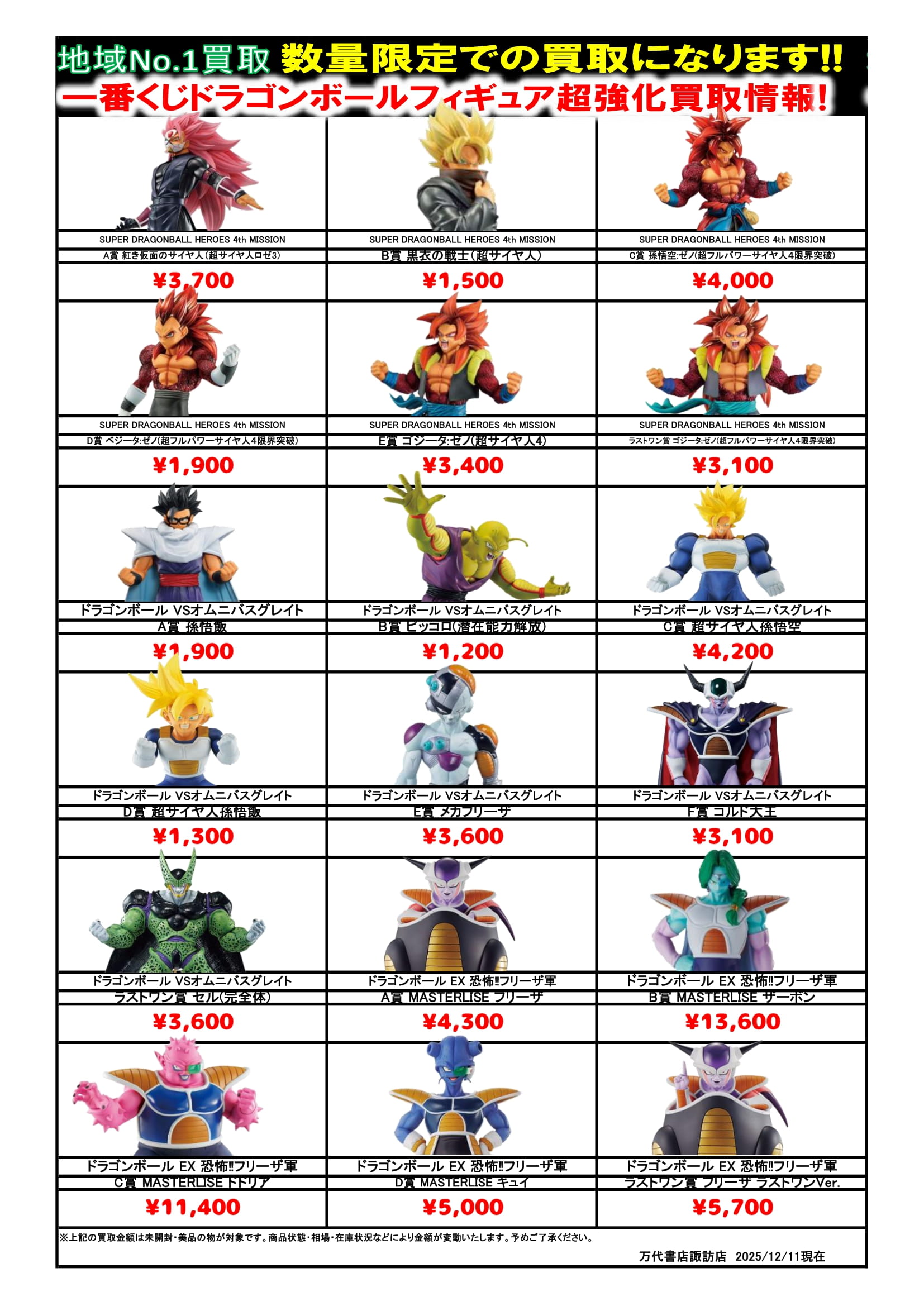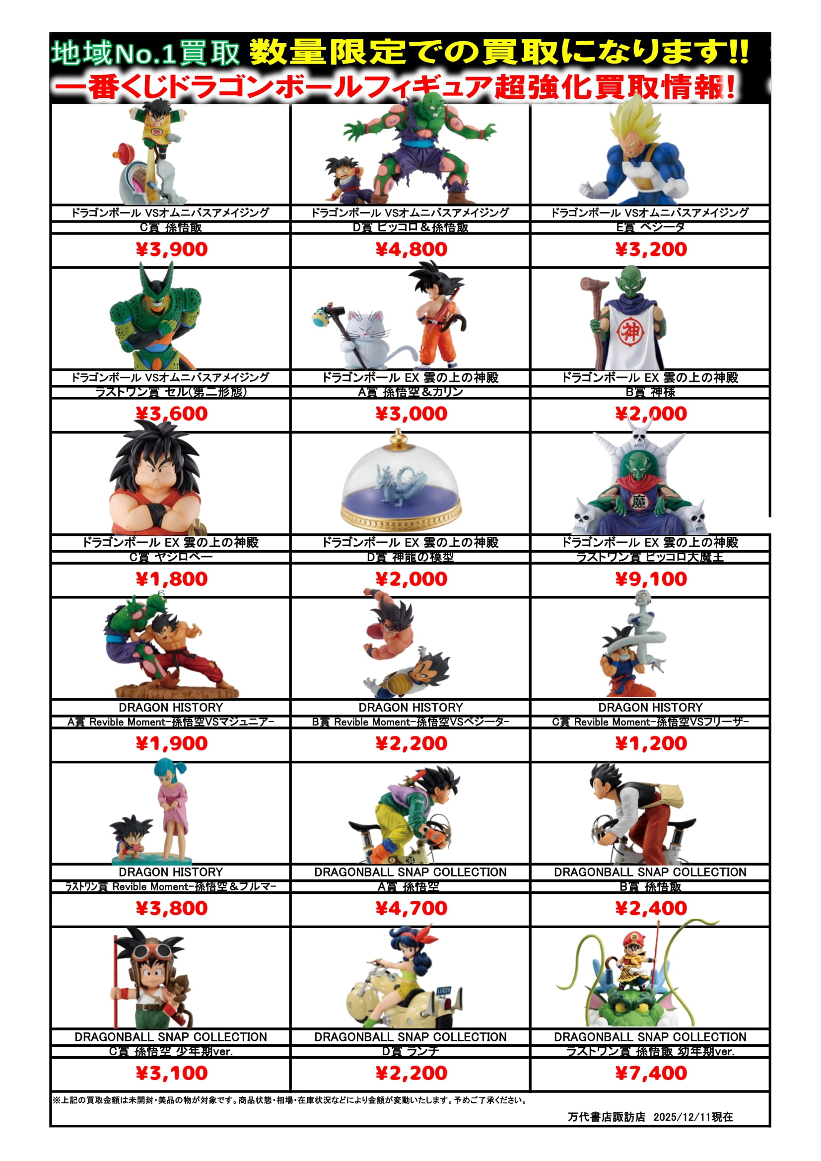 ドラゴンボール・ワンピース フィギュア WEBチラシ 2025/12/23 更新 フィギュアはこちら プライズフィギュアはこちら 美少女フィギュアはこちら チラシの掲載金額は店頭買取時での参考価格となります。 【ワンピース】 【ドラゴンボール】
