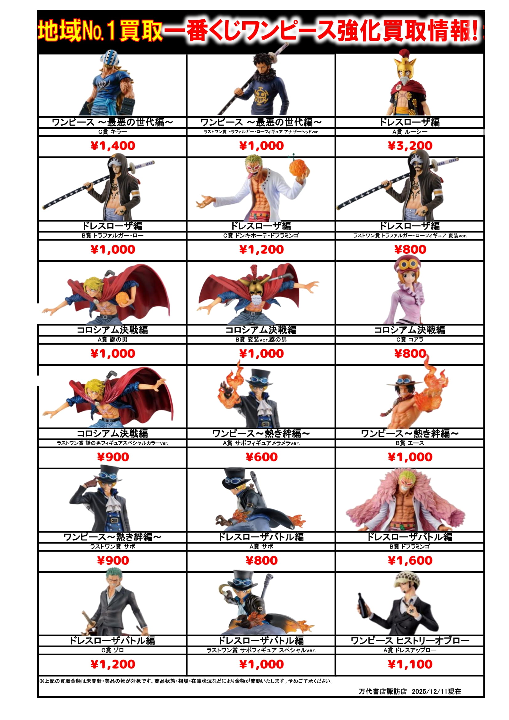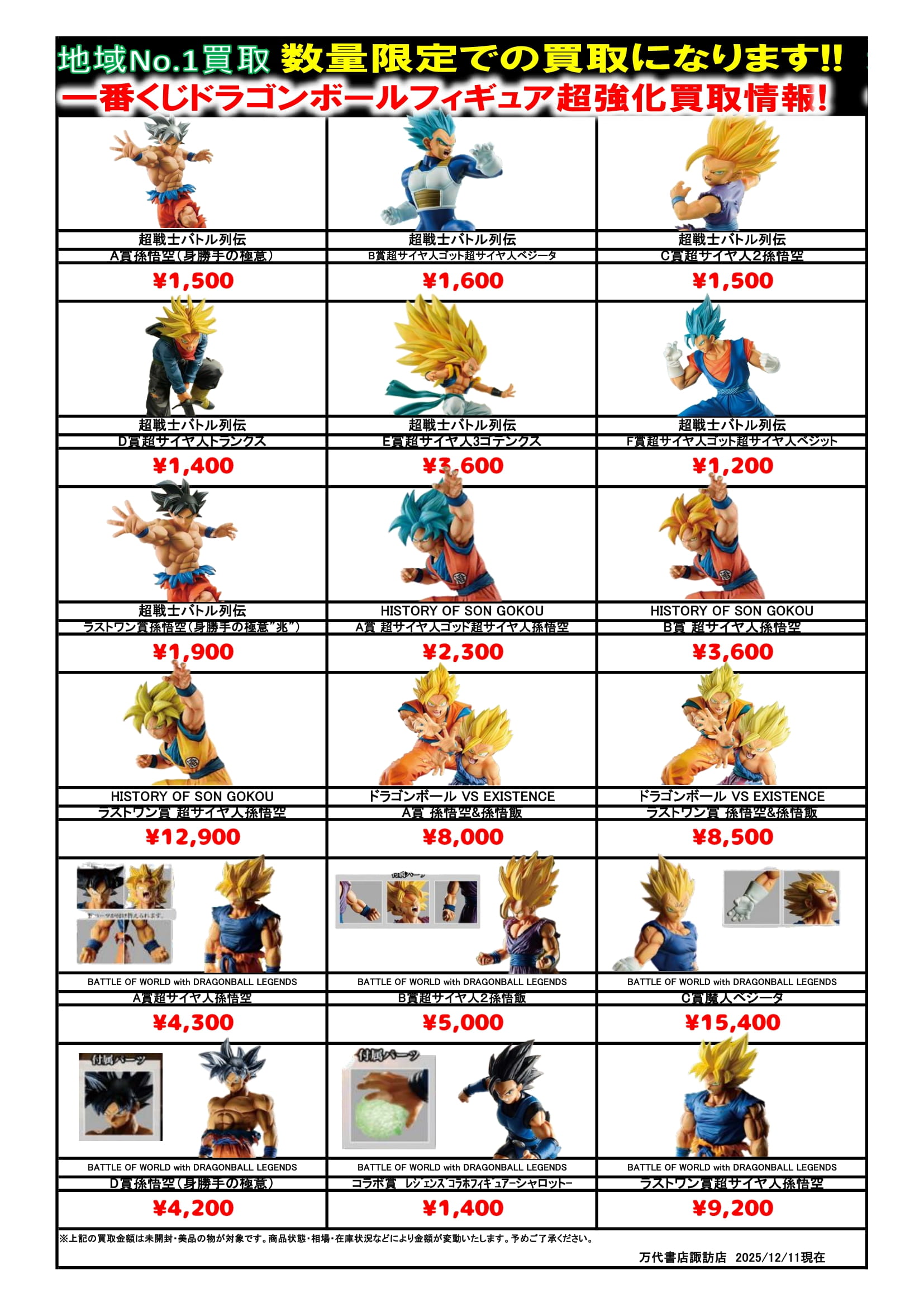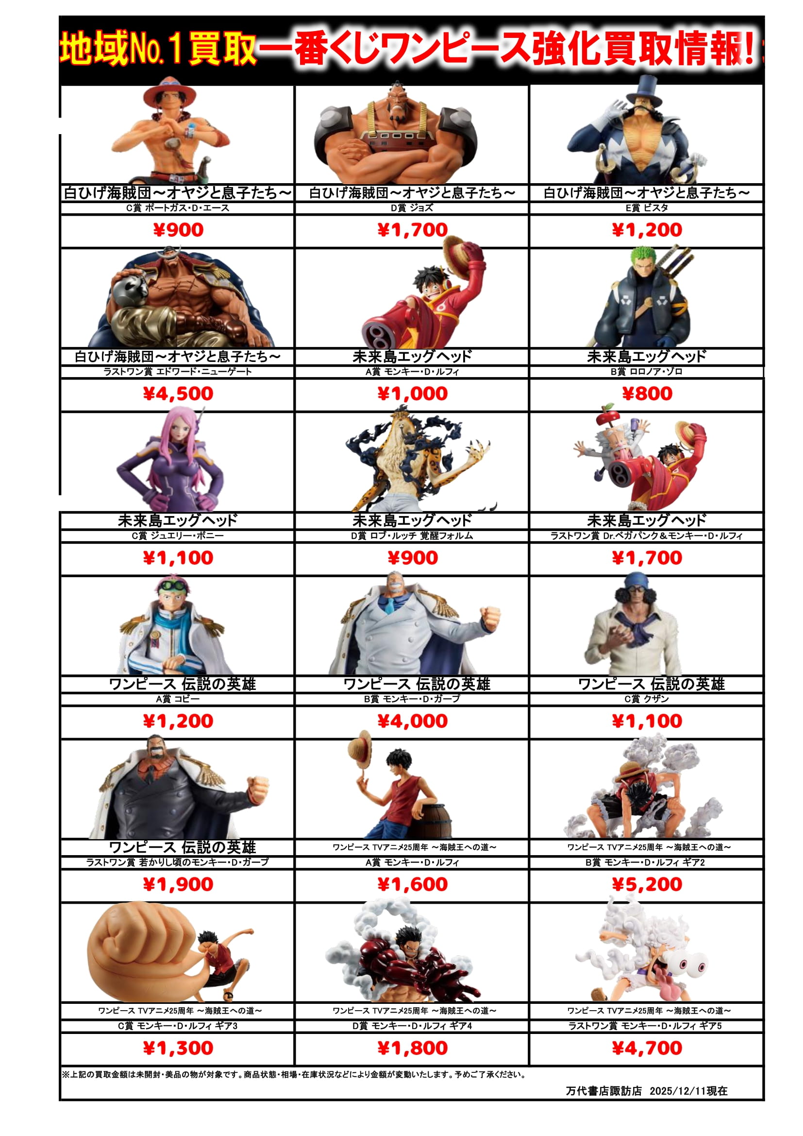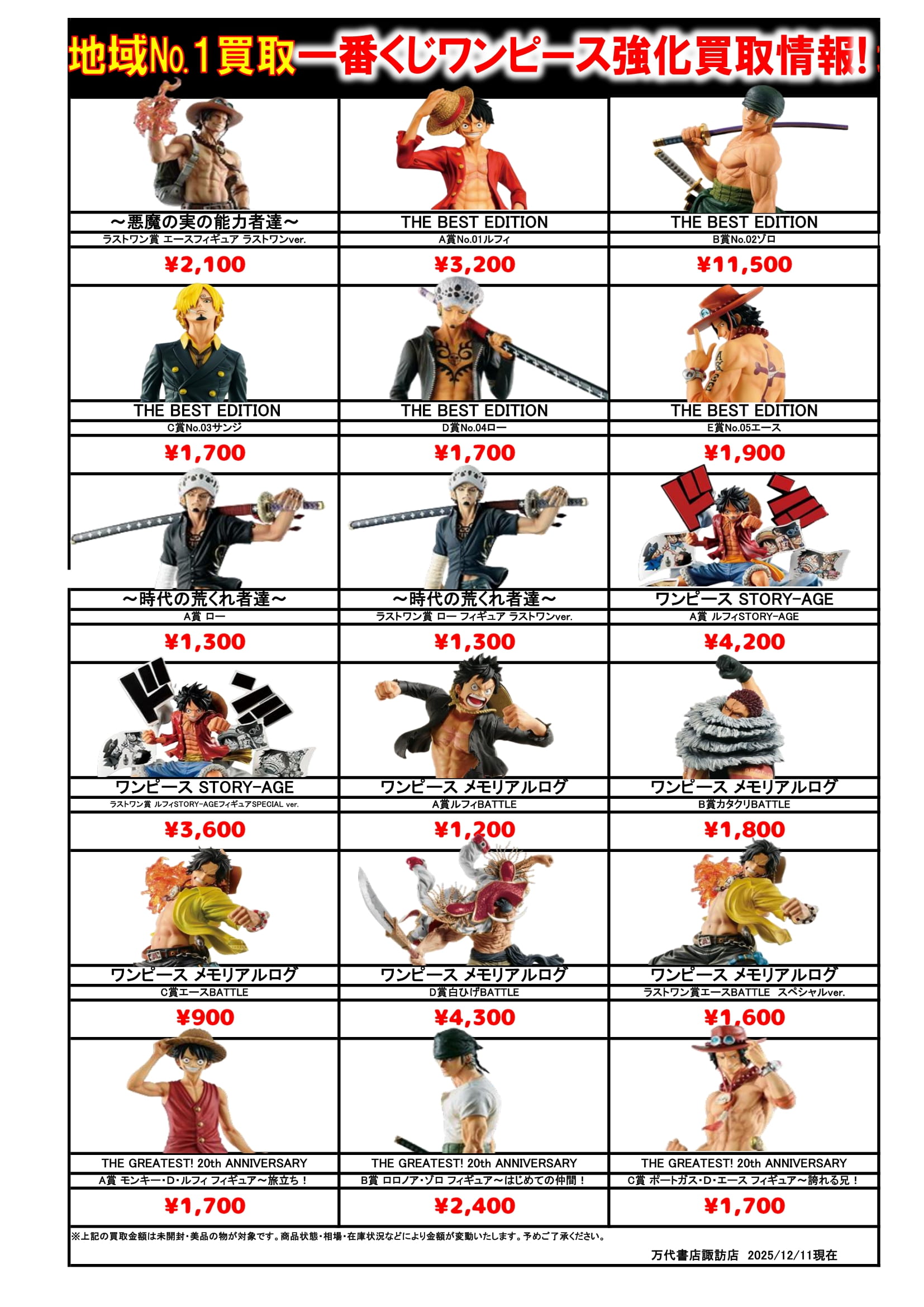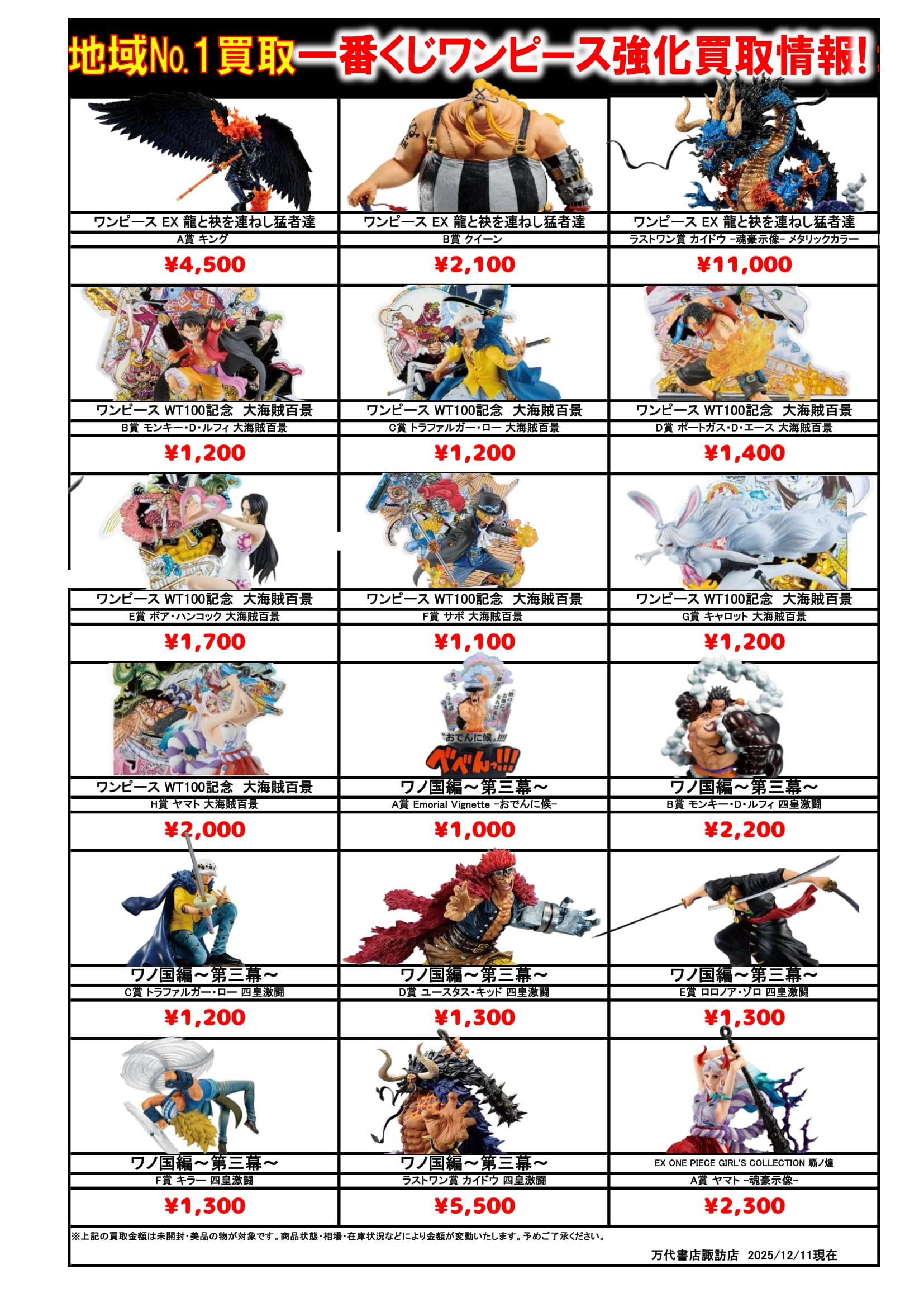 ドラゴンボール・ワンピース フィギュア WEBチラシ 2025/12/23 更新 フィギュアはこちら プライズフィギュアはこちら 美少女フィギュアはこちら チラシの掲載金額は店頭買取時での参考価格となります。 【ワンピース】 【ドラゴンボール】