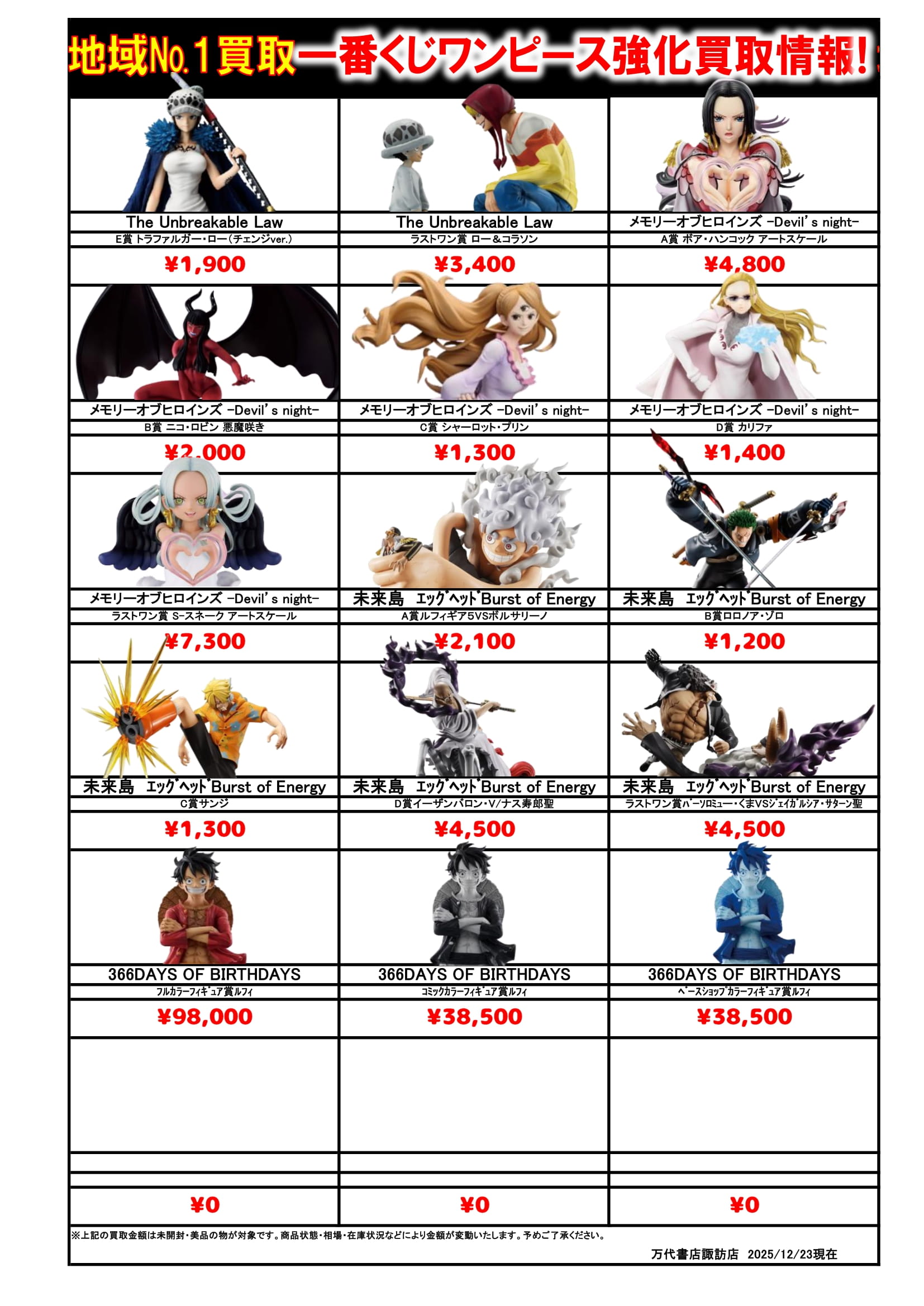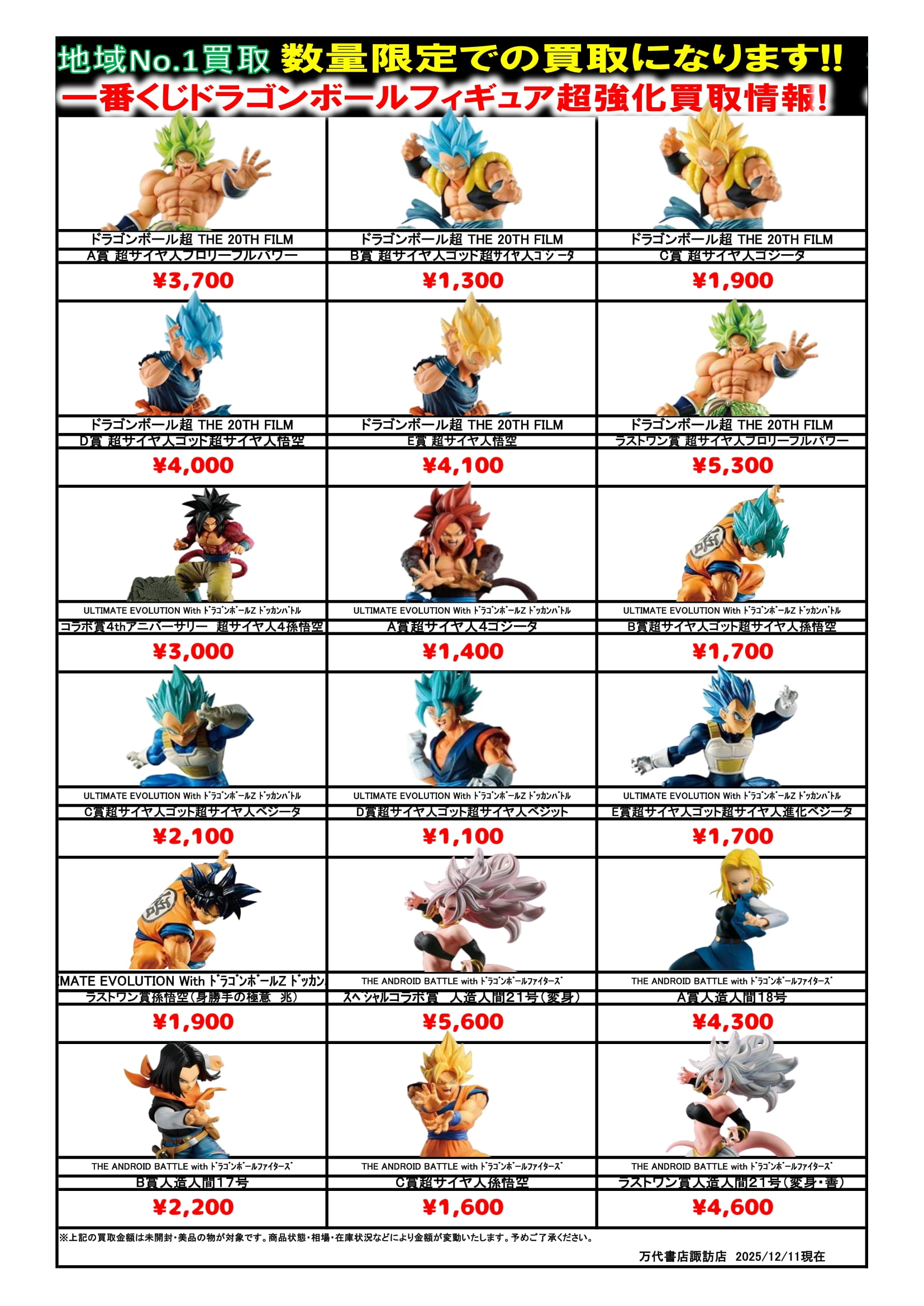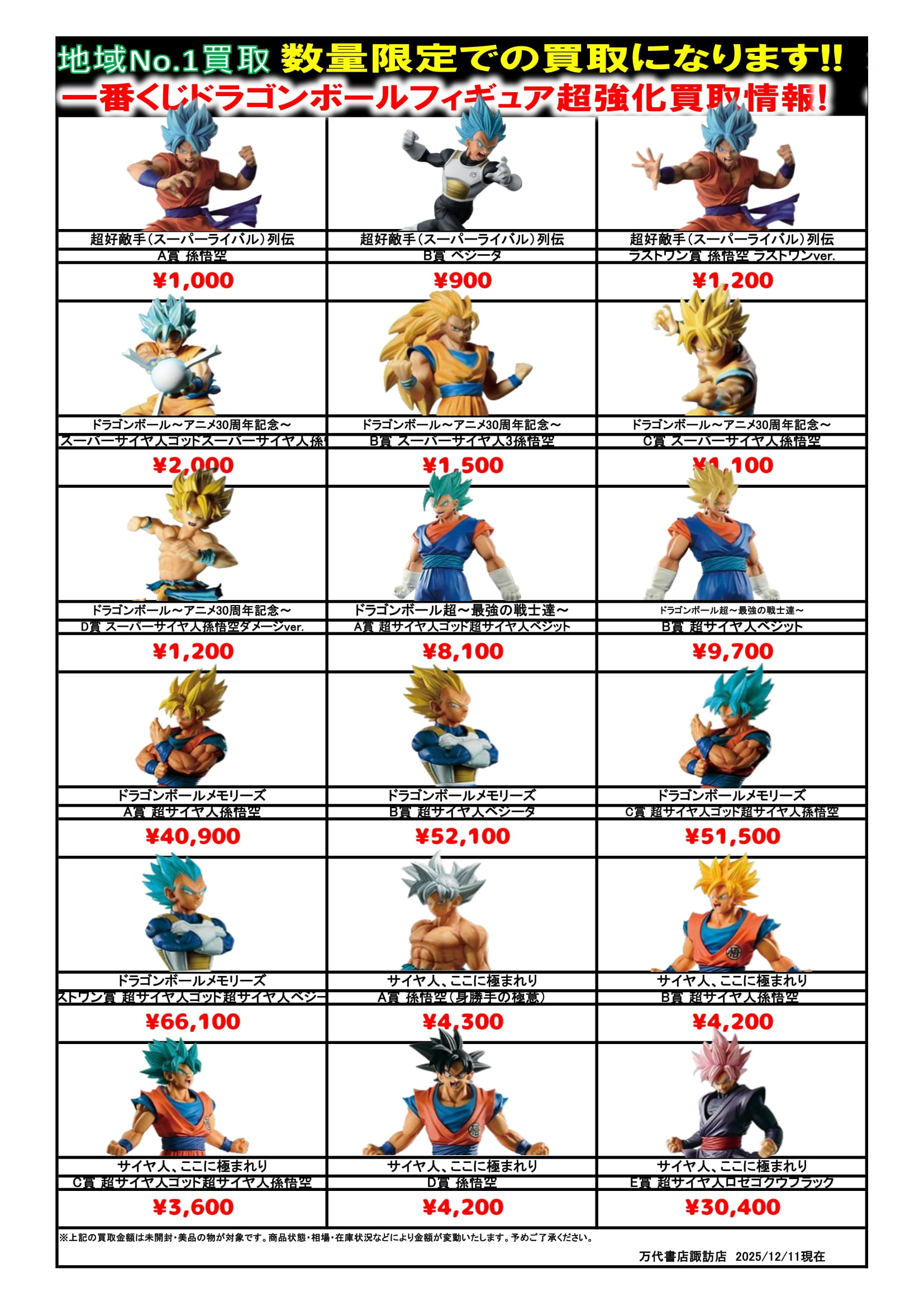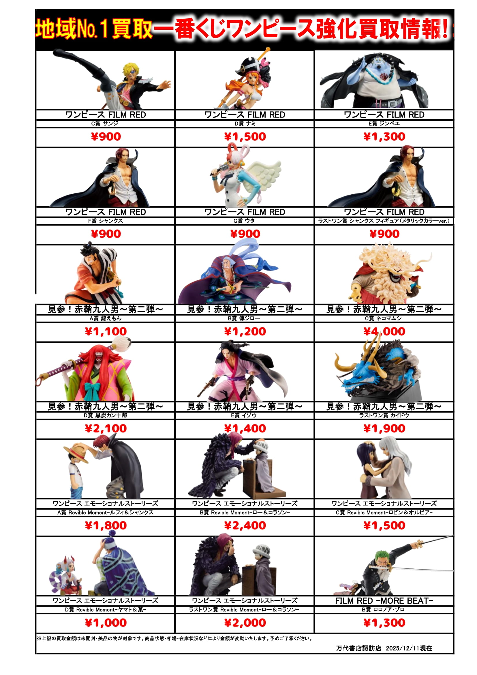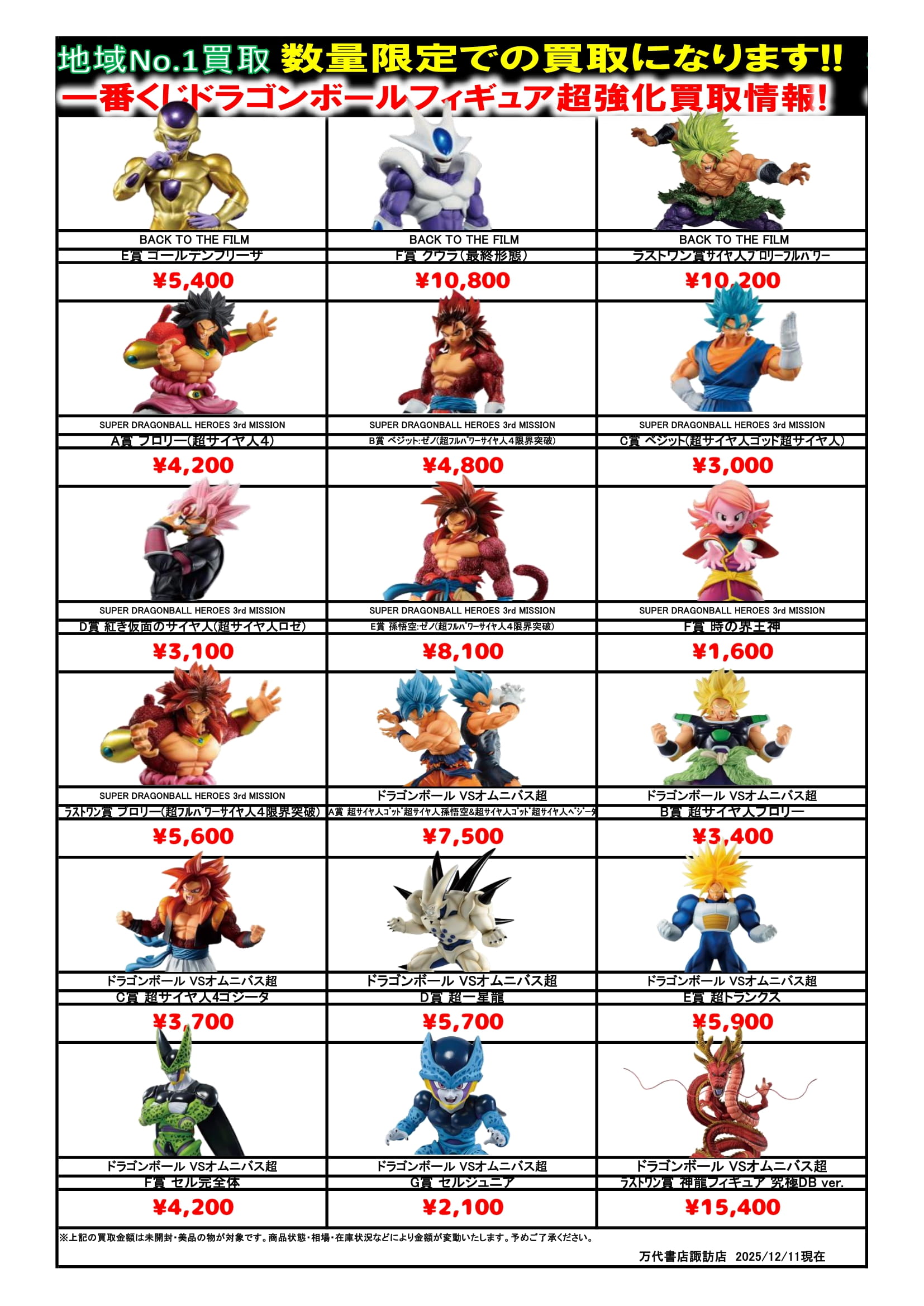 ドラゴンボール・ワンピース フィギュア WEBチラシ 2025/12/23 更新 フィギュアはこちら プライズフィギュアはこちら 美少女フィギュアはこちら チラシの掲載金額は店頭買取時での参考価格となります。 【ワンピース】 【ドラゴンボール】