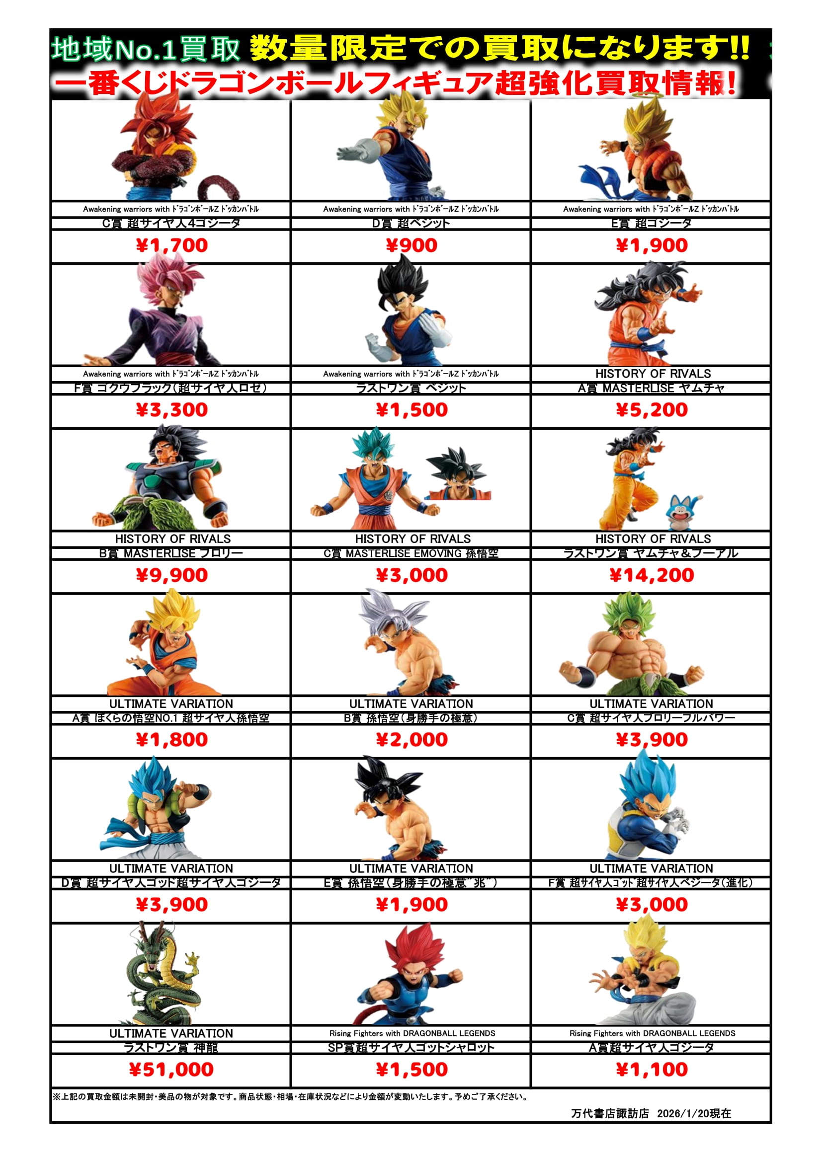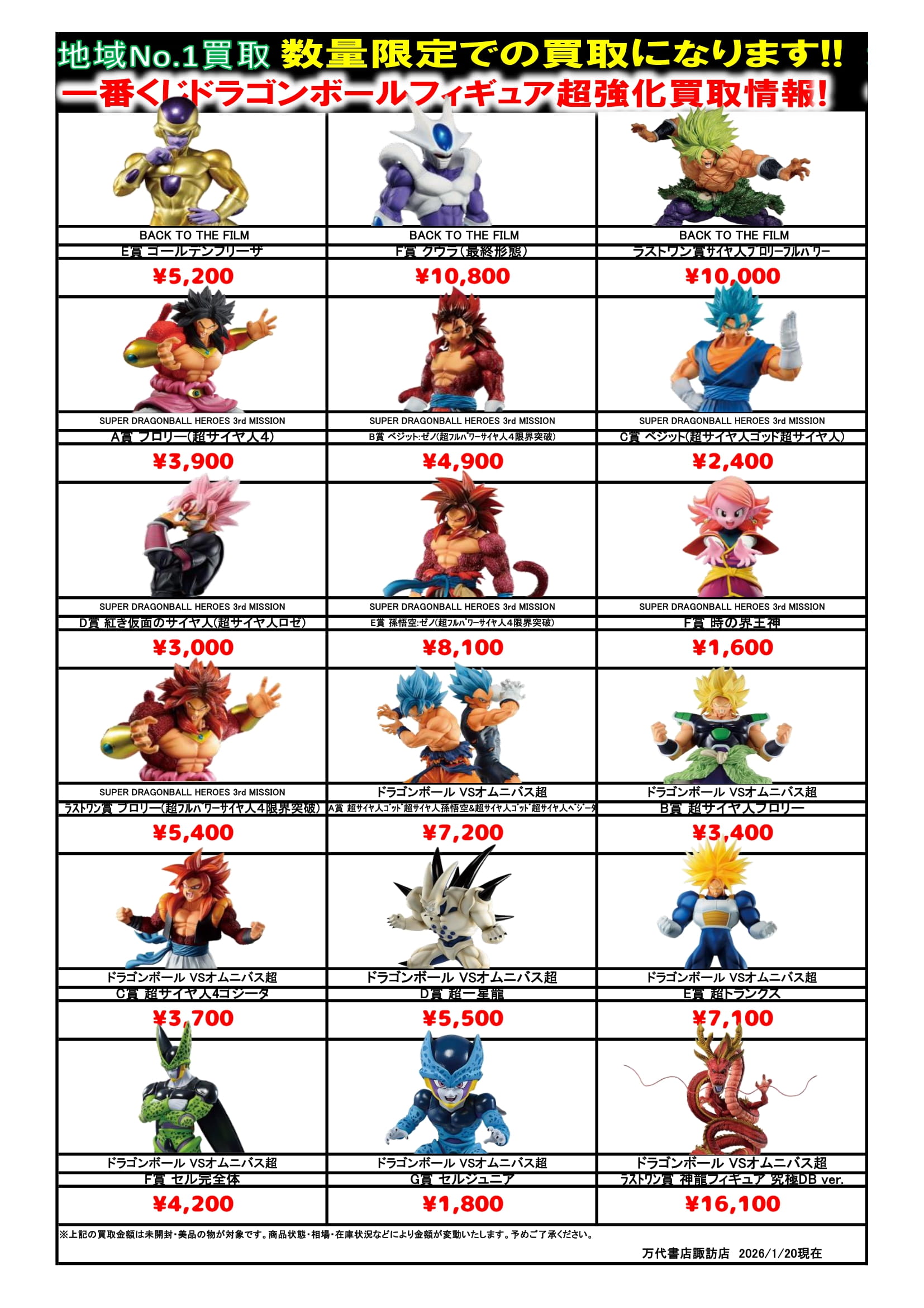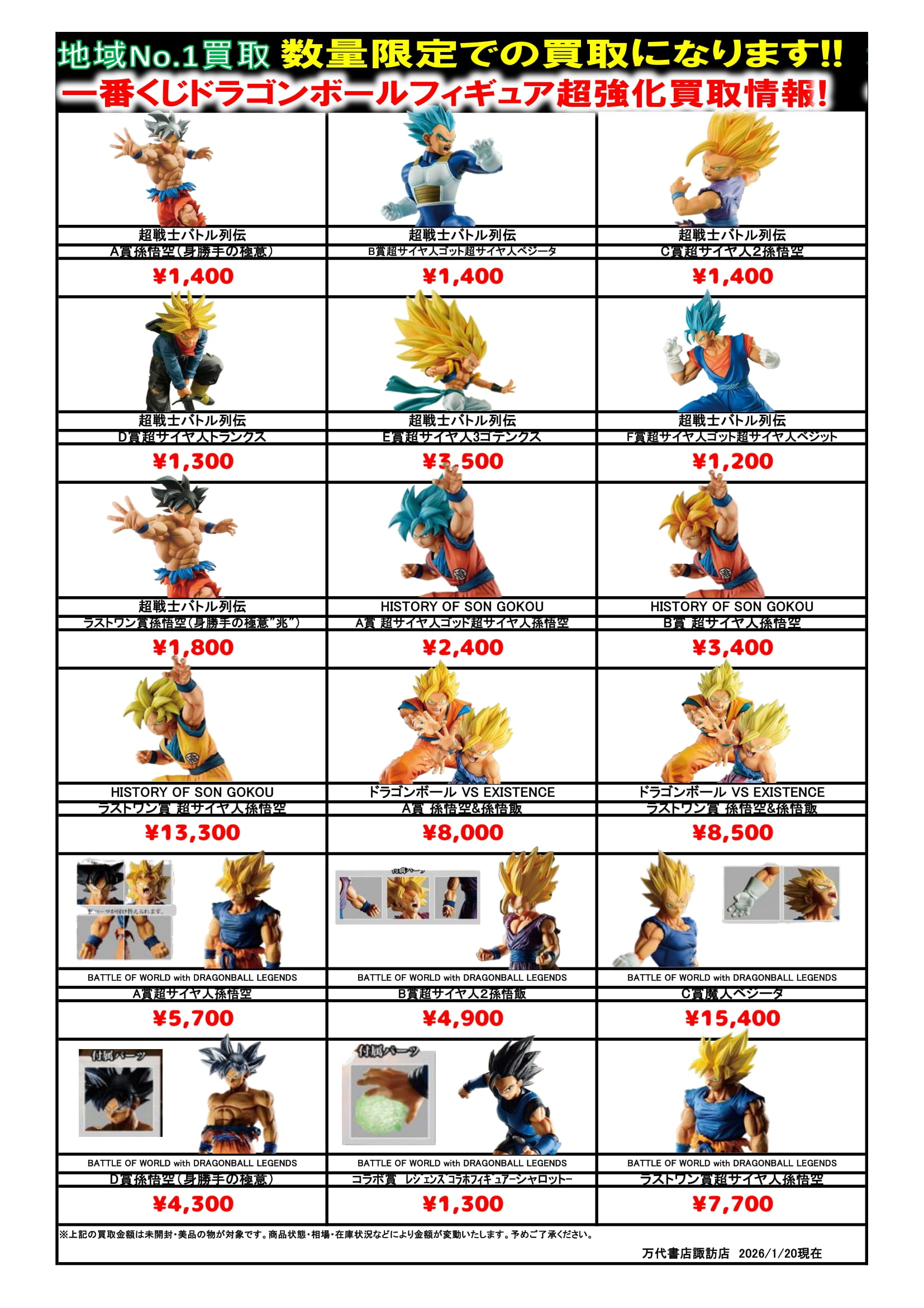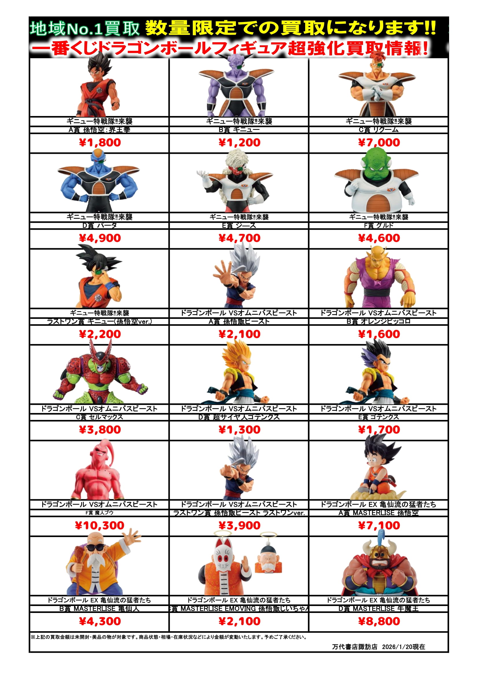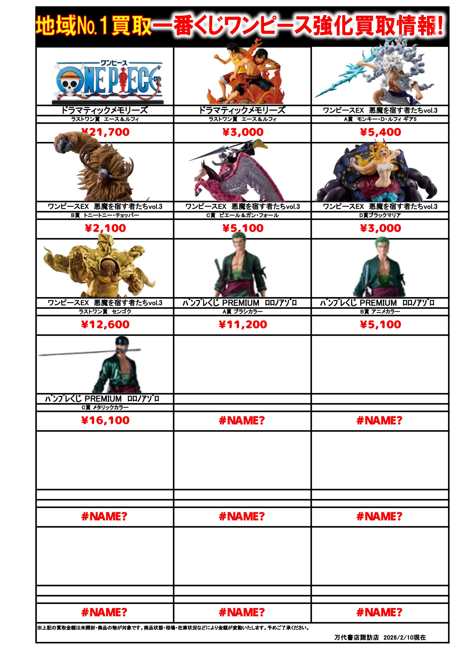 ドラゴンボール・ワンピース フィギュア WEBチラシ 2026/2/10 更新 フィギュアはこちら プライズフィギュアはこちら 美少女フィギュアはこちら チラシの掲載金額は店頭買取時での参考価格となります。 【ワンピース】 【ドラゴンボール】