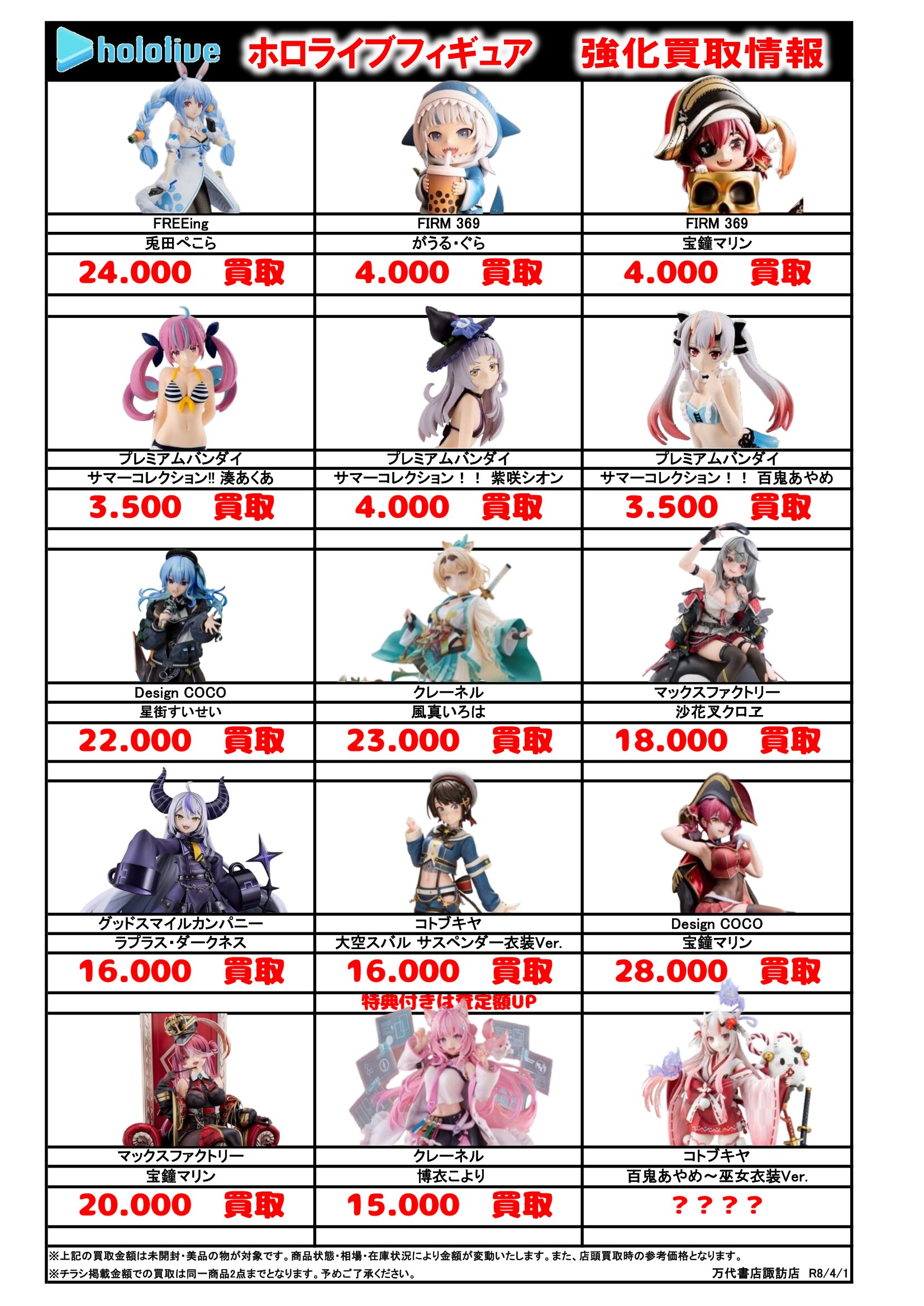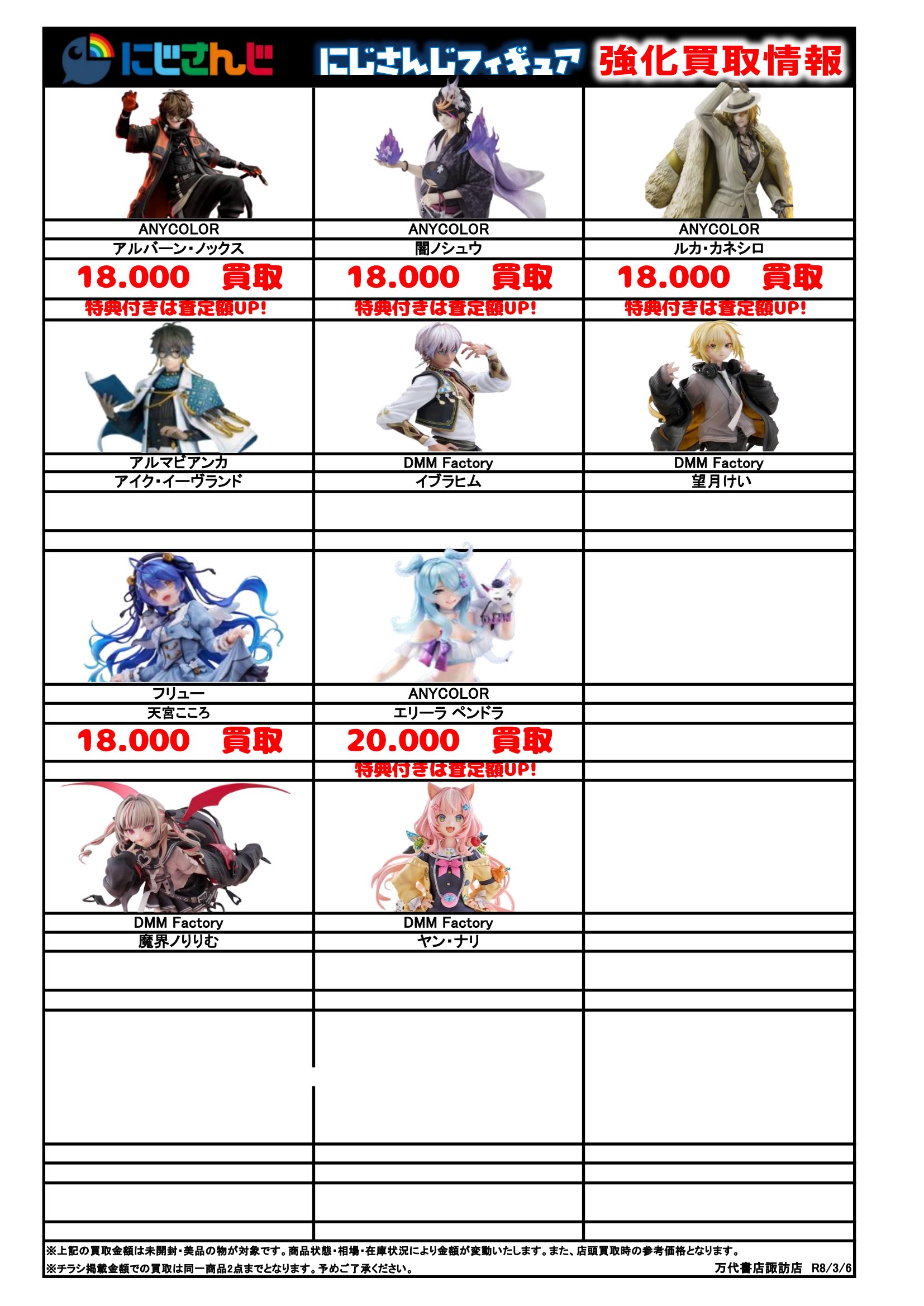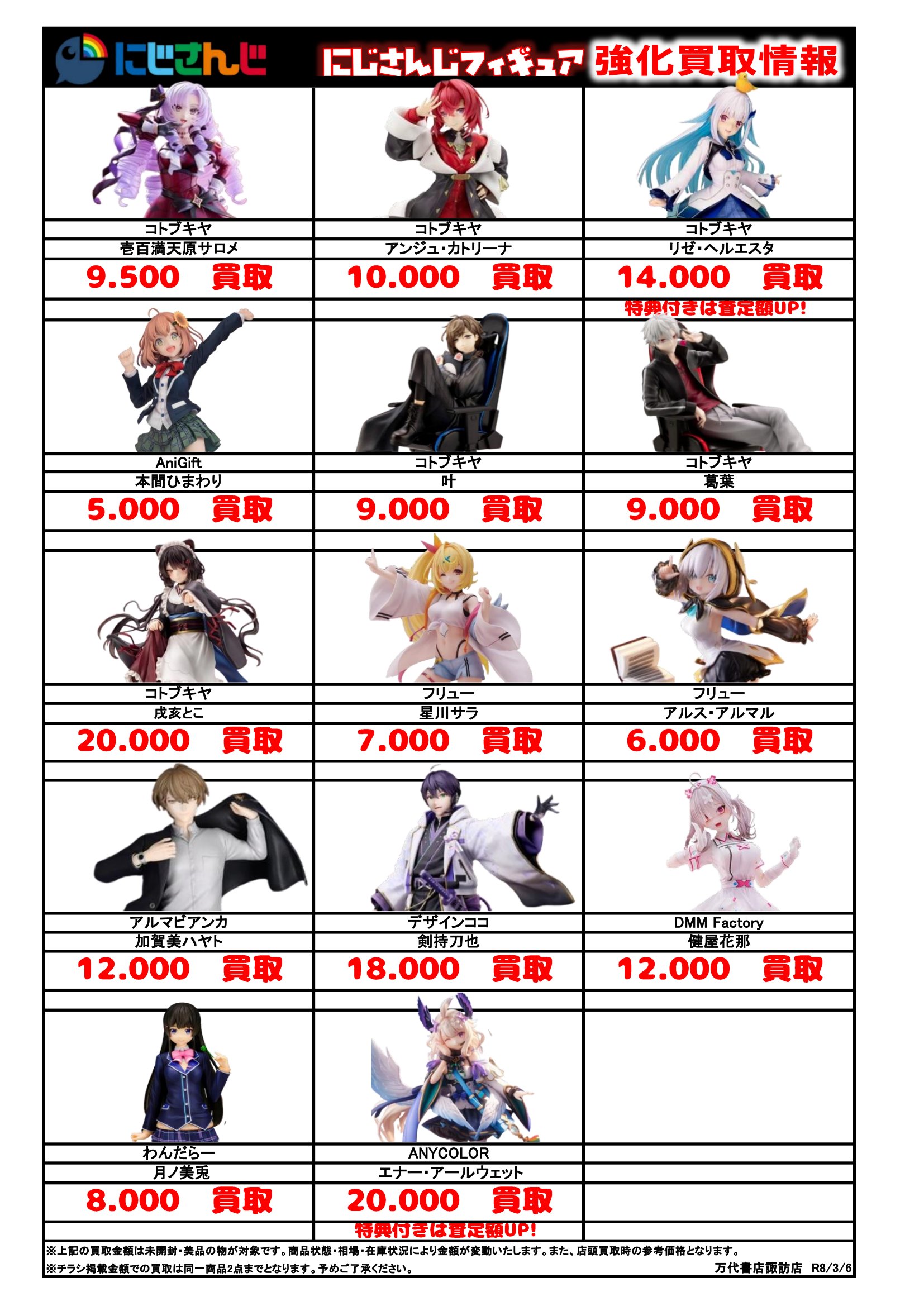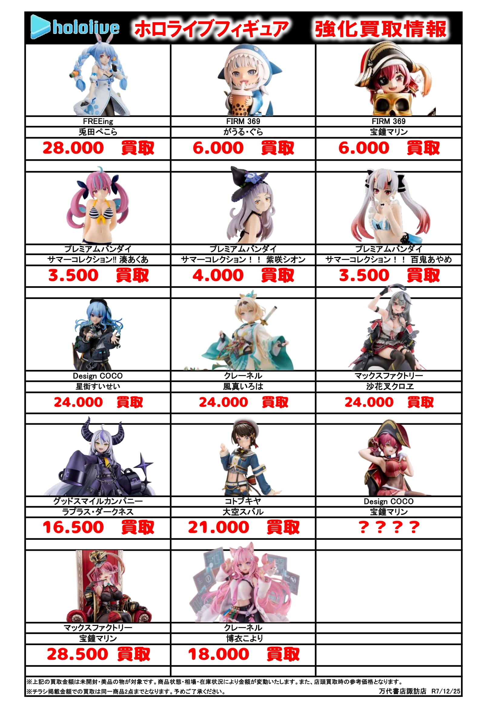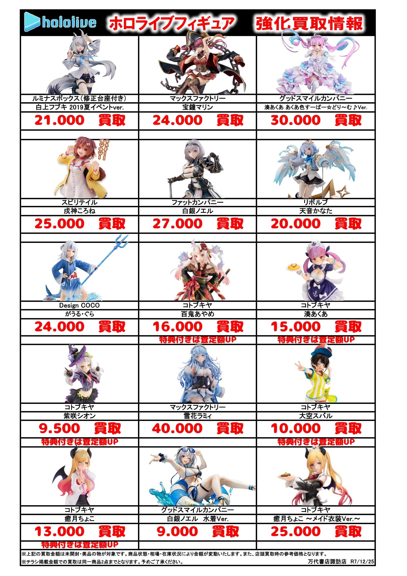 チラシの掲載金額は店頭買取時での参考価格となります。