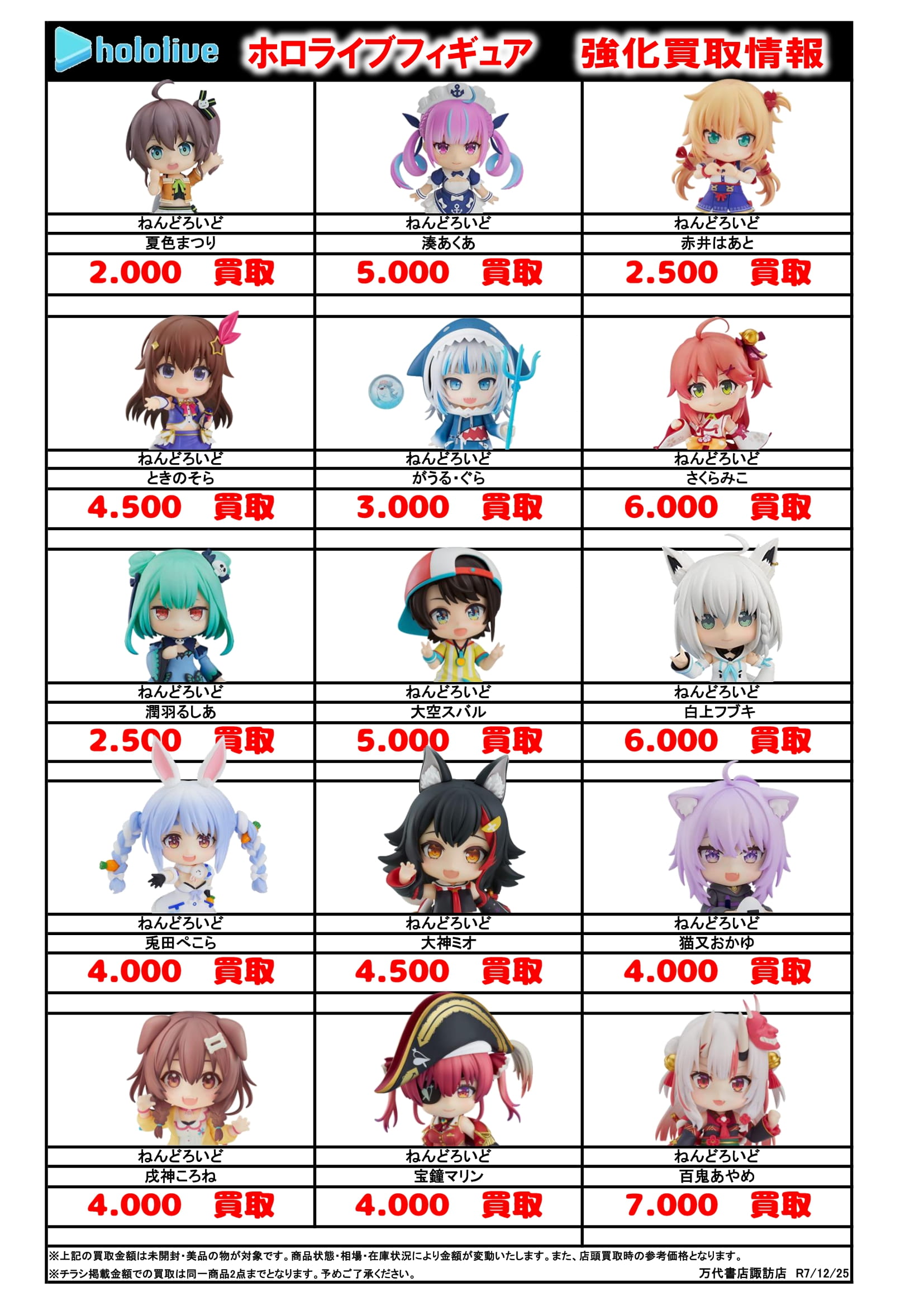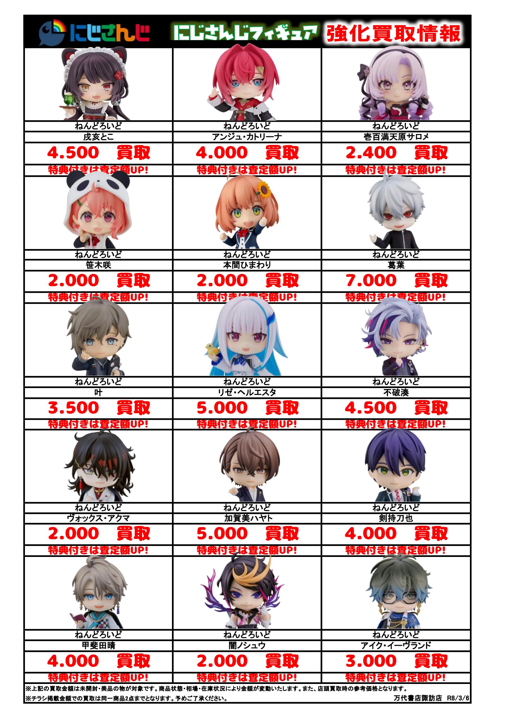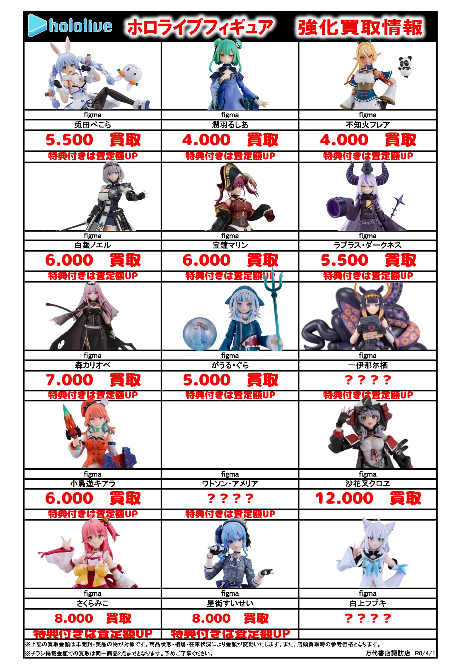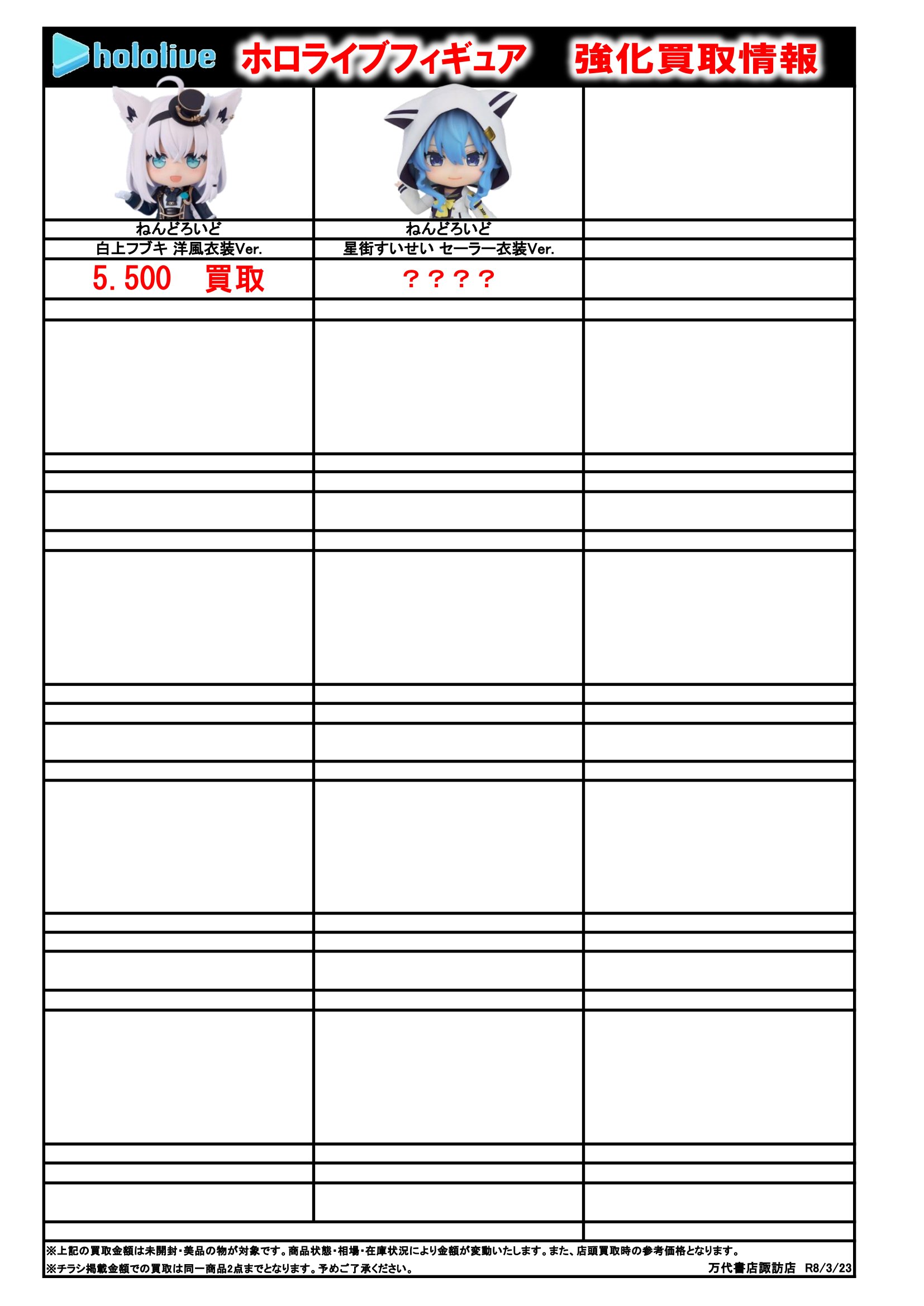 チラシの掲載金額は店頭買取時での参考価格となります。