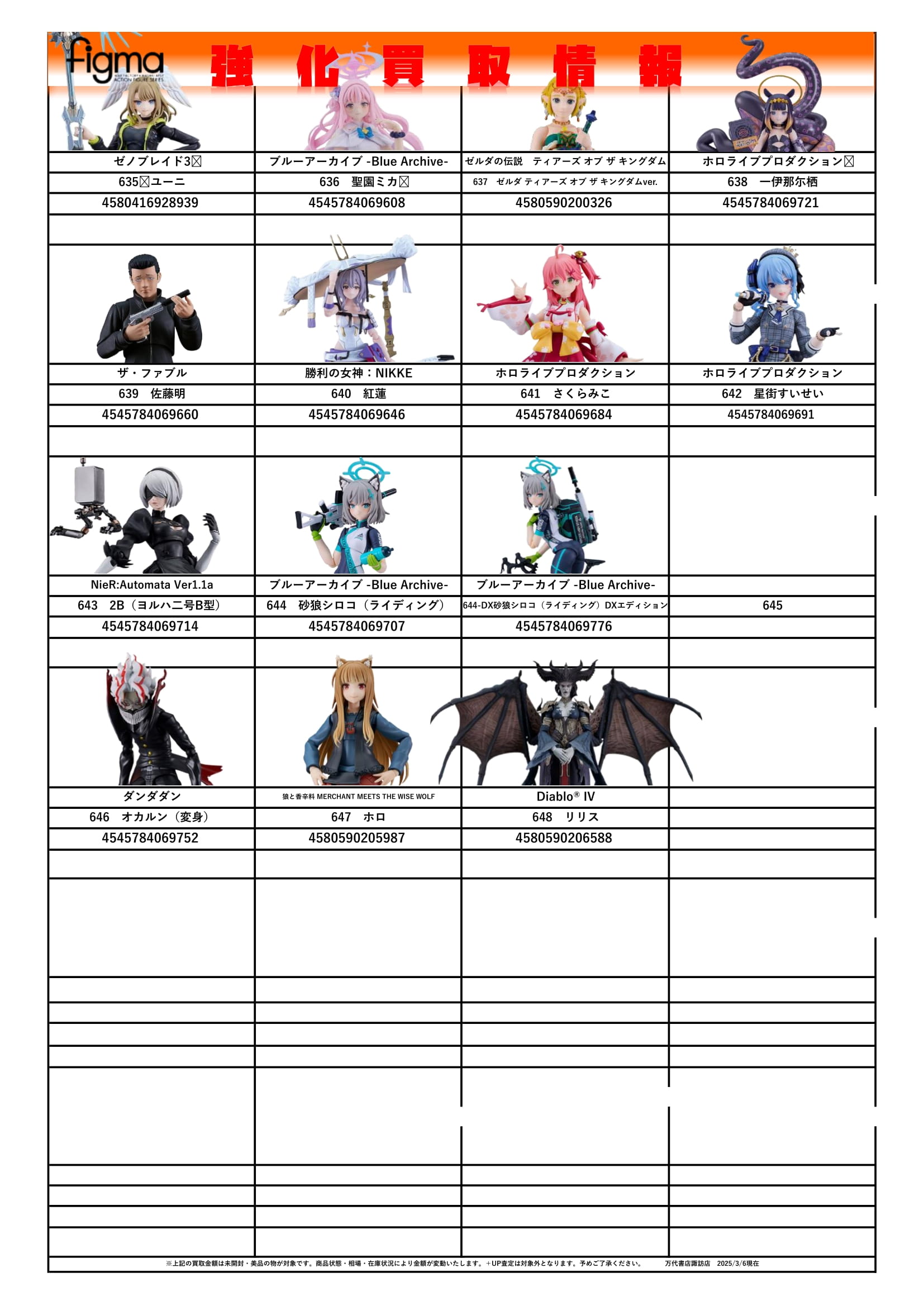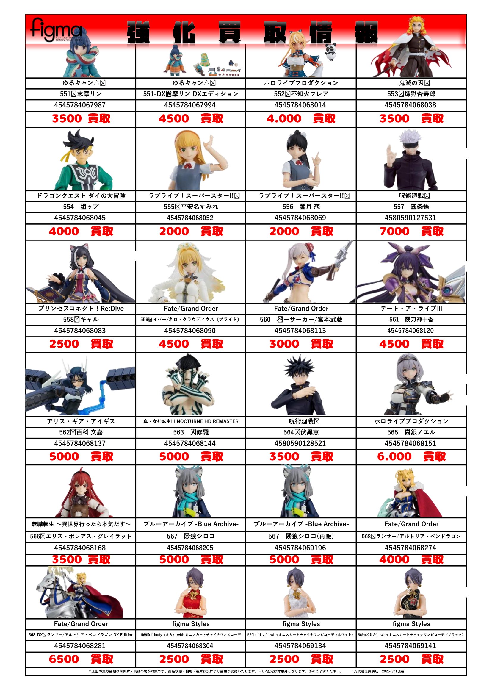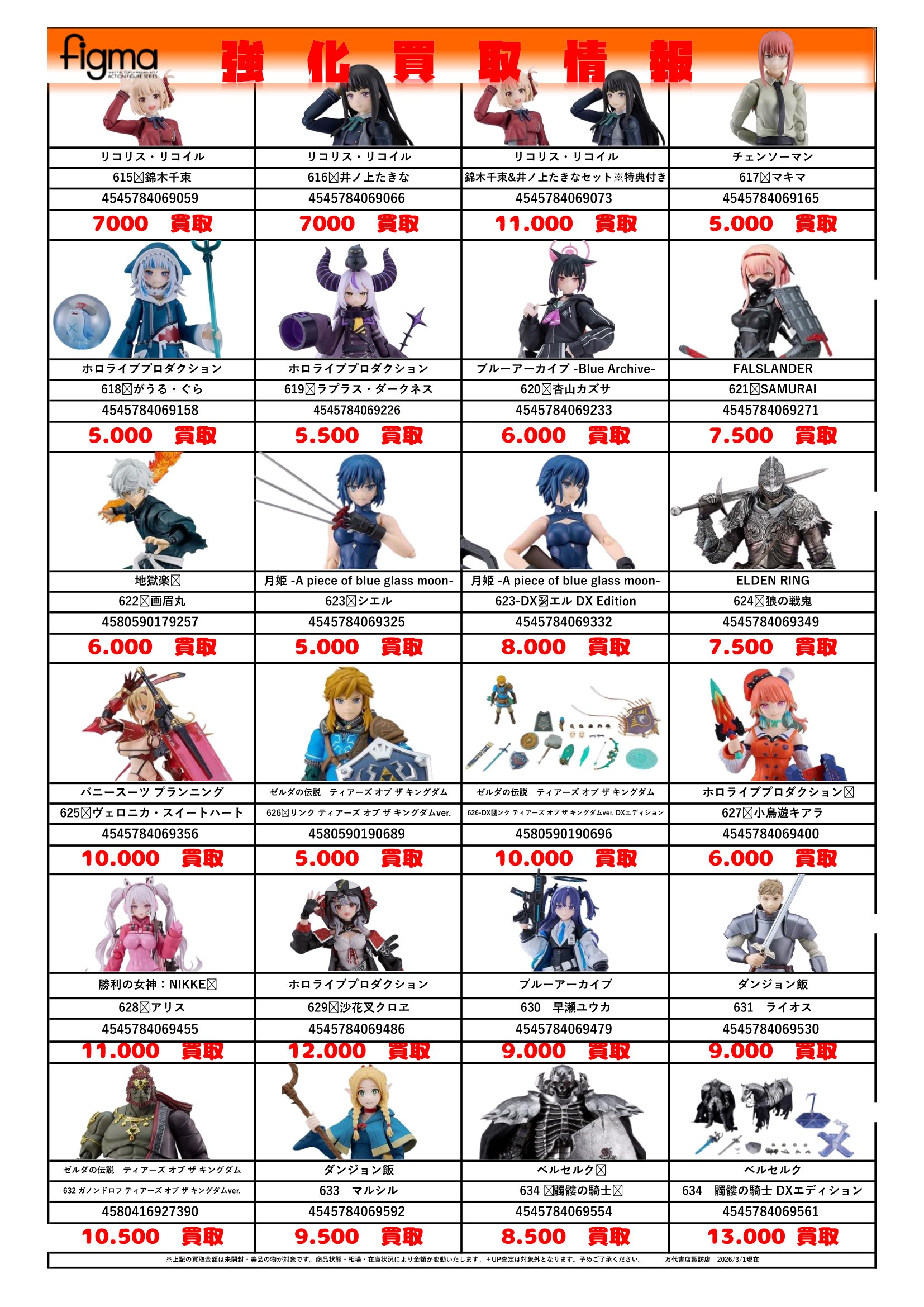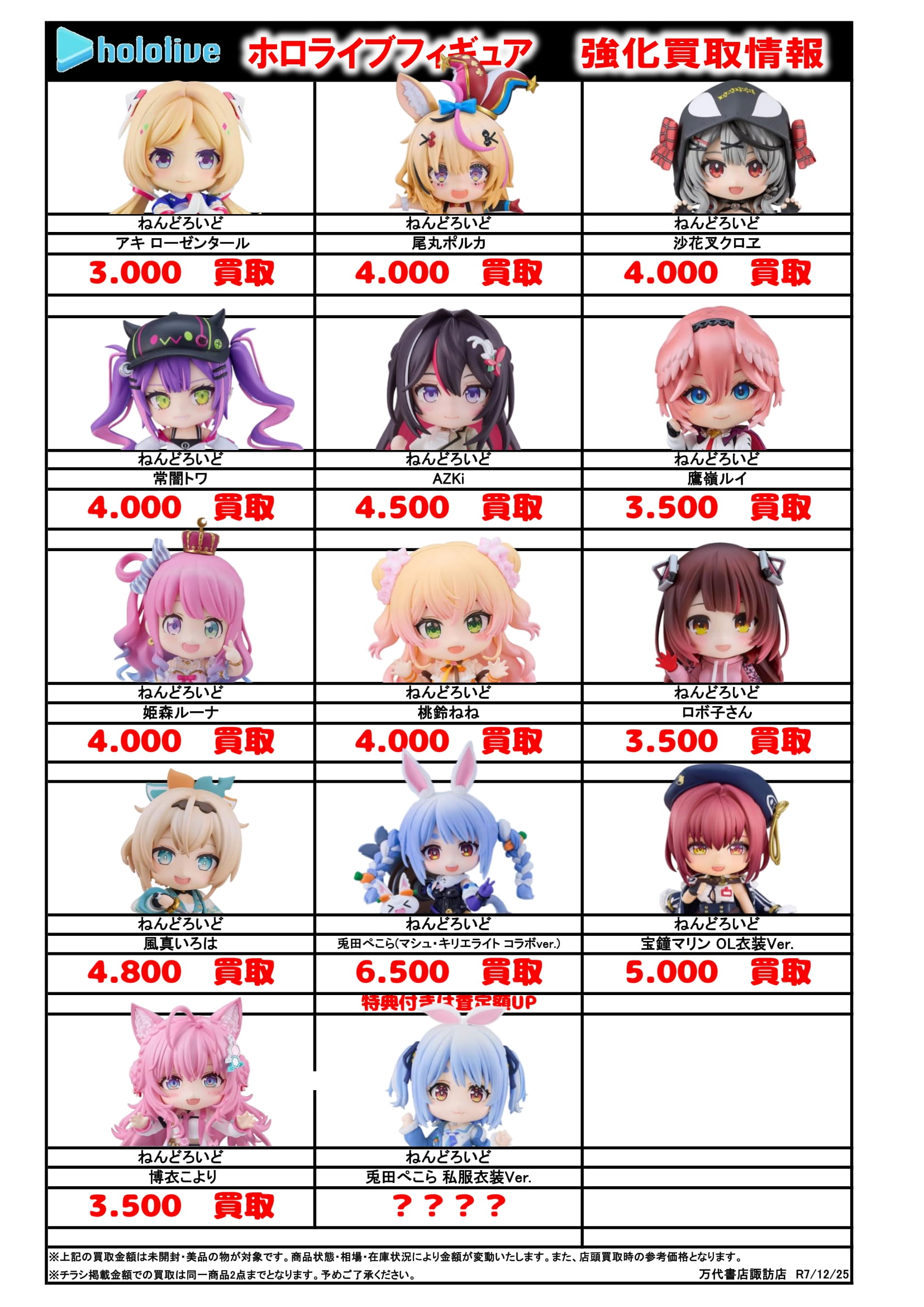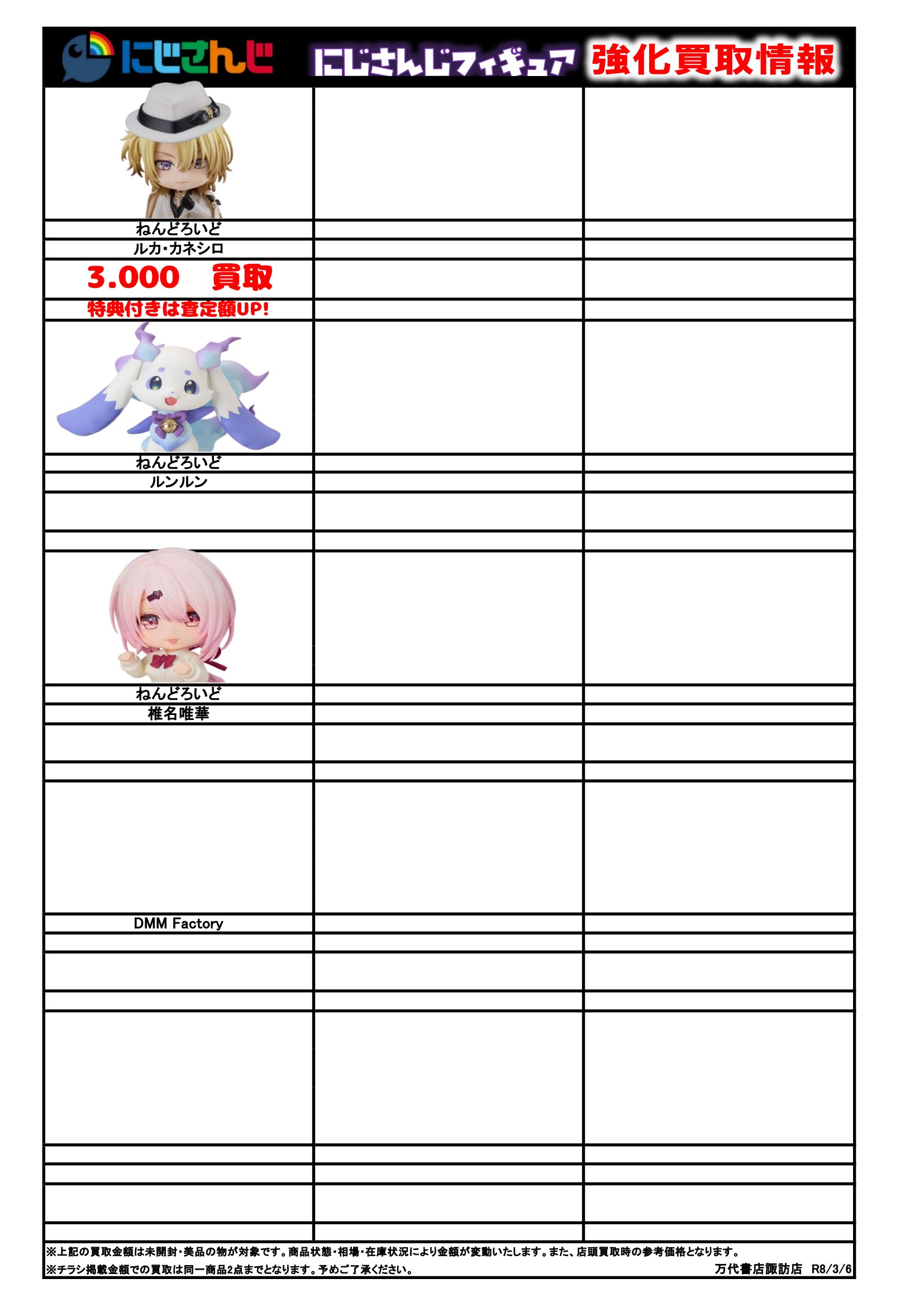 チラシの掲載金額は店頭買取時での参考価格となります。