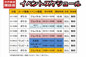 カード担当からお知らせ✉️ 12月のイベントスケジュールになります。 イベント開催日の際は、デュエルスペースのご移動ご協力をお願い致します。 イベント/大会の開催予定や内容は予告無く変更になる…