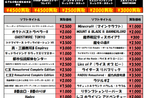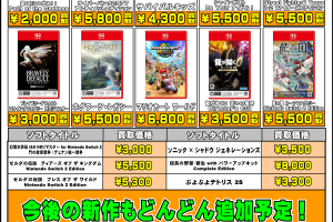【R7.12.24更新】Switch&Switch2ソフト買取告知、掲載中! ※2025/12/25現在の価格となります。 在庫状況・状態によってお値段が変動いたします。予めご了承ください。 **********…