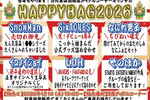 ✅今年もやります‼️万代高崎 アイドルコーナーオリジナルHAPPYBAG2026 SnowManやSixTONESなどの 人気男性アイドルグループの福袋を今年も作っちゃいまし た…