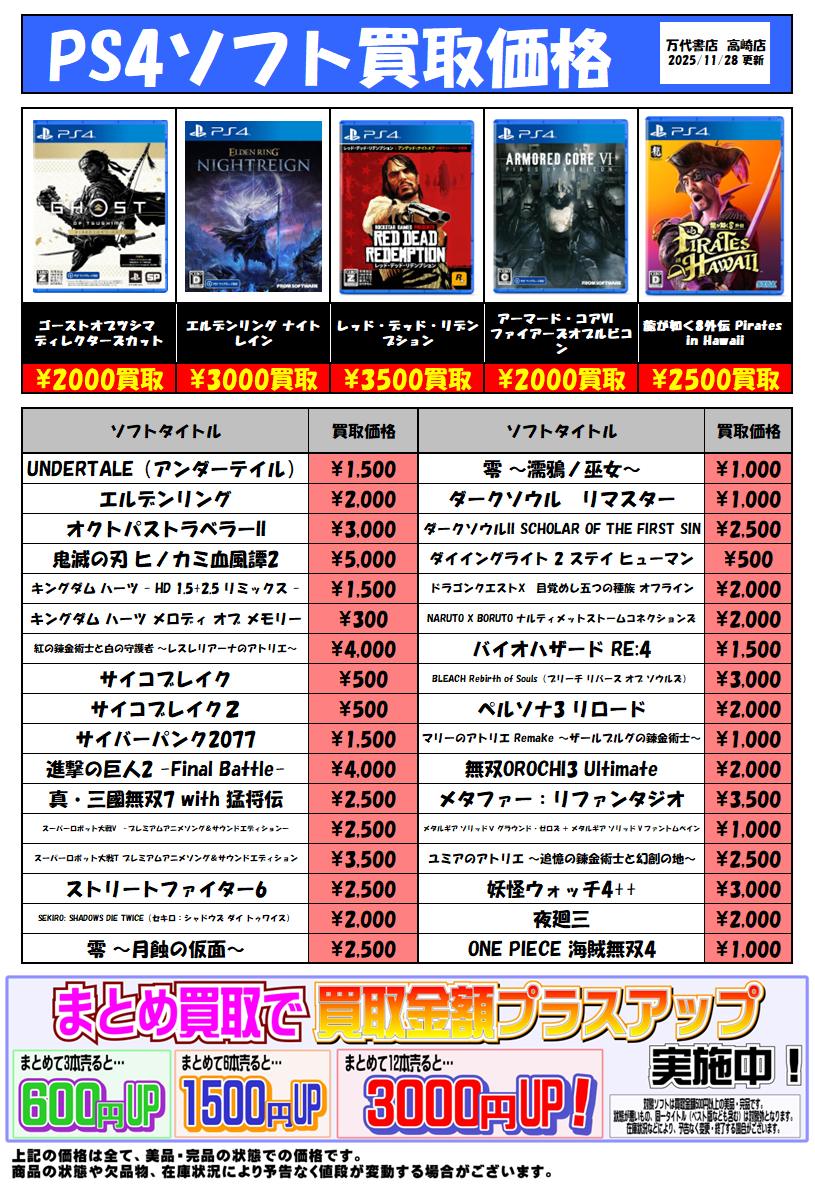 ゲームソフト│PS5・PS4 WEBチラシ 2025/12/5 更新 ゲーム本体各種の買取はこちら! ゲームソフト│Switch・DS系・レトロの買取はこちら! 【PS5】 【PS4】 【プラスアップ】 【宅配買取】