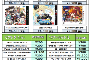 2024.10.17 ゲーム買取 takalab_5 Switchソフト買取告知更新しました! Switchソフト買取告知更新しました! ※2024/10/17現在の価格となります。 在庫状況・状態によってお値段が変動いたします。予めご了承ください。 ⇩その他買取情報はこちら⇩ ★万代書店高崎店WEBチラシ★ ⇩最新のイベント情報はこちら⇩ ★万代書店高崎店イベントカレンダー★ コメントを残す コメントをキャンセルメールアドレスが公開されることはありません。 ※ が付いている欄は必須項目ですコメント ※ 名前 ※ メール ※ サイト 新しいコメントをメールで通知 新しい投稿をメールで受け取る Δ