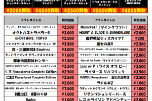 2024.11.21 万代高崎 takalab_6 ◆SONYハード 買取情報◆ ★買取情報★ ※2024/11/21現在の価格となります。 在庫状況・状態によってお値段が変動いたします。予めご了承ください。 ⇩その他買取情報はこちら⇩ ★万代書店高崎店WEBチラシ★ ⇩最新のイベント情報はこちら⇩ ★万代書店高崎店イベントカレンダー★ コメントを残す コメントをキャンセルメールアドレスが公開されることはありません。 ※ が付いている欄は必須項目ですコメント ※ 名前 ※ メール ※ サイト 新しいコメントをメールで通知 新しい投稿をメールで受け取る Δ