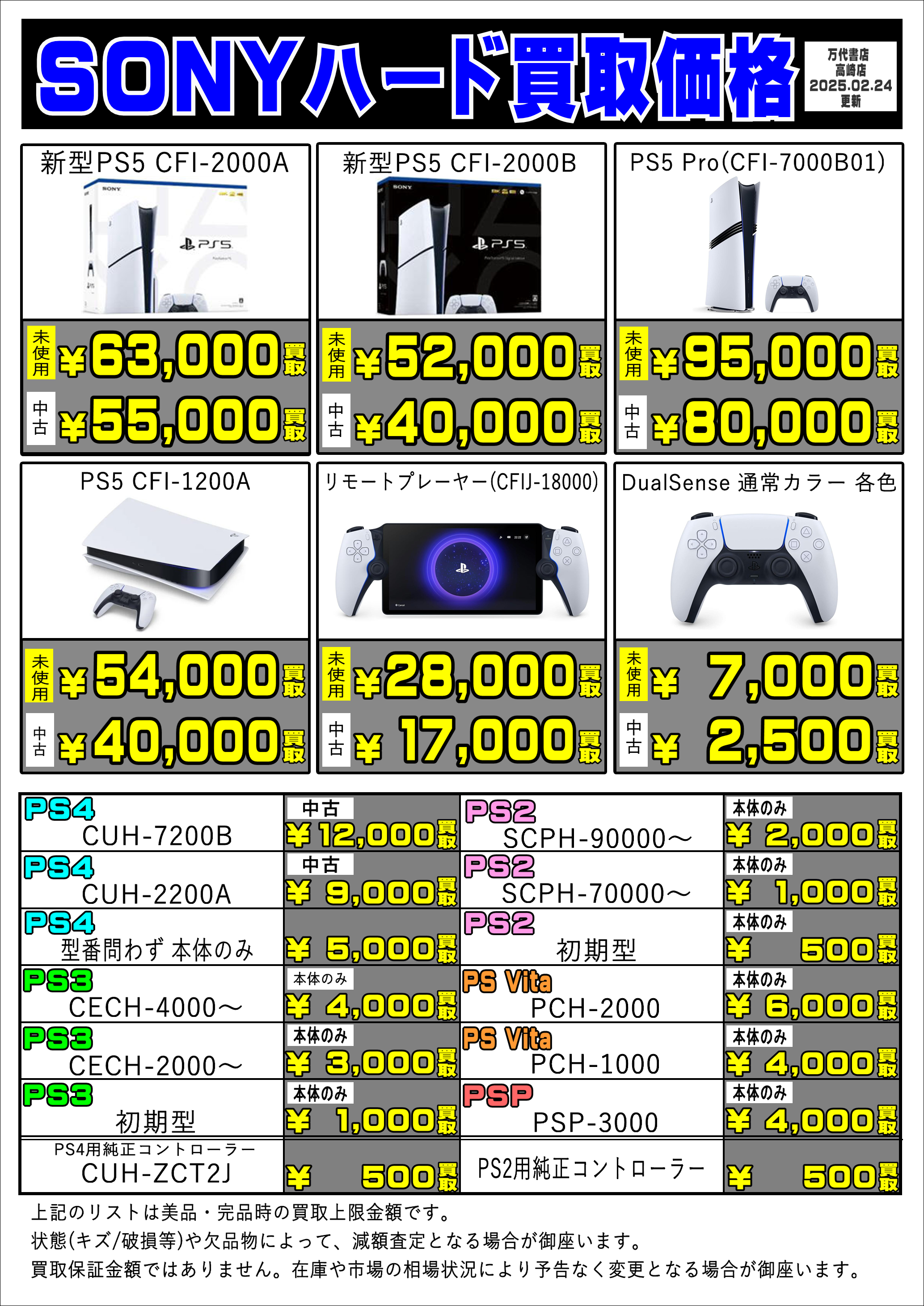 2025.02.25 緊急買取告知! takalab_2 ★ゲームハード買取告知★ ★買取情報★ ※2025/2/25現在の価格となります。 在庫状況・状態によってお値段が変動いたします。予めご了承ください。 ⇩その他買取情報はこちら⇩ ★万代書店高崎店WEBチラシ★ ⇩最新のイベント情報はこちら⇩ ★万代書店高崎店イベントカレンダー★ コメントを残す コメントをキャンセルメールアドレスが公開されることはありません。 ※ が付いている欄は必須項目ですコメント ※ 名前 ※ メール ※ サイト 新しいコメントをメールで通知 新しい投稿をメールで受け取る Δ