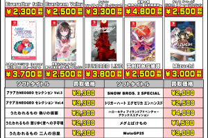 2025.05.01 ゲーム買取 takalab_1 PS5ソフト買取告知更新しました! PS5ソフト買取告知更新しました! ※2025/5/1現在の価格となります。 在庫状況・状態によってお値段が変動いたします。予めご了承ください。 ************************************** ⇩その他買取情報はこちら⇩ ★万代書店高崎店WEBチラシ★ ⇩最新のイベント情報はこちら⇩ ★万代書店高崎店イベントカレンダー★ コメントを残す コメントをキャンセルメールアドレスが公開されることはありません。 ※ が付いている欄は必須項目ですコメント ※ 名前 ※ メール ※ サイト 新しいコメントをメールで通知 新しい投稿をメールで受け取る Δ