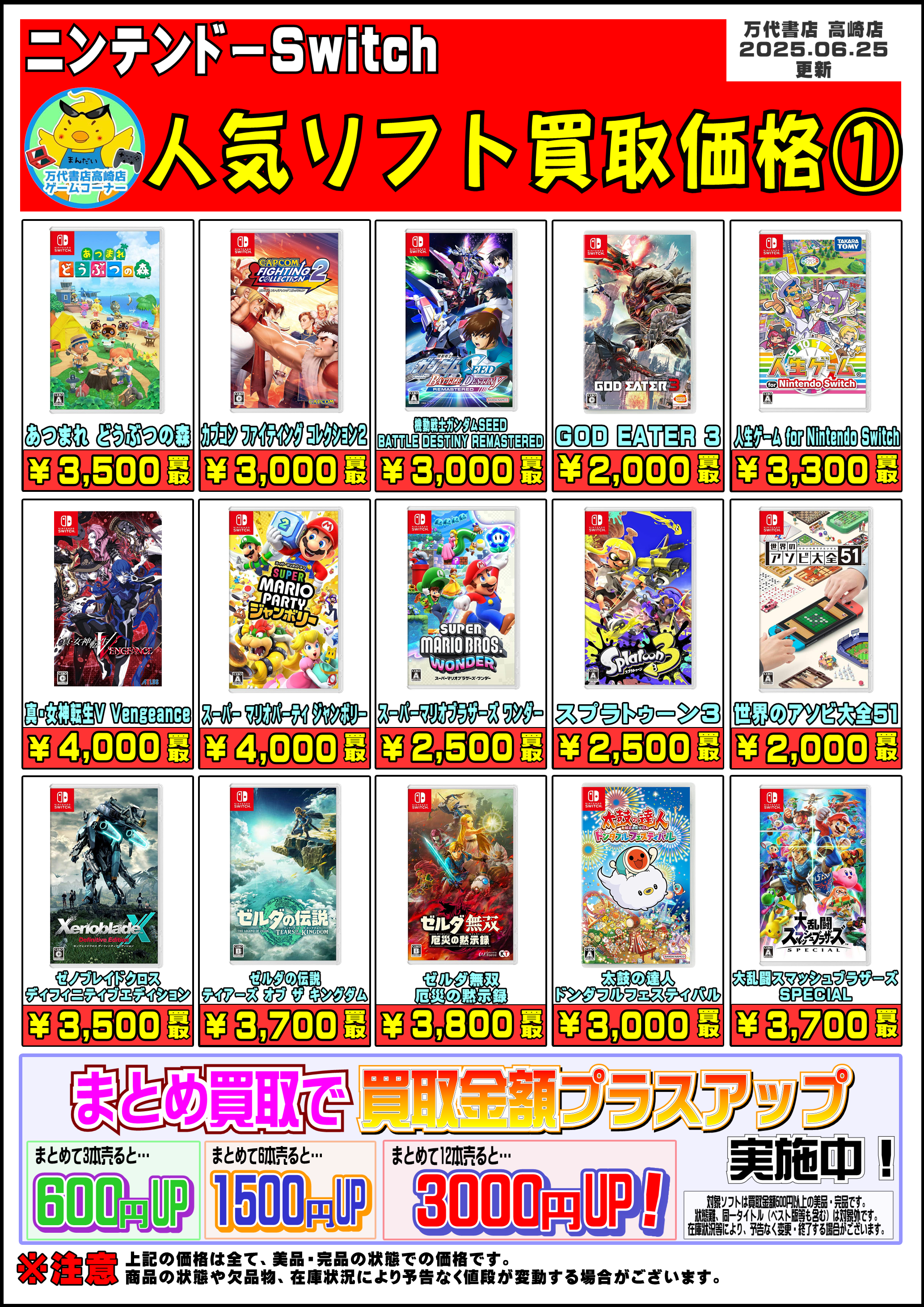 ★【R7.6.25更新】Switch&Switch2ソフト買取告知、掲載中!★