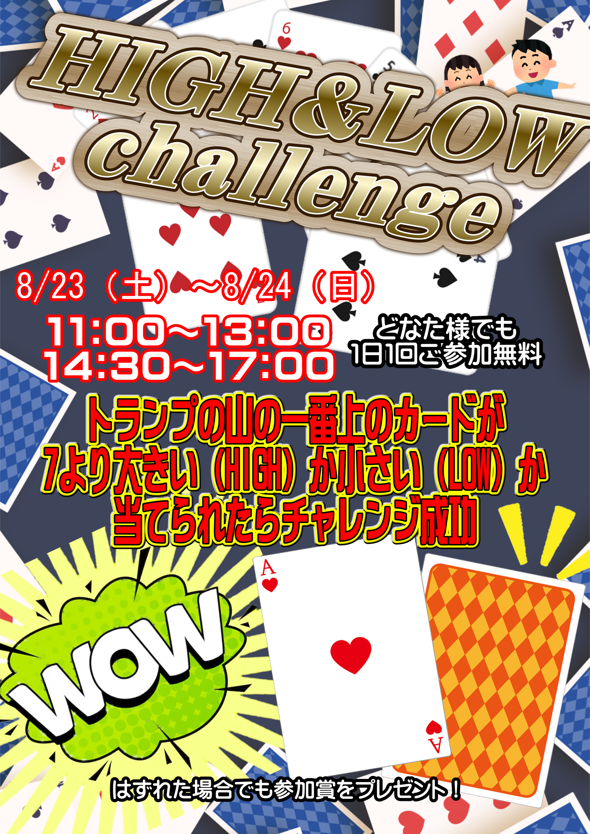 2025.08.19 イベント takalab_2 【イベント情報】トランプHIGH&LOWチャレンジ【8/23(土)・8/24(日)】 今週末は 【トランプHIGH&LOWチャレンジ】開催♠ 開催場所:1階フロア 開催日程:8/23(土)~8/24(日) 11:00~13:00 14:30~17:00 どなた様も1日1回参加無料です!! ぜひぜひ運試ししてみて下さいねー(≧▽≦)! ************************************** ⇩その他買取情報はこちら⇩ ★万代書店高崎店WEBチラシ★ ⇩最新のイベント情報はこちら⇩ ★万代書店高崎店イベントカレンダー★ コメントを残す コメントをキャンセルメールアドレスが公開されることはありません。 ※ が付いている欄は必須項目ですコメント ※ 名前 ※ メール ※ サイト 新しいコメントをメールで通知 新しい投稿をメールで受け取る Δ