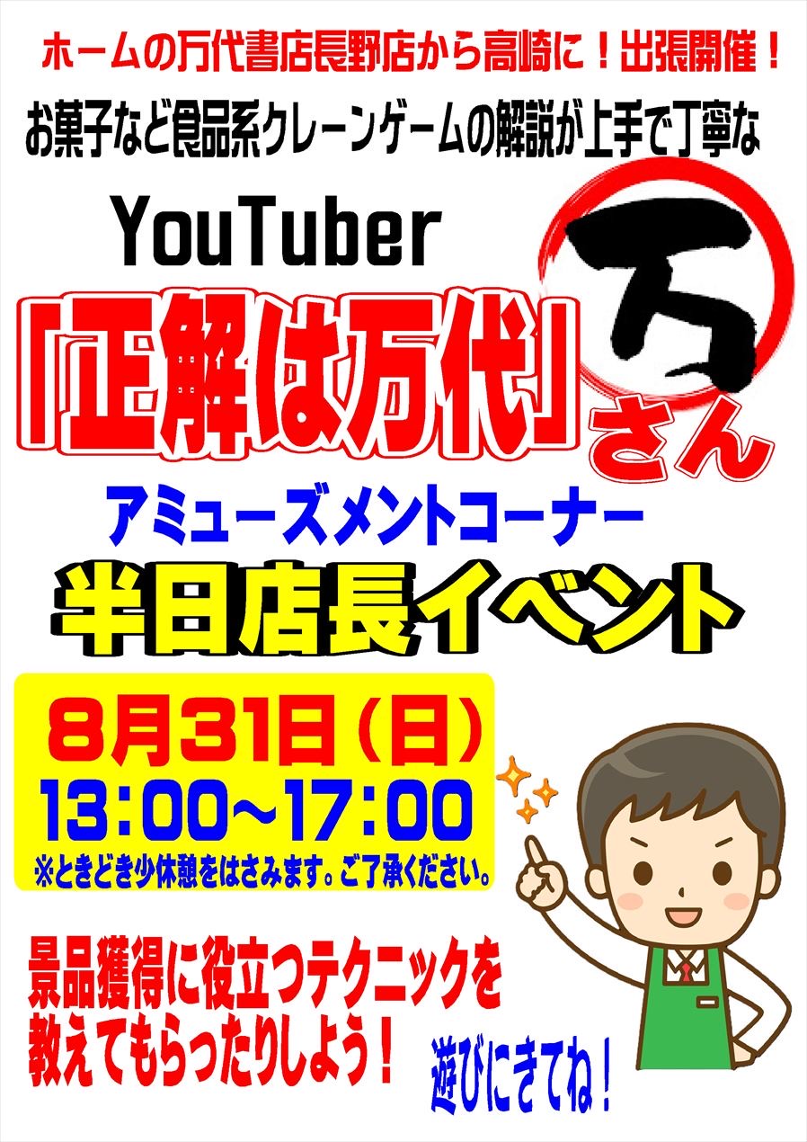 YouTuber「正解は万代」さんが高崎店に半日店長として登場!