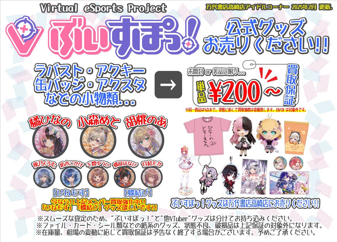 ※ぶいすぽっ!関連グッズはぜひ当店にお持ち込みください。
