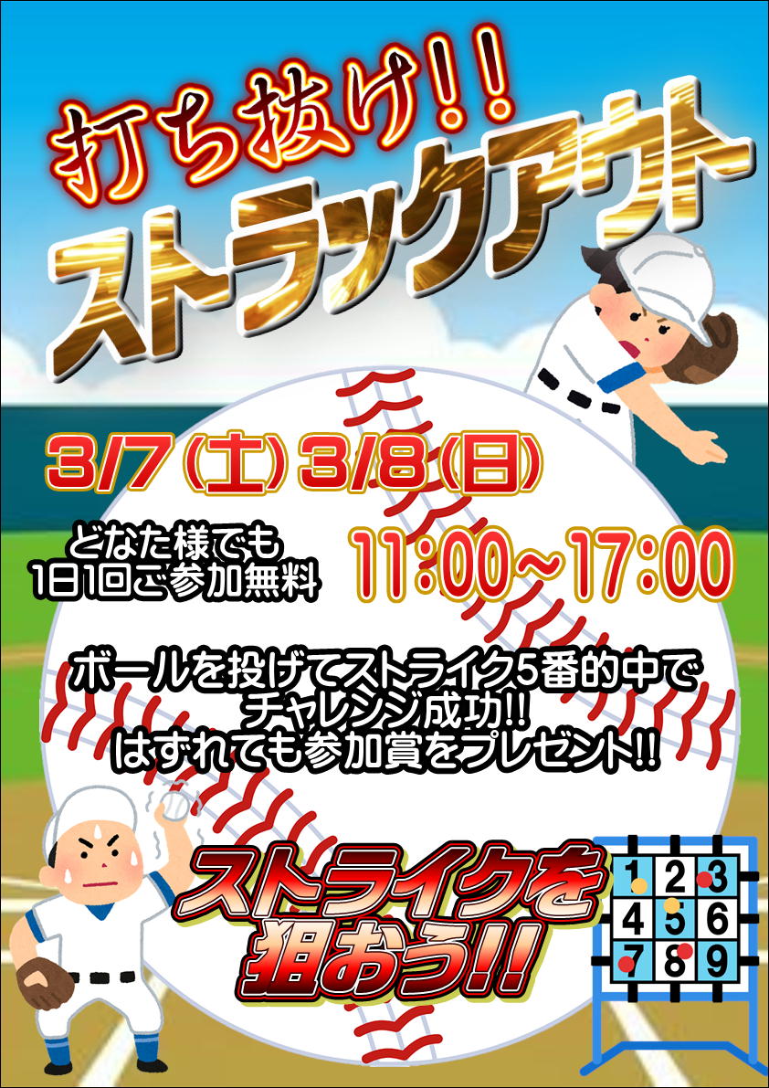 2026.03.04 万代高崎 takalab_6 【イベント情報】打ち抜け!ストラックアウト【3/7(土)・3/8(日)】 今週末のイベントは、 【打ち抜け!ストラックアウト】です!! どなた様も、1日1回ご参加いただけます♪ ※参加無料 週末はぜひぜひ万代書店高崎店へ! ************************************** ⇩その他買取情報はこちら⇩ ★万代書店高崎店WEBチラシ★ ⇩最新のイベント情報はこちら⇩ ★万代書店高崎店イベントカレンダー★ コメントを残す コメントをキャンセルメールアドレスが公開されることはありません。 ※ が付いている欄は必須項目ですコメント ※ 名前 ※ メール ※ サイト 新しいコメントをメールで通知 新しい投稿をメールで受け取る Δ