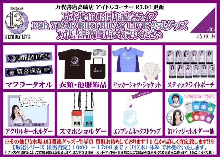 【アイドル】乃木坂46 13周年イベントやります! アイドルコーナーより📢 🎂万代書店高崎店 乃木坂46 13周年イベント🎂 当店アイドルコーナーの生写真自販機で'…