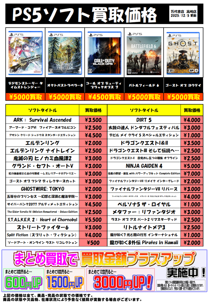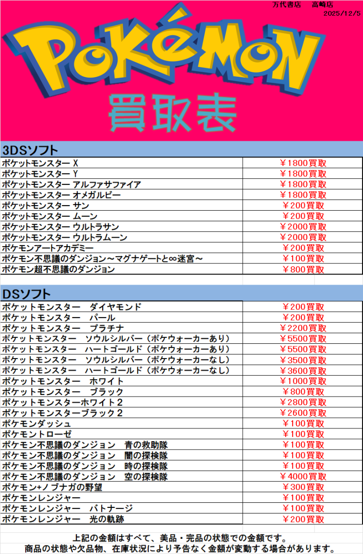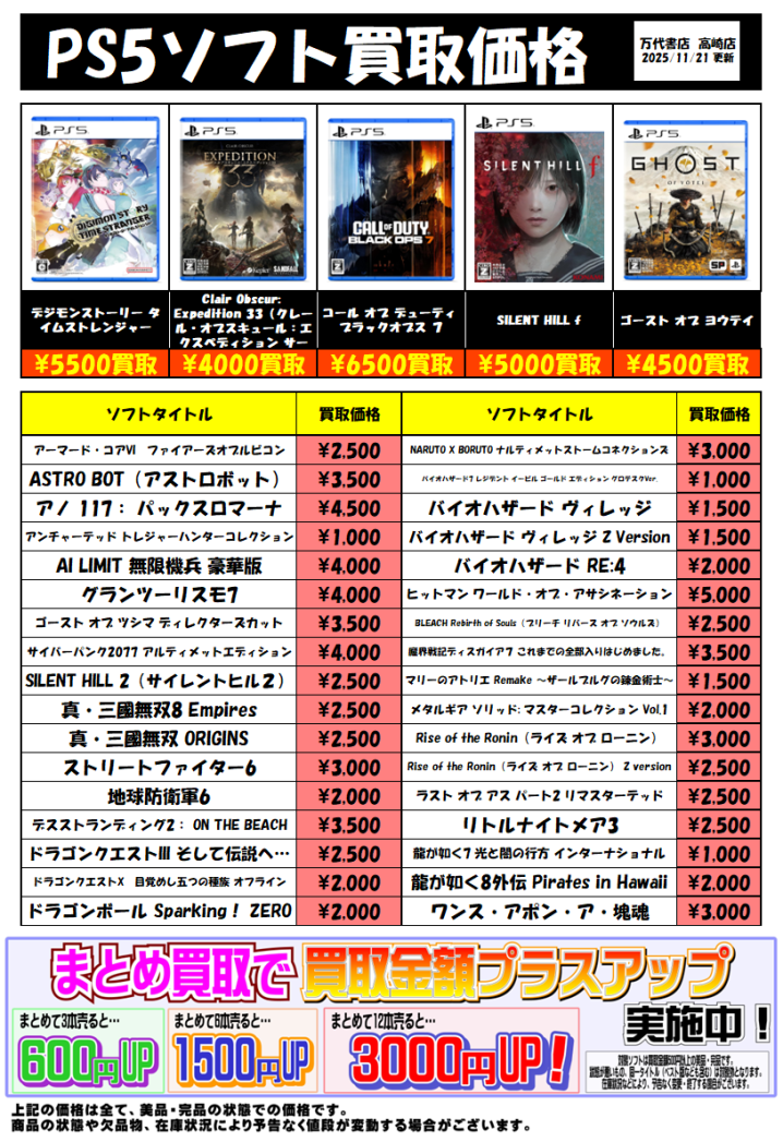 ゲーム買取情報更新📣 ※2025/11/19現在の価格となります。 在庫状況・状態によってお値段が変動いたします。予めご了承ください。 **********************************…