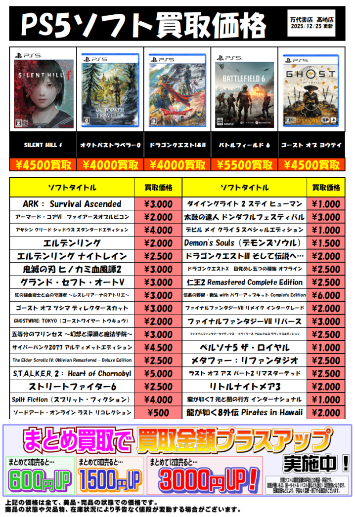 ★PS5ソフト買取告知★