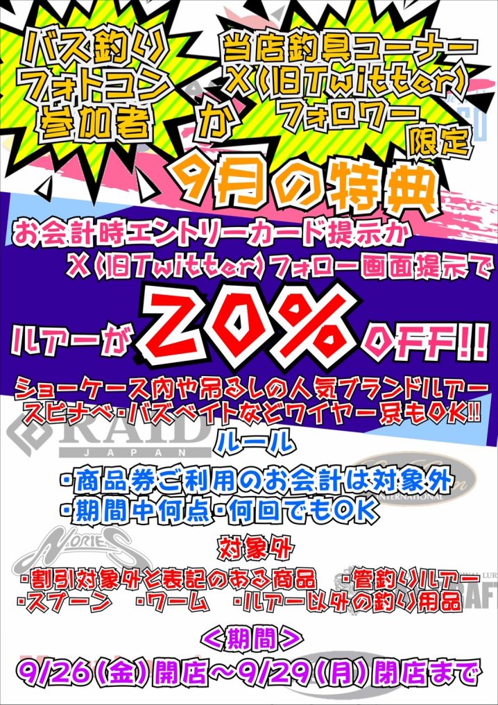 🐟釣具イベント🐟 バス釣りフォトコン参加者&釣具コーナーXフォロワー特典 ルアー20%OFFイベント開催です❗️ バス系ハードプラグを中心にラバージグやワイヤー…