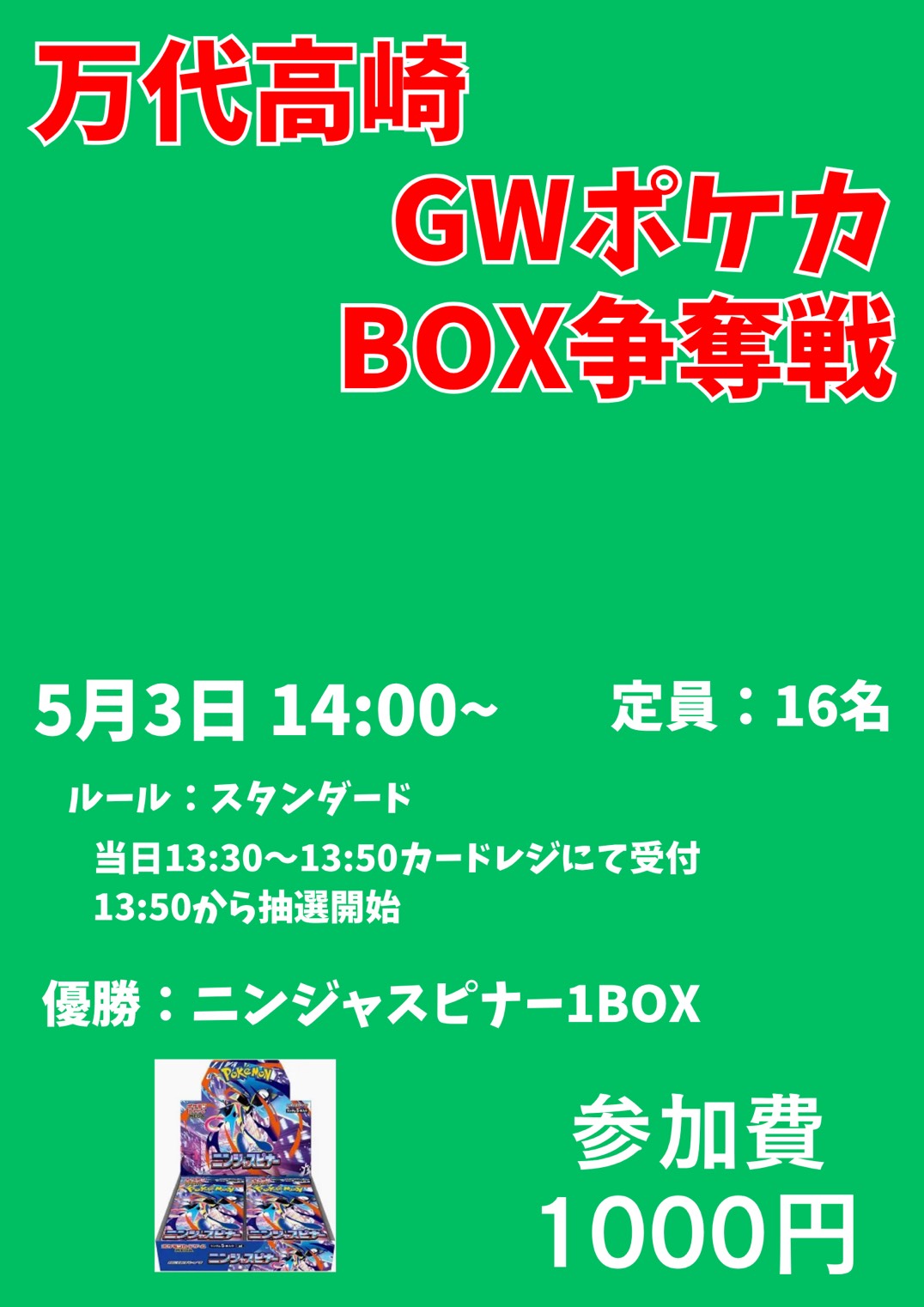 イベントカレンダー タグ CD DVD Blu-ray イベント アジェンダ アジェンダ 日 月 週 4月 – 5月 2026 4月 – 5月 2026 すべて閉じる すべて開く 4月 12 日 スポーツ輪投げ チケット 4月 12 @ 11:00 AM – 5:00 PM 4月 13 月 バス釣りフォトコン2026 チケット 4月 13 終日 4月 14 火 バス釣りフォトコン2026 チケット 4月 14 終日 4月 15 水 バス釣りフォトコン2026 チケット 4月 15 終日 4月 16 木 バス釣りフォトコン2026 チケット 4月 16 終日 4月 17 金 バス釣りフォトコン2026 チケット 4月 17 終日 4月 18 土 バス釣りフォトコン2026 チケット 4月 18 終日 ピッタリ狙え!タイムストップ チケット 4月 18 @ 11:00 AM – 5:00 PM 4月 19 日 バス釣りフォトコン2026 チケット 4月 19 終日 ピッタリ狙え!タイムストップ チケット 4月 19 @ 11:00 AM – 5:00 PM 4月 20 月 バス釣りフォトコン2026 チケット 4月 20 終日 4月 21 火 バス釣りフォトコン2026 チケット 4月 21 終日 4月 22 水 バス釣りフォトコン2026 チケット 4月 22 終日 4月 23 木 バス釣りフォトコン2026 チケット 4月 23 終日 4月 24 金 バス釣りフォトコン2026 チケット 4月 24 終日 4月 25 土 バス釣りフォトコン2026 チケット 4月 25 終日 ジョーカーを引いたら当たり!トランプゲーム チケット 4月 25 @ 11:00 AM – 5:00 PM 4月 26 日 バス釣りフォトコン2026 チケット 4月 26 終日 ジョーカーを引いたら当たり!トランプゲーム チケット 4月 26 @ 11:00 AM – 5:00 PM 4月 27 月 バス釣りフォトコン2026 チケット 4月 27 終日 4月 28 火 バス釣りフォトコン2026 チケット 4月 28 終日 4月 29 水 バス釣りフォトコン2026 チケット 4月 29 終日 セルフビンゴ チケット 4月 29 @ 11:00 AM – 5:00 PM 4月 30 木 バス釣りフォトコン2026 チケット 4月 30 終日 セルフビンゴ チケット 4月 30 @ 11:00 AM – 5:00 PM 5月 1 金 バス釣りフォトコン2026 チケット 5月 1 終日 セルフビンゴ チケット 5月 1 @ 11:00 AM – 5:00 PM 5月 2 土 バス釣りフォトコン2026 チケット 5月 2 終日 5月 3 日 バス釣りフォトコン2026 チケット 5月 3 終日 ■GWポケカbox争奪戦開催■ チケット 5月 3 @ 2:00 PM 開催日時:5月3日(日)14:00〜 定員:16名 4月 – 5月 2026 4月 – 5月 2026 購読 Timely カレンダーに追加 Google に追加 Outlook に追加 Apple カレンダーに追加 他のカレンダーに追加 XML ファイルとしてエクスポート