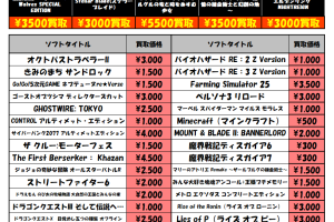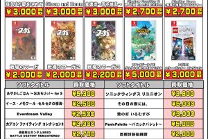 【R7.12.3更新】Switch&Switch2ソフト買取告知、掲載中! ※2025/12/4現在の価格となります。 在庫状況・状態によってお値段が変動いたします。予めご了承ください。 ************…