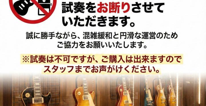 楽器コーナーからお知らせ。 12/30~1/12までショーケース内のエフェクター・ギター類の試奏をお断りさせていただきます。
