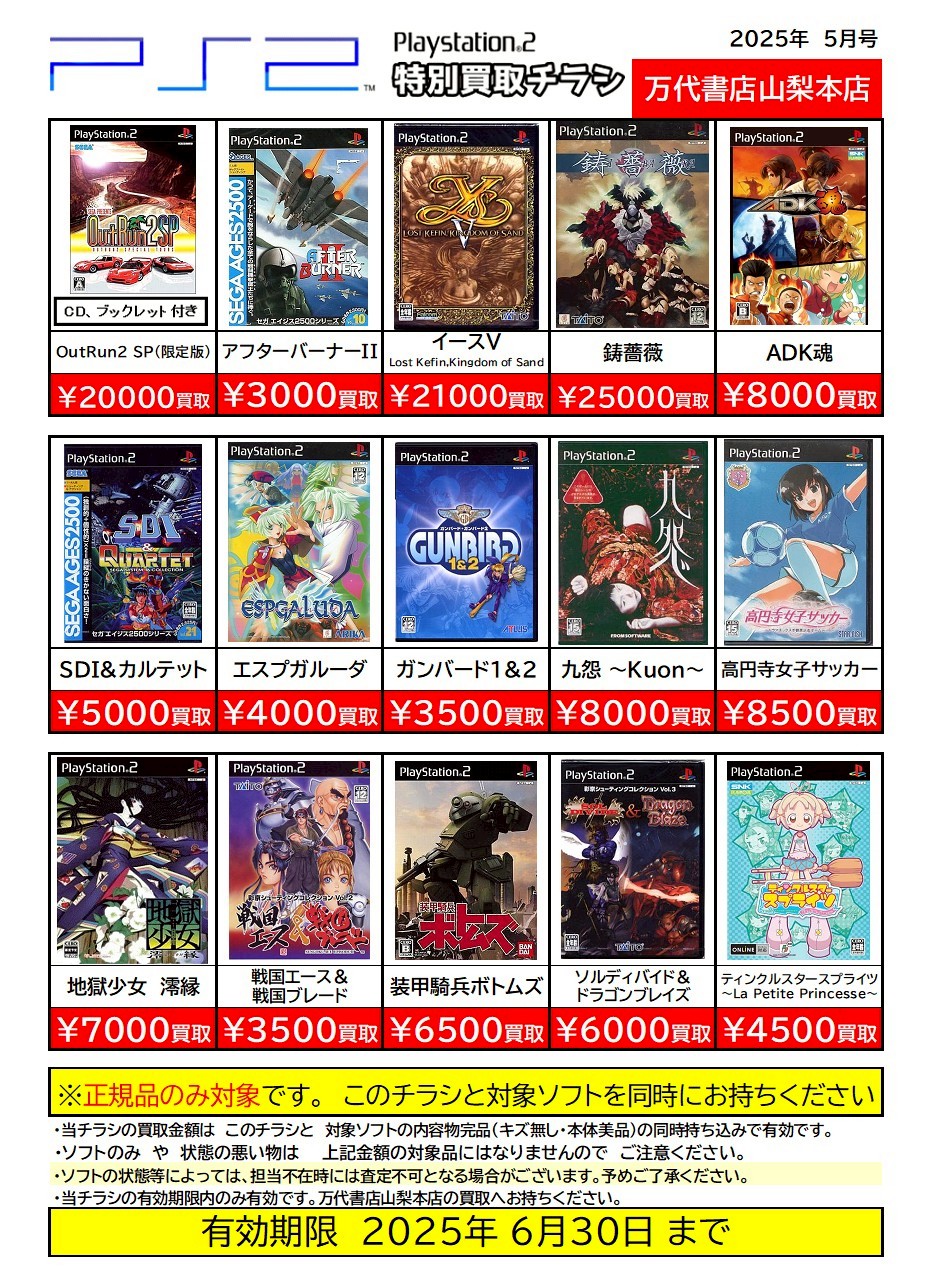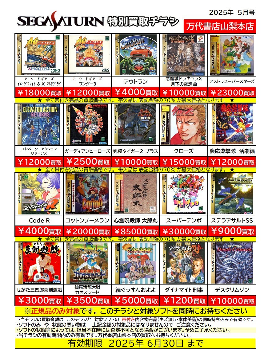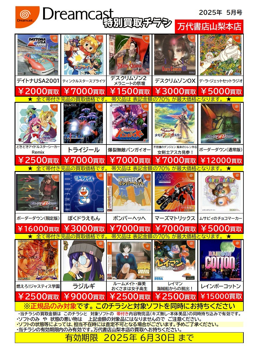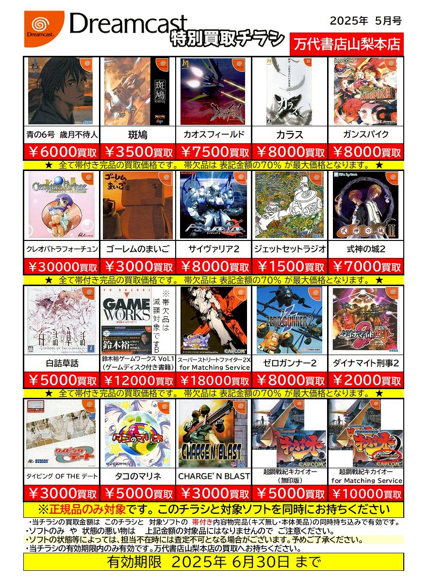 ※チラシとソフトの同時持ち込みでないと表記の金額での買取ができない場合がございますのでご注意ください