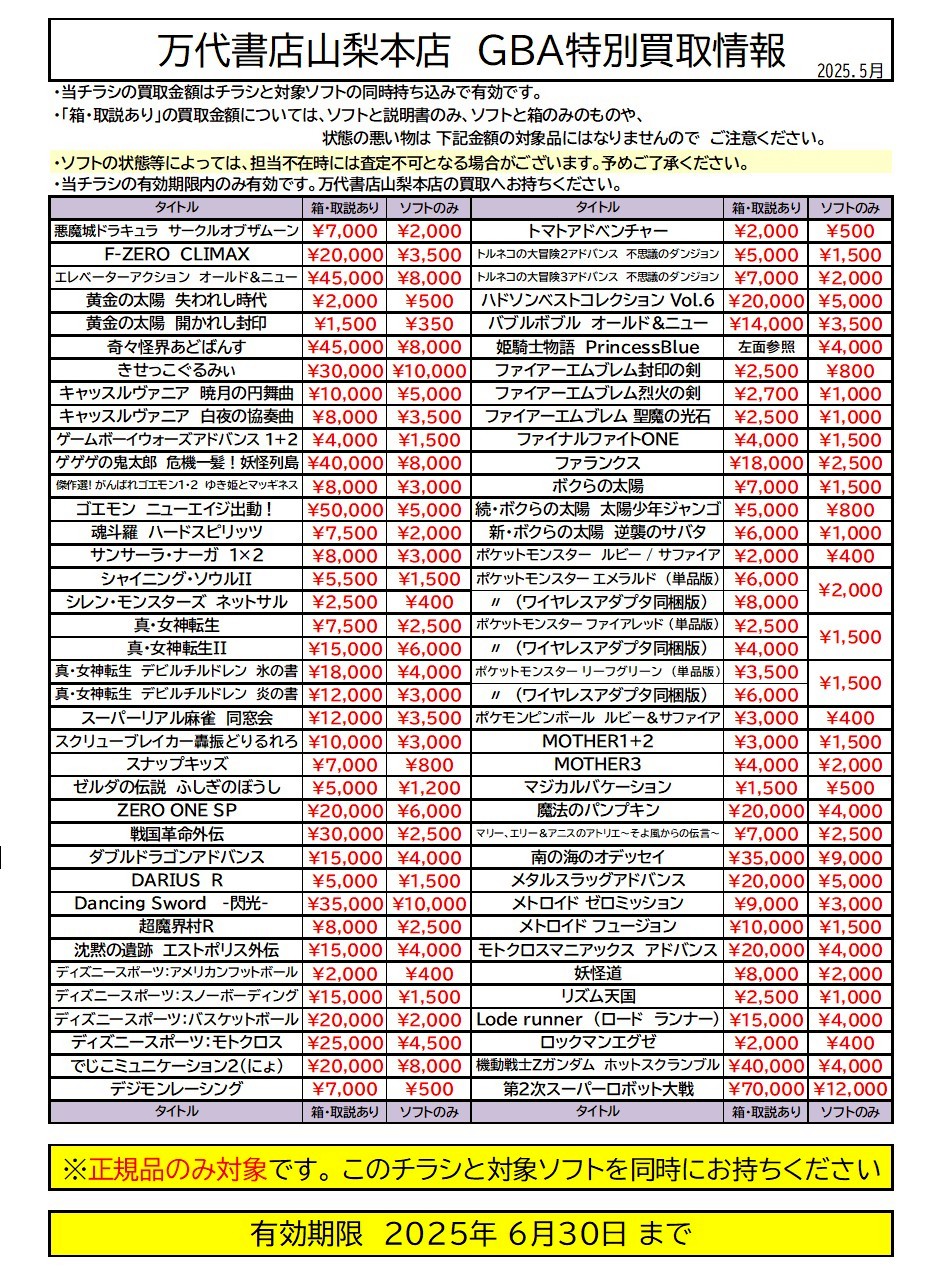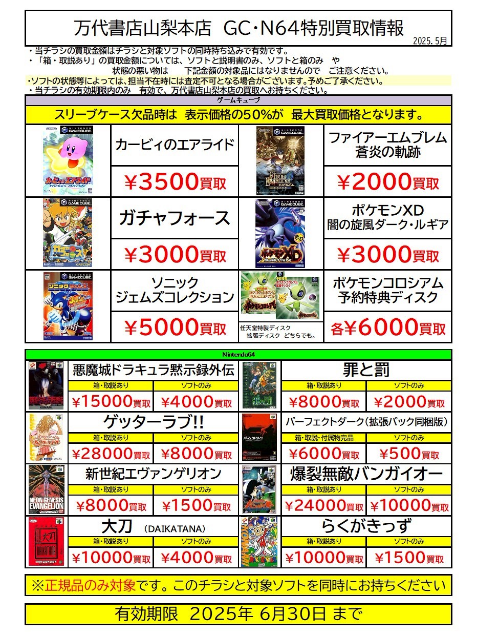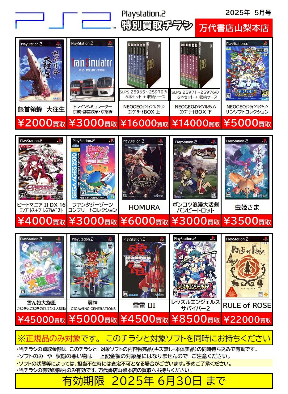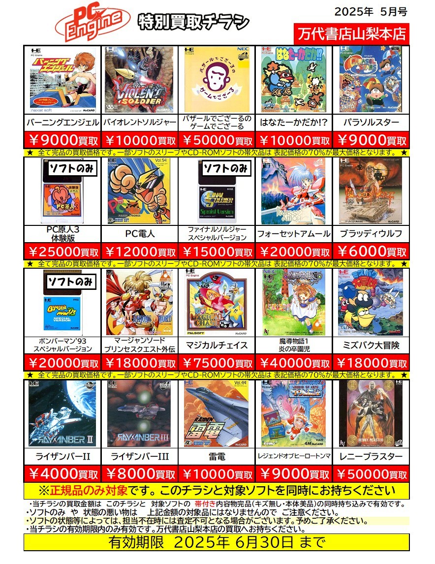 ※チラシとソフトの同時持ち込みでないと表記の金額での買取ができない場合がございますのでご注意ください