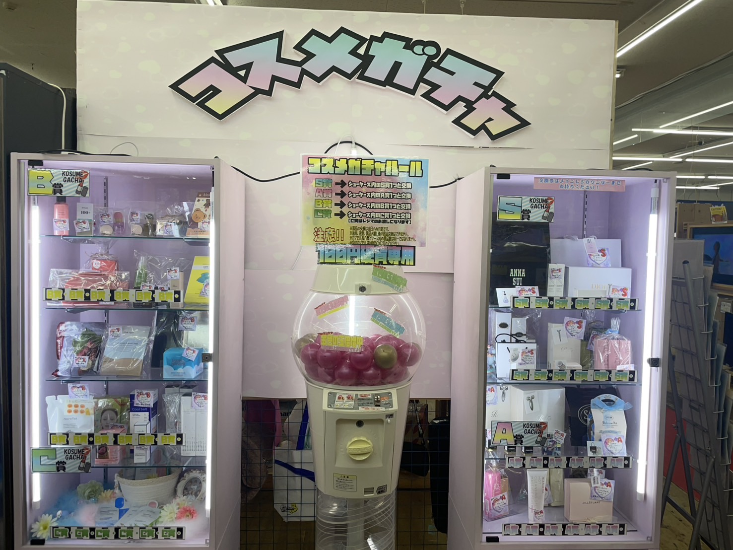 2025.07.03 ガチャ takalab_6 ★コスメガチャ 上位賞続々出てまーす!★ CD&DVDコーナーより 大人気コスメガチャ!! 上位賞続々出てまーす 景品も新に追加しております♪ DIORやCHANEL、ANNA SUI、人気のリファ、韓国、中国コスメやスキンケア用品など取り揃えておりますのでご来店の際はチェックお願いします♪ 場所はアイドルグッズコーナー隣です ご来店お待ちしております♪
