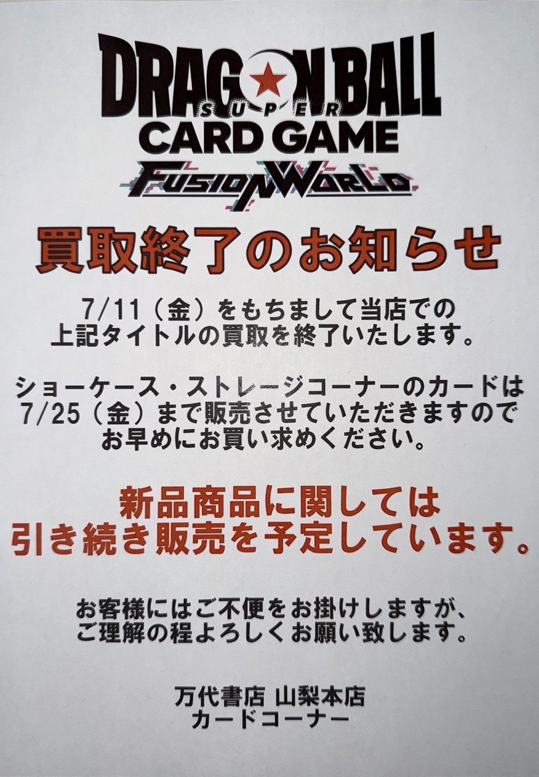2025.07.10 お知らせ takalab_2 【重要】ドラゴンボールスーパーカードゲーム フュージョンワールドについてお知らせ【重要】 ★カードコーナーより★ ドラゴンボールスーパーカードゲーム フュージョンワールドについてお知らせです。