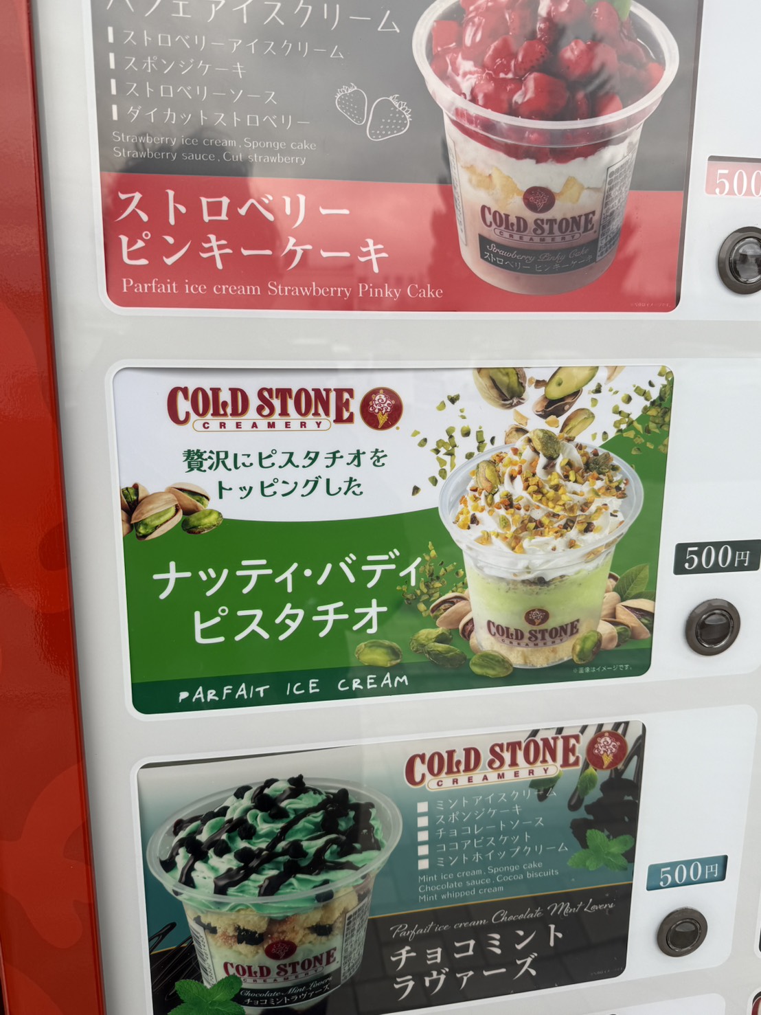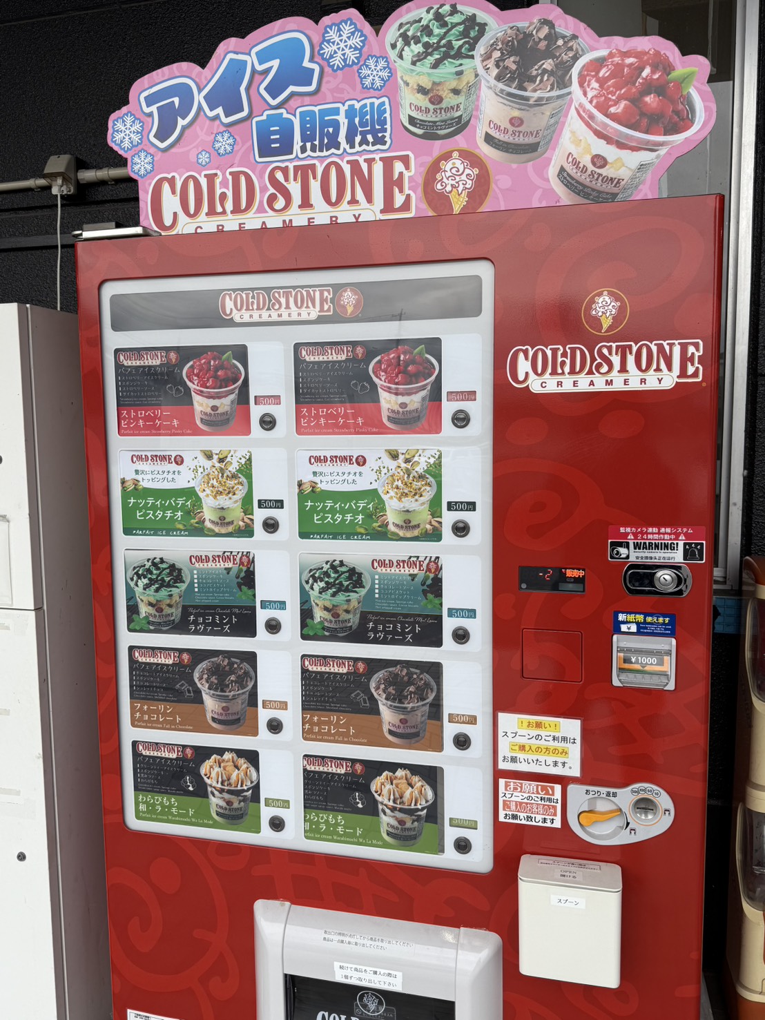 2025.12.20 お知らせ takalab_2 ■ゴールドストーンのアイスあります‼■ ゴールドストーンのアイスあります‼ ご好評いただいておりますゴールドストーンクリーマリーのアイス自販機にピスタチオ味が仲間入りしました‼ もちろん定番のストロベリー・チョコ・チョコミントなどもありますので是非ご賞味ください‼