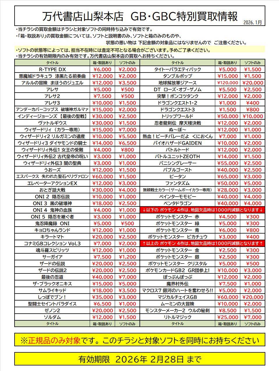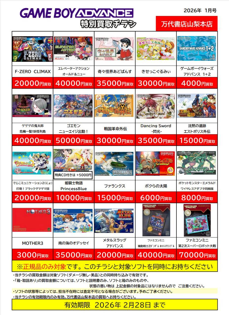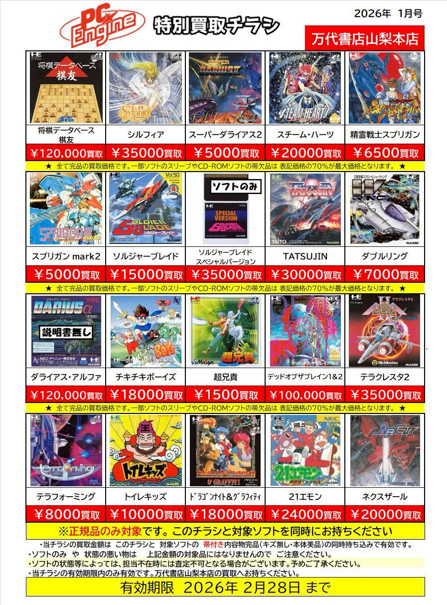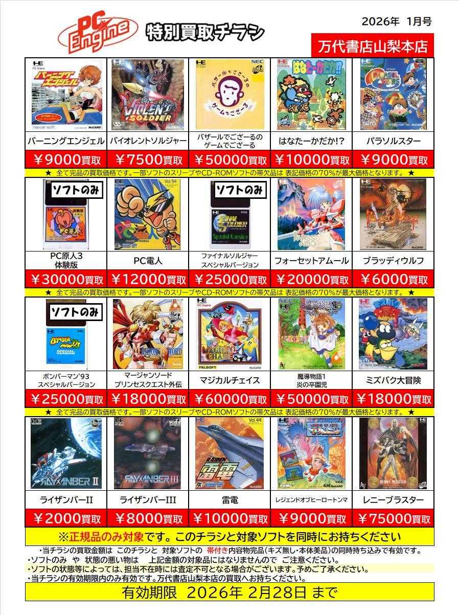 ※チラシとソフトの同時持ち込みでないと表記の金額での買取ができない場合がございますのでご注意ください