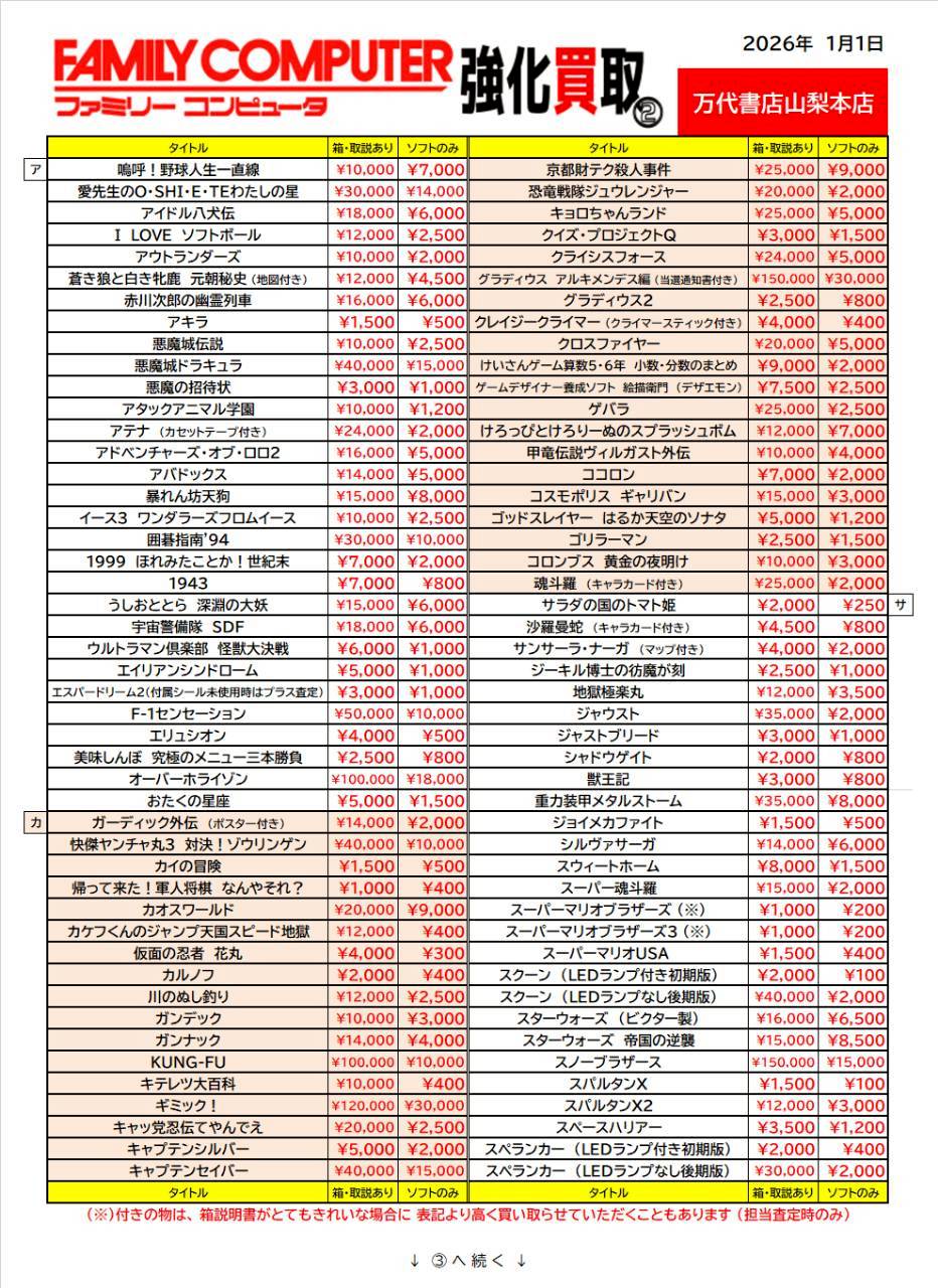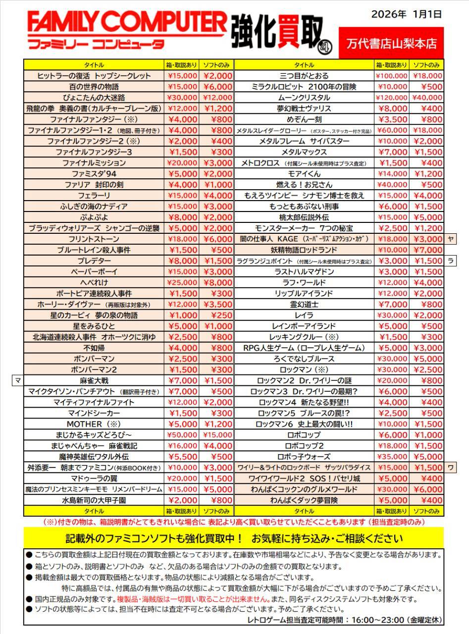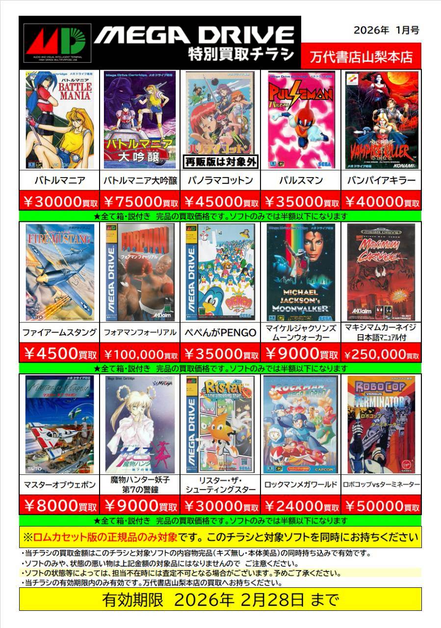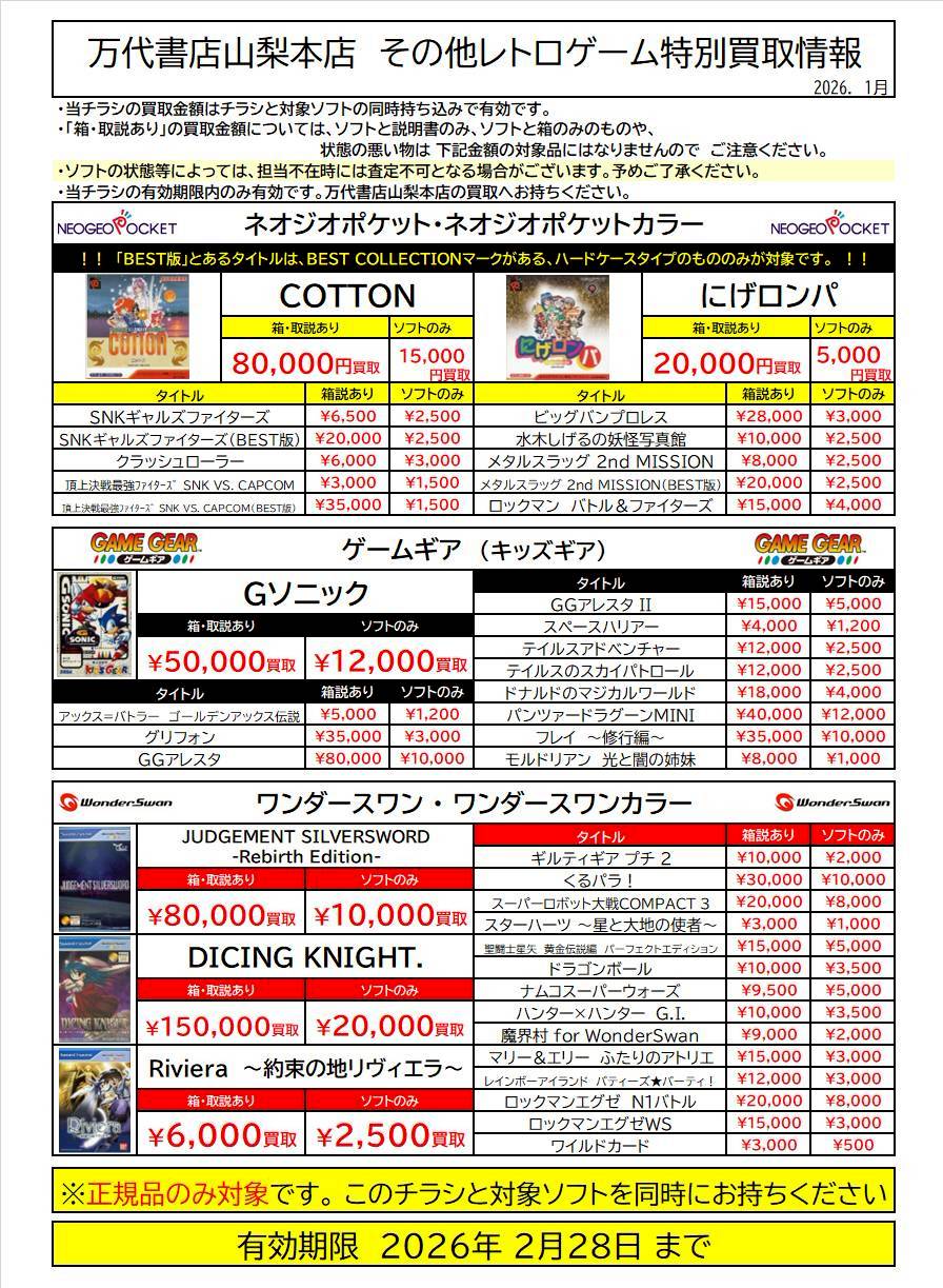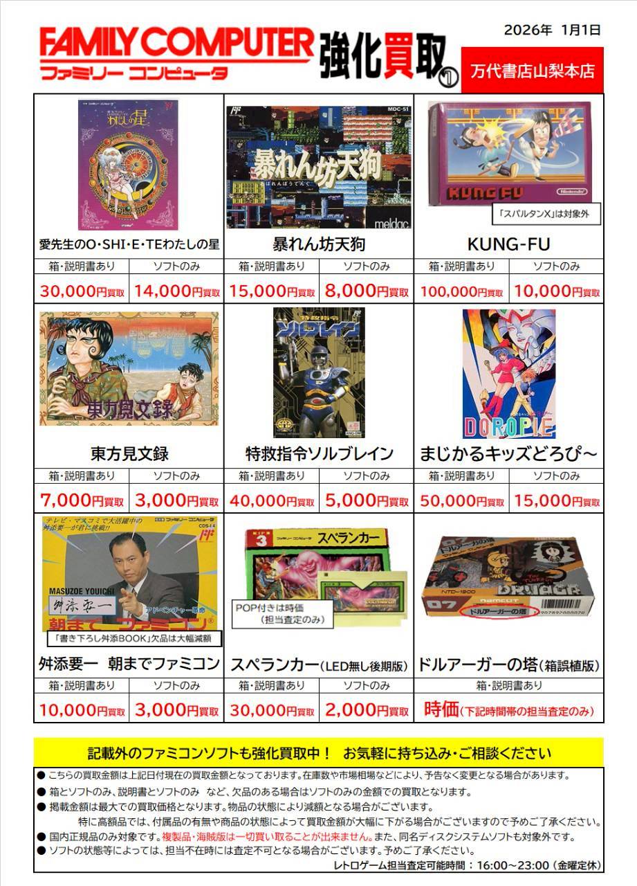 レトロゲーム特別買取チラシ更新しました!!