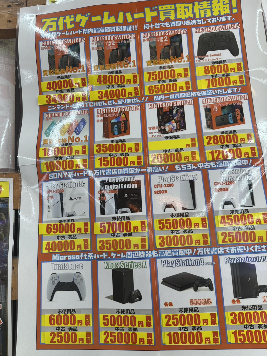 2026.03.16 買取告知 takalab_6 ゲームハード 買取金額です! ゲームより 本日のゲームハードの買取金額になります。 県内最高値買取保証! 何台でも買取致します! お持ち込みお待ちしております。 ※状態により上記の金額で買取出来ない場合もございます。 ご了承ください。 ※2026/3/16現在の価格となります。 在庫状況・状態によってお値段が変動いたします。 **************** こちら↓もぜひチェックしてみてくださいね♪(*´▽`*) ・最新のイベント情報はこちら ・最新の買取情報はこちら