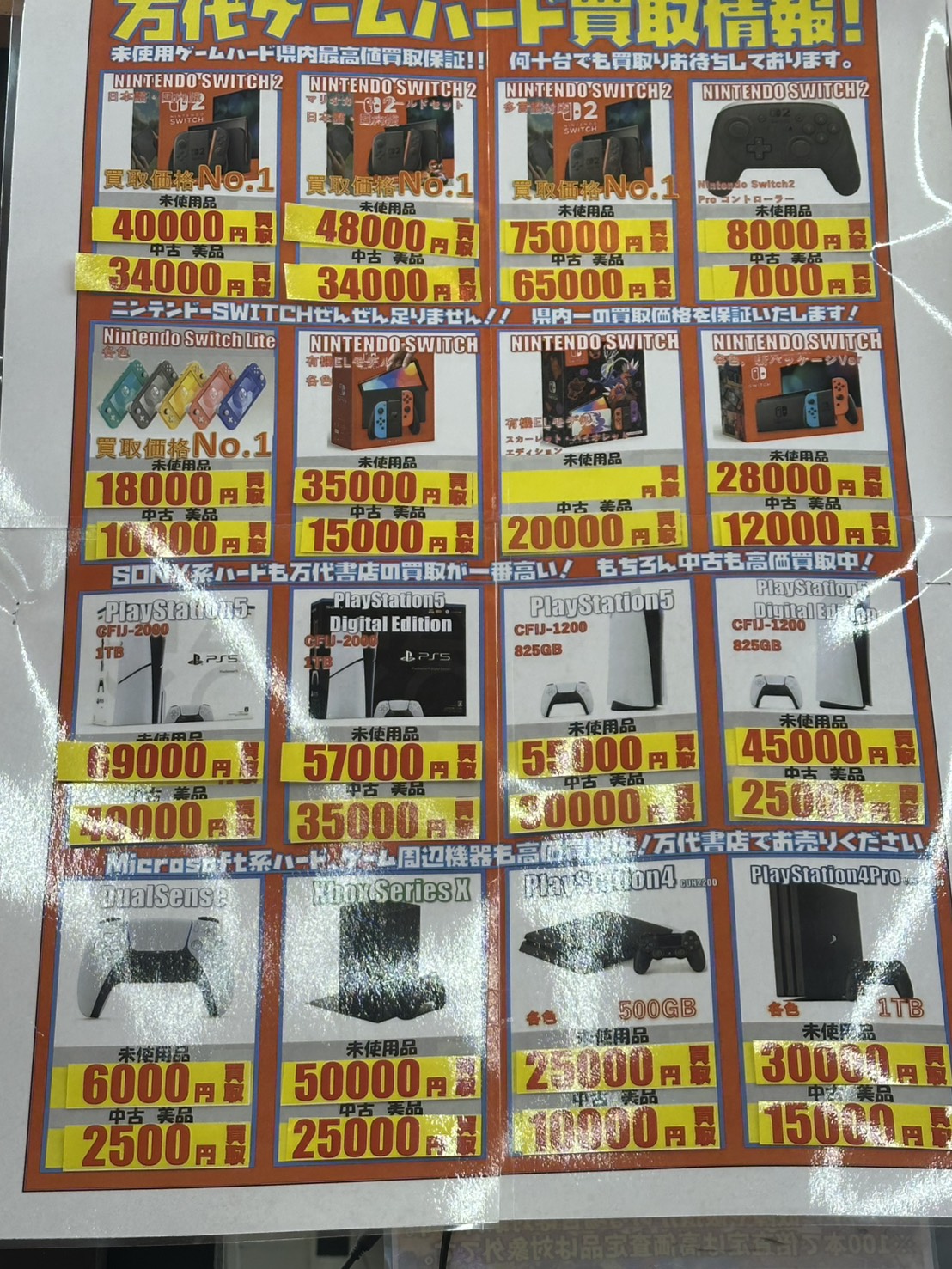 2026.03.21 買取告知 takalab_5 ■本日のゲームハードの買取金額になります。■ ゲームより 本日のゲームハードの買取金額になります。 県内最高値買取保証! 何台でも買取致します! お持ち込みお待ちしております。 ※状態により上記の金額で買取出来ない場合もございます。 ※2026/3/21現在の価格となります。 在庫状況・状態によってお値段が変動いたします。予めご了承ください。 **************** こちら↓もぜひチェックしてみてくださいね♪(*´▽`*) ・最新のイベント情報はこちら ・最新の買取情報はこちら