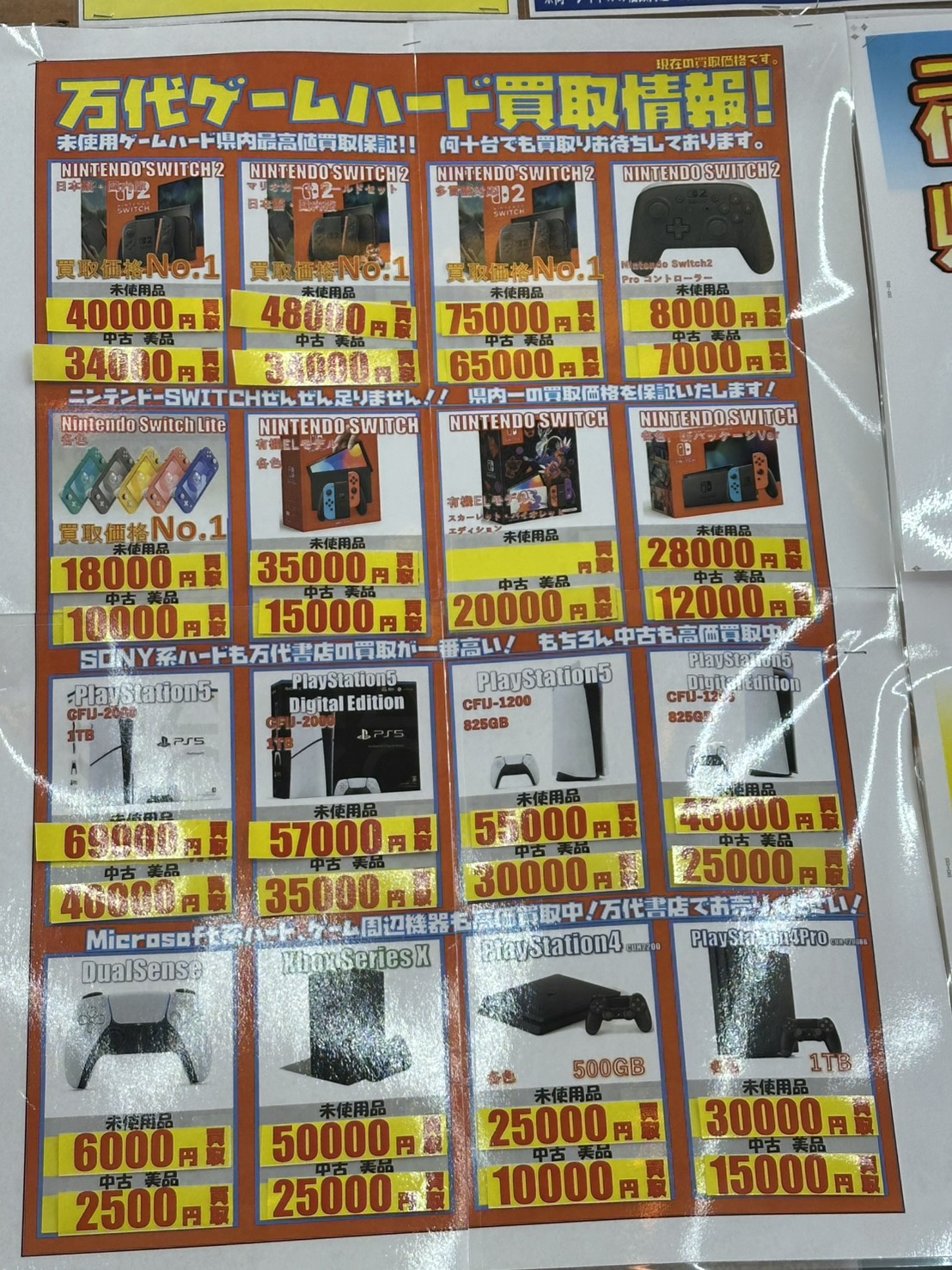 2026.03.28 買取告知 takalab_5 【3/28】本日のゲームハード 買取金額 ゲームより 本日のゲームハードの買取金額になります。 県内最高値買取保証! 何台でも買取致します! お持ち込みお待ちしております。 ※状態により上記の金額で買取出来ない場合もございます。 ご了承ください。 ※2026/3/28現在の価格となります。 在庫状況・状態によってお値段が変動いたします。 **************** こちら↓もぜひチェックしてみてくださいね♪(*´▽`*) ・最新のイベント情報はこちら ・最新の買取情報はこちら
