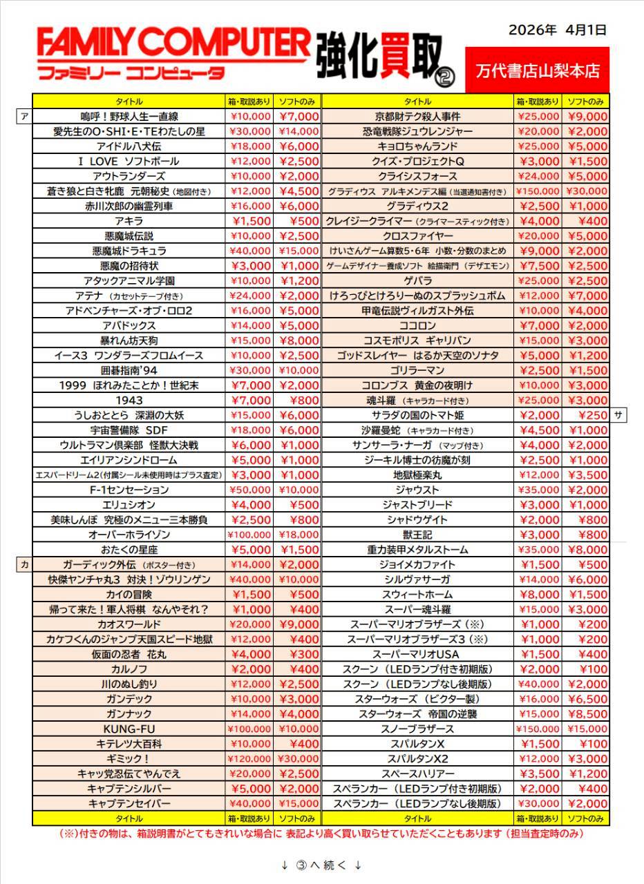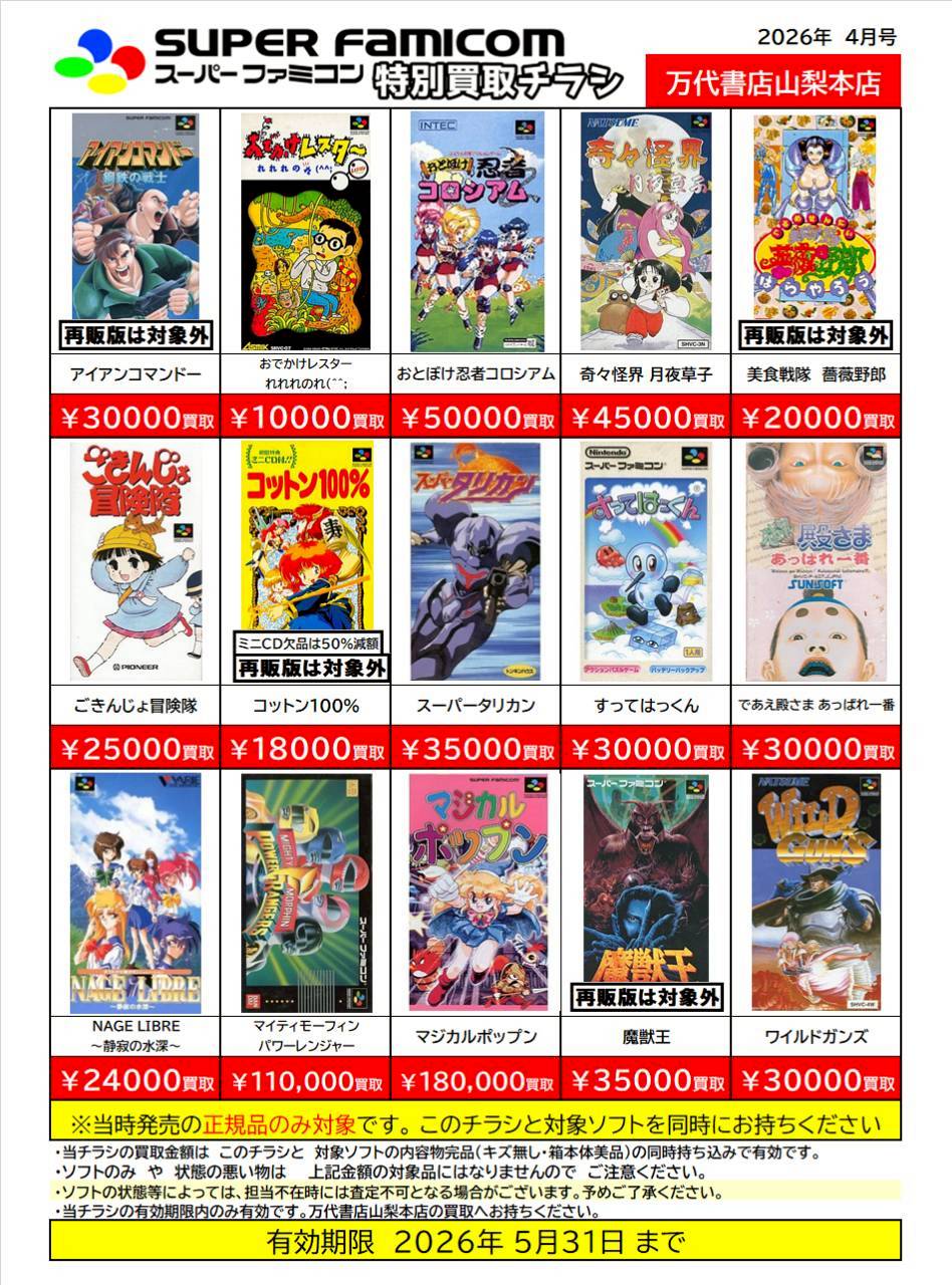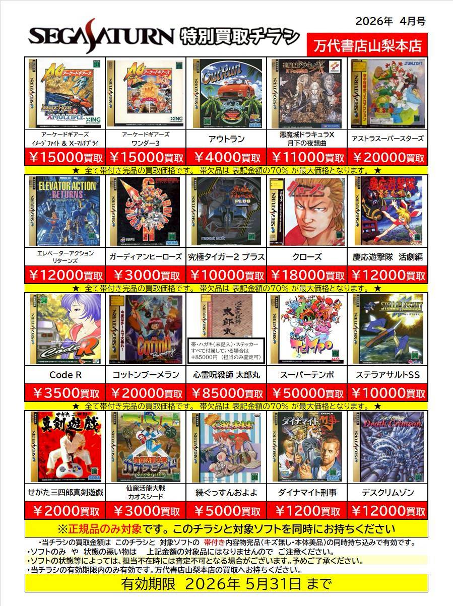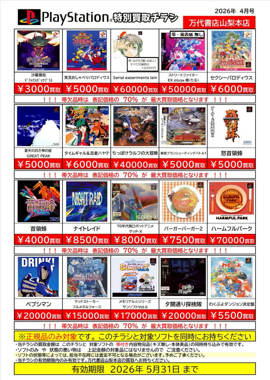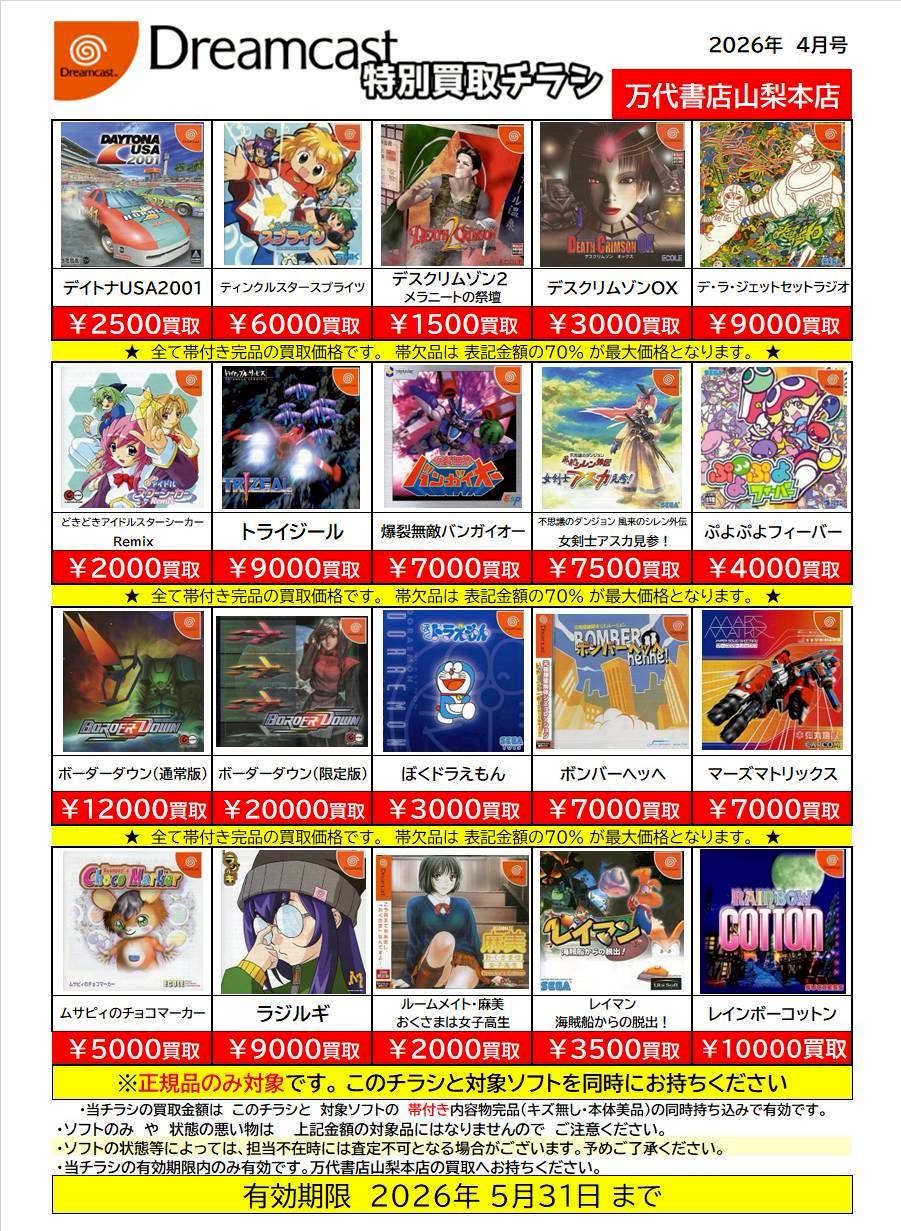 ※チラシとソフトの同時持ち込みでないと表記の金額での買取ができない場合がございますのでご注意ください。