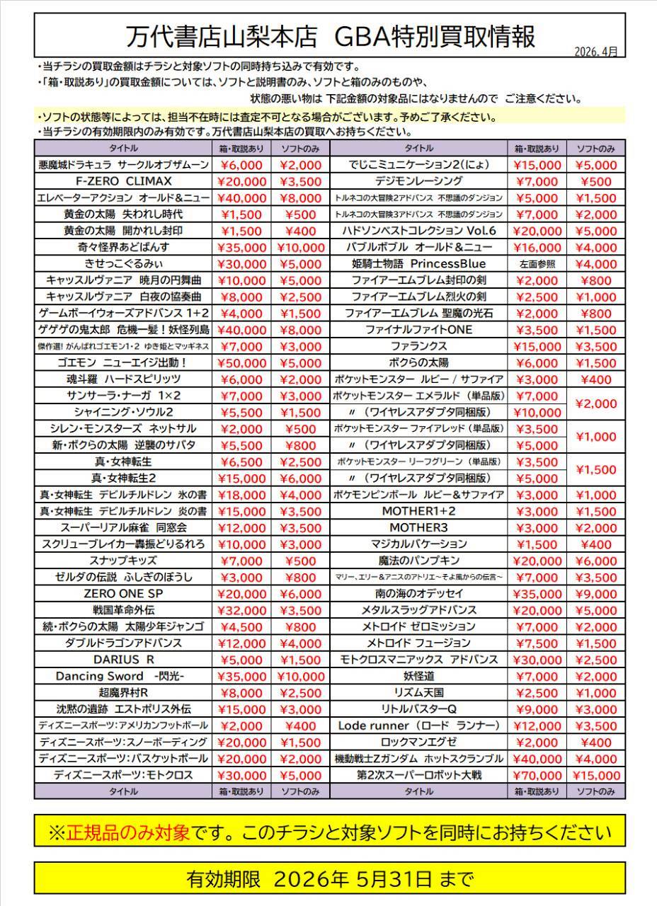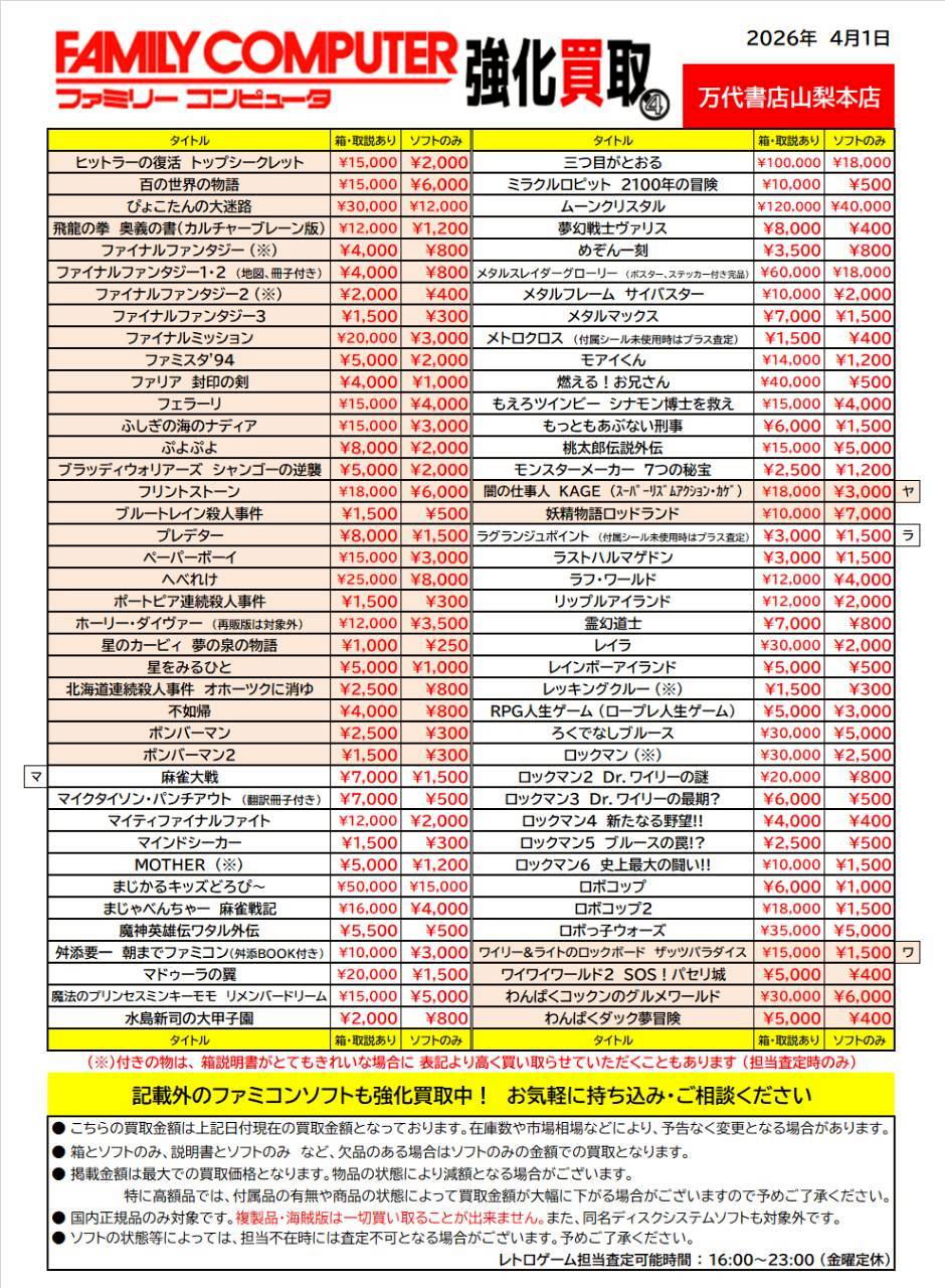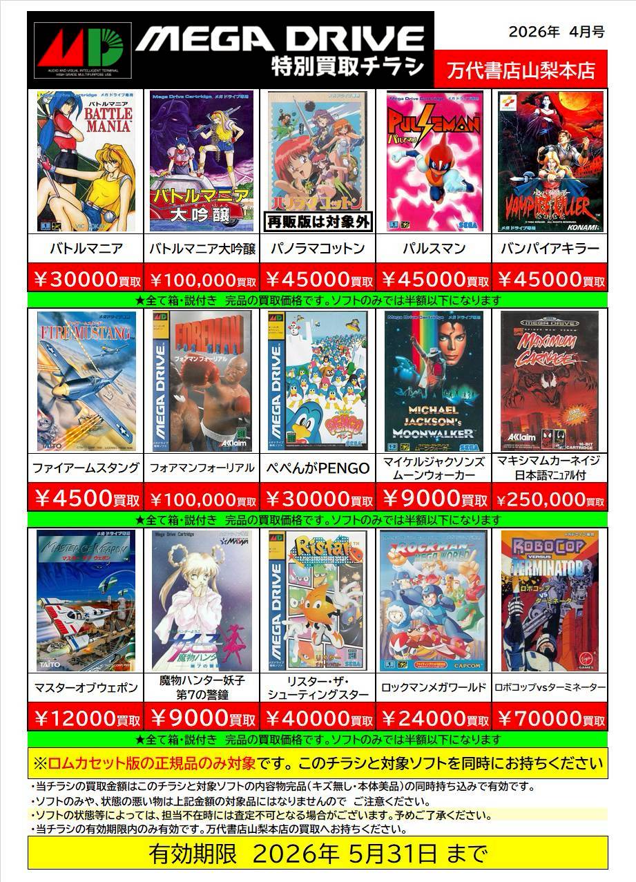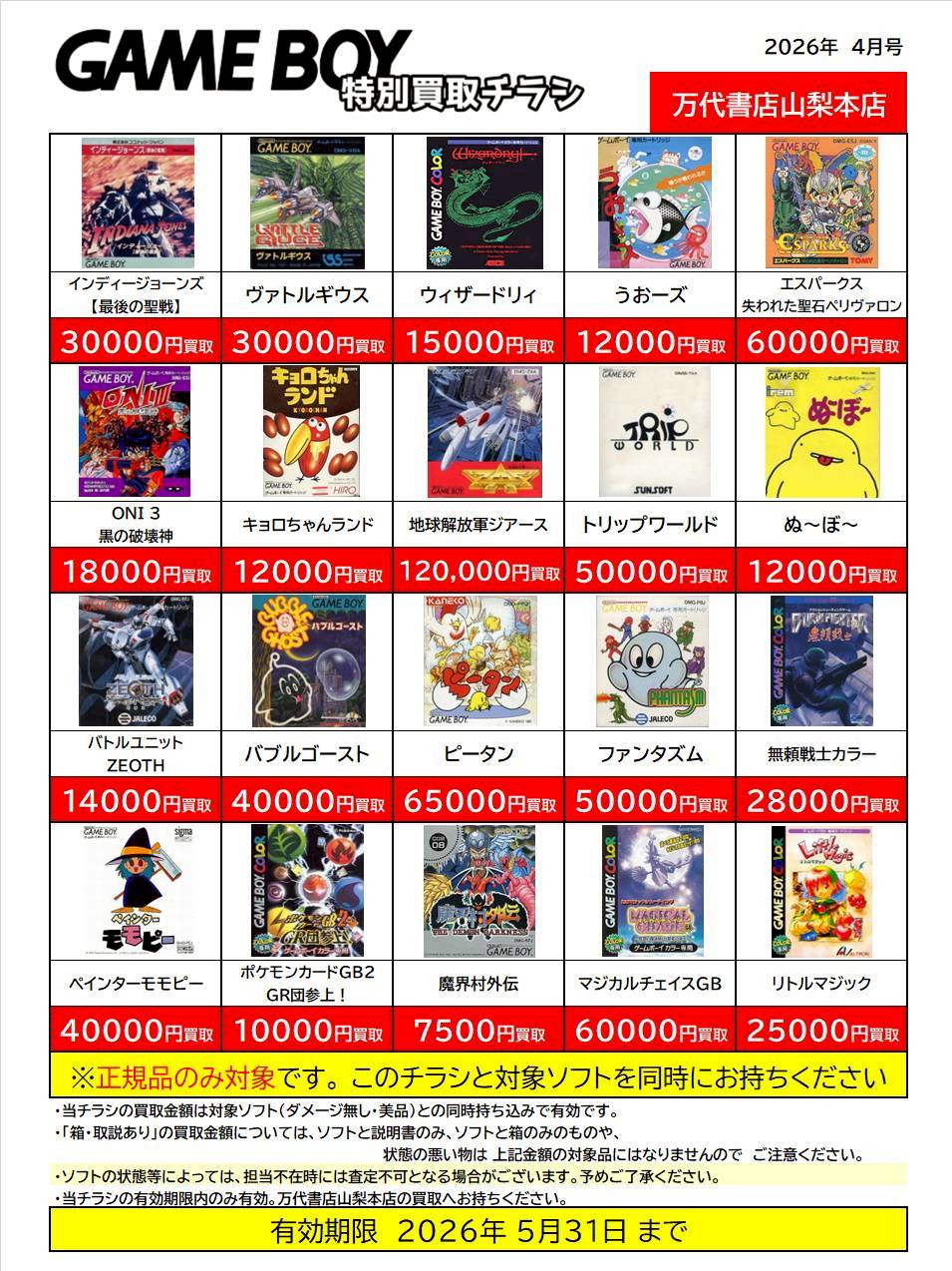 ※チラシとソフトの同時持ち込みでないと表記の金額での買取ができない場合がございますのでご注意ください。