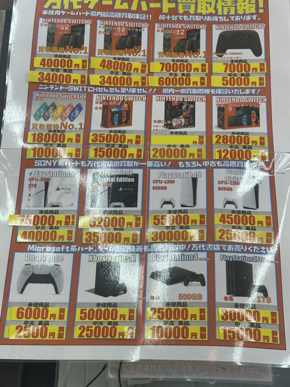 2026.04.06 買取告知 takalab_4 ☆★本日のゲームハードの買取金額になります。★☆ ゲームより 本日のゲームハードの買取金額になります。 県内最高値買取保証! 何台でも買取致します! お持ち込みお待ちしております。 ※状態により上記の金額で買取出来ない場合もございます。 ご了承ください。 ※2026/4/6現在の価格となります。 在庫状況・状態によってお値段が変動いたします。予めご了承ください。 **************** こちら↓もぜひチェックしてみてくださいね♪(*´▽`*) ・最新のイベント情報はこちら ・最新の買取情報はこちら