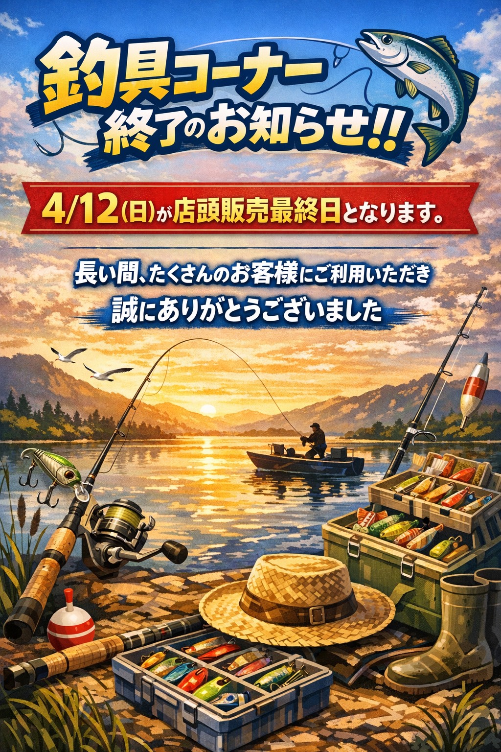 釣具コーナー 本日より最終SALE開始します! **************** こちら↓もぜひ...